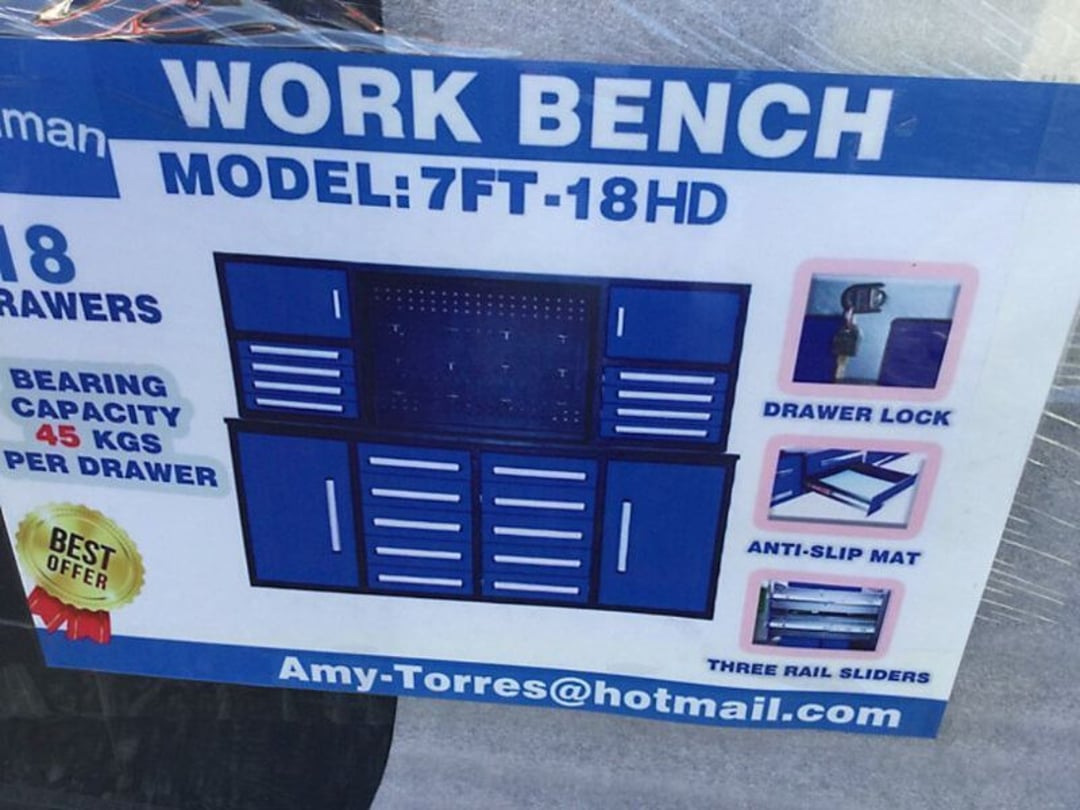 •Steelman 7FT Work Bench with 35 Drawers & 1 Cabinet