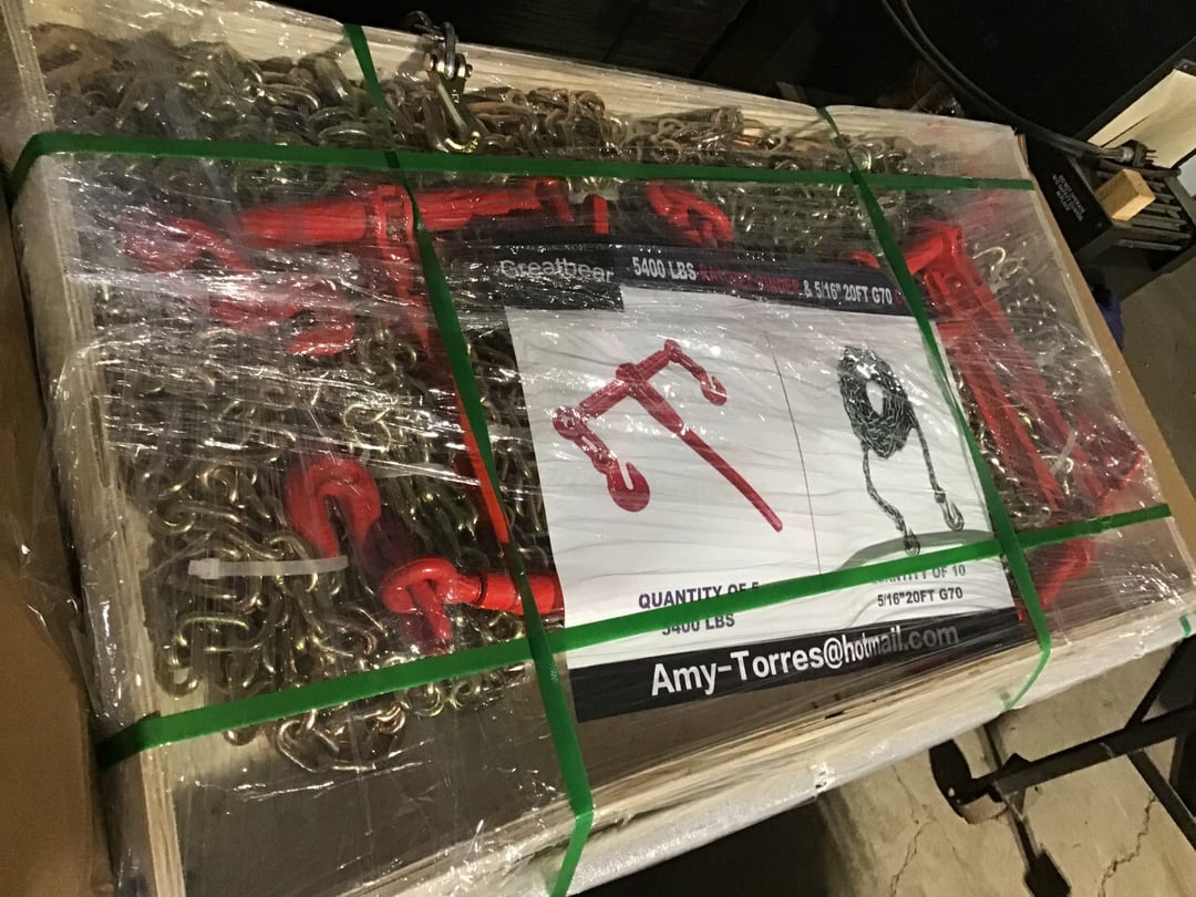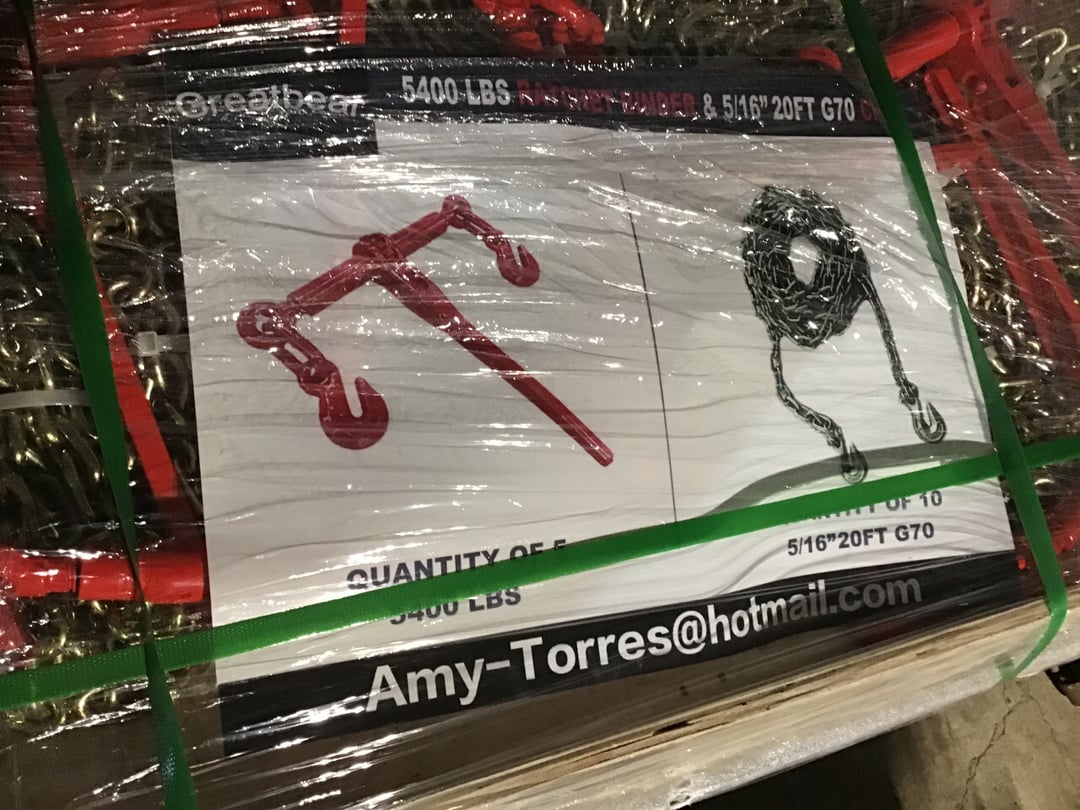 •(5) 9200LBS Ratchet binder and Qty of (10) 3/8" 20FT G70 chain