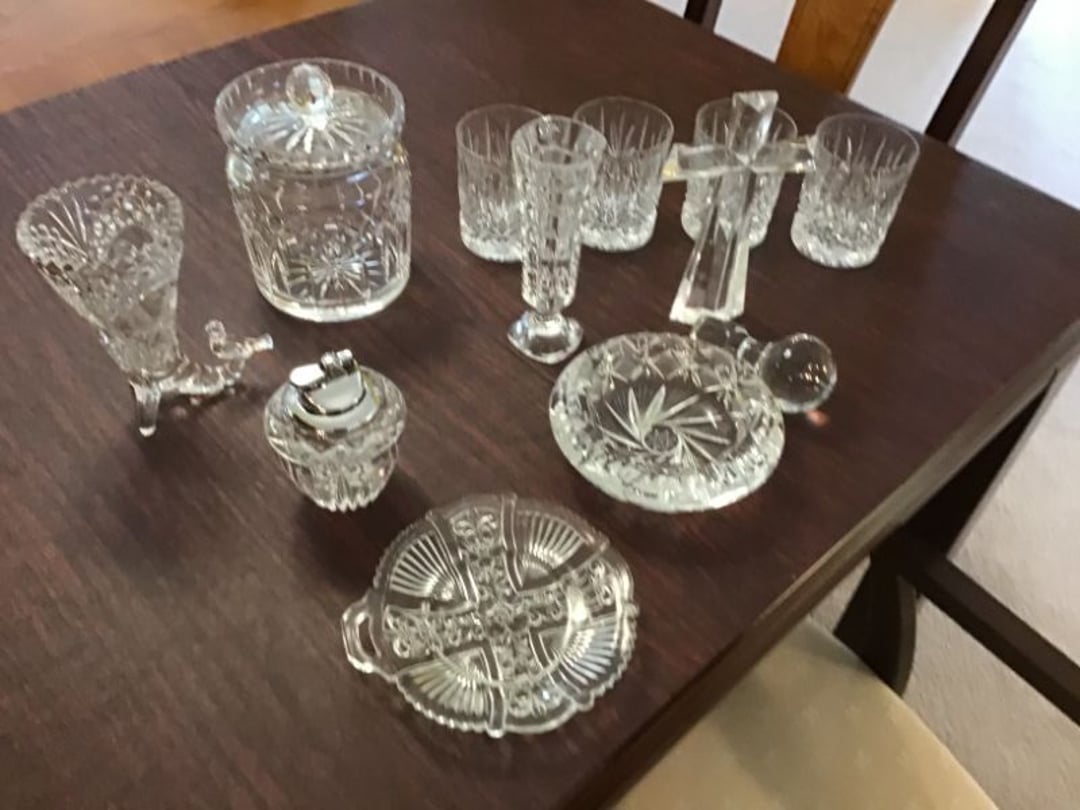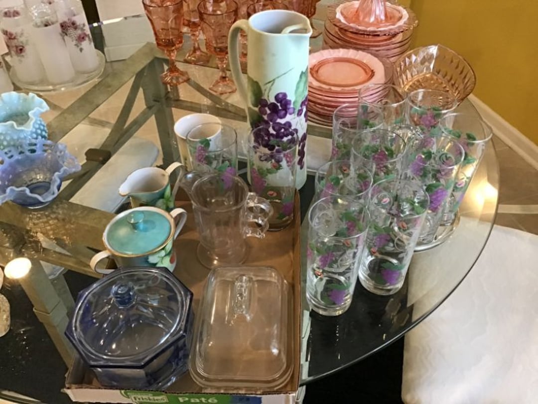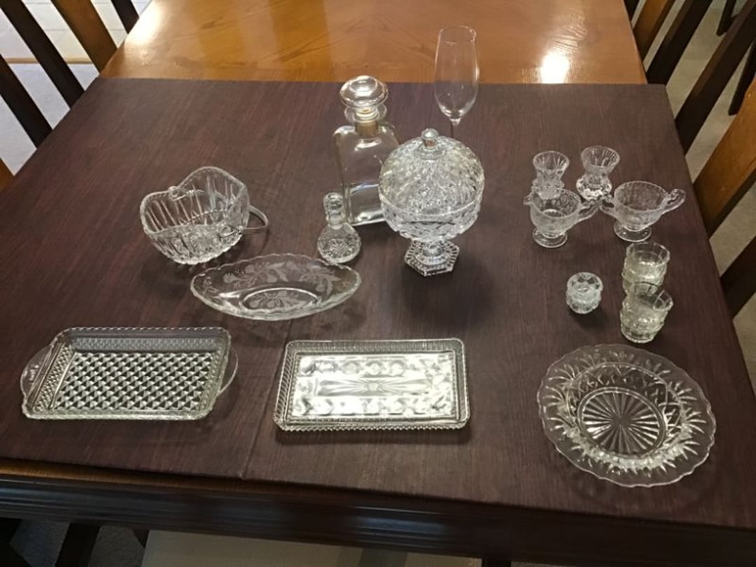 Decorative Glassware, Glassware, Decorative Glassware , Decorative Urn, Vase, Decorative Plates, Candle Holder, Bedspread, Pressed & Cut Glass, Glasses, Curio Cabinet w/ Light, Large Selection of Pressed & Cut Glass & Silver Decorative Set ,Large Curio Cabinet, Table & 6 Chairs ,Curio Cabinet w/ Light, Blue Decorative Glass, Christmas Decor, Holiday Decor, Table Cloths, Plate Mats, Plates, & Misc Vintage Suit Case Full Of Material, Hot Pads, Misc Decor Items, Ties, Wallets, Towels & Bedding, Singer Sewing Machine, Chinese Checkers Game, Framed Pictures , Stuffed Chair, Globe, End Table, (3) Floor Lamps & Stool ,Shriner hats, Indian Figurines & Pictures, DVD'S VHS, Games, Blankets, Patio Set Platina By Sango Japan China Set ,Celebrity Fine China Wellington, shell plates, misc China, Schumann Arzbero Cake Plate ,Painted Bowls & Dishes ,Painted Plates ,Napkin Holders ,Spreaders & Knifes ,Blue Rugs, Table & 4 Chairs ,Cabinet & Phone, Chair Stool, Picture, Blue Decor Glass, Spode Blue Room Collection China ,Blue Decor Glass, Blue Decor Glass & Longaberger Basket, Flatware, Cake Pans, Pyrex Dish, Coaster, Corning Ware Dishes, Aluminum Pots, 4 PC Pfaltzgraff Canister Set ,Pyrex Dish, Painted Bowl, Cut Glass, Lasey Susan ,Very Old Painted Cookie Jars, Hand Painted Pitchers ,Hand Painted Vases, Pink Depression Goblets ,Pink Depression Pitcher & 6 Glasses, Pink Depression Bowl, Cream Sugar, Salt Peter, Candle Holders ,Pink Depression Cream & Sugar ,Pink Depression Plates, Juicer, Glasses, Bowl, Crock Pots, Baking Pans, Cutting Boards, Canisters, misc ,Tupperware & cooking utensils ,Anchor Mixing Bowl ,Blue Anchor Mixing Bowls ,Sunbeam Mixmaster, Mixing Bowls, Pots & Pans ,Tupperware & Measuring Cups ,Cups, Glasses, Ice Buckets, Glass Canisters, ,7 Glass cups, Vaseline glass, Paper weights, Glasses, Cream & Sugar, Vase, Candy Dish, Misc. Glassware, Kitchen Utensils, Hot Pans, ,,Small Kitchen Appliances, Cleaning Supplies ,Blood Pressure Monitors, Hangers, & Misc. ,Rogers & Son China ,Board Games & Bibles ,Tote of cards, Wallets, Misc, Ventriloquist Doll ,Electric Brand Stereo & Speakers ,Various Digital Cameras ,Various Medical Supplies, Sewing Supplies ,Bassett 3 Piece Bedroom Suit ,Chair ,Hats, Briefcases, Wallets, Misc., Lamps, Pictures, Vase & Misc, TV & Misc Figurines, Advertisement Items, Misc Figurines ,Thimbles, Spoons, & Misc. ,Figurines, Towels, Bedding Misc. ,Bathroom Decor, Large Lot Of Various Hard Back Books, Animal Pictures, Floor Lamp, Corner Shelf, Indiana Basketball Books, Hunting Books & Caldwell County Missouri History Book, Indian Books & US Readers Digest ,D-Day Book ,College Football & MISC Books ,United States Post Office Bank,Office Supplies , Misc Figurines, End Table ,Decor Items & vases, Chest & Misc ,Trading Cards & Misc, Stain Glass ,Longaberger Basket ,Desk & Chair ,Table Cloths & Cushions ,Chair & Baskets ,Hats, Boots, Shoe Polish, Canes, Misc, Purses, Decor, Longaberger Basket ,Brass Deer, Mantle Clocks ,Decor Plates ,Tea Cups ,Cook Books, pans, Laundry Soap ,,Iron Board, Sweeper, Shark Steamer ,Meat Grinder, Shoe Stretcher, Misc ,Oil Lamp, Pictures, Glass Rocks, Gift Baskets ,Pictures, Extension Cords, Matchbox Cars, 4th of July Decor ,File Cabinets & 3 Totes Misc Gift Baskets & Misc ,Misc Pottery Figurines, Stoneware & Misc ,Candle Lights, cups, Light Bulbs Misx,Misc Glassware ,Spray paint & Misc Glass ,Glass Vases & Jars ,Pole Saw ,Christmas Items ,Folding Table 4 Folding Chairs w/ Cart, Basket & Martha Stewart Pan ,Longaberger Picnic Basket ,Longaberger Baskets ,Longaberger Baskets ,Candles, Towels, Staple & Staple Gun, Misc Hand Tools ,Table Covers, cookie Cutters, Party Supplies, Candles, Misc, Candles, Lights, Rope, Gloves, Misc, Fan, Cooler, Cake Plates, Bird Houses, cups, Mugs, ,Misc Decor items, Glassware, Candle Holders, Misc ,Cabinet & Contents ,Shelf & Contents ,Oreck Sweeper ,Cleaning supplies, Cabinet ,Christmas White House yearly Ornaments "collectors" ,Christmas Globe, Snowmen Figurines, Vases, & Misc ,Snowman Figurines, Dessert Plates, Misc,Digital picture Frame & Book,2 Oil Lamps ,Glassware ,West Morlan Dish ,Hand painted Hair Pin Holders, Bavarina Western Germany Vase ,Ash Tray and paperweight, Hand Painted Plates ,3 Pairs of Binoculars,M isc Locks & Keys ,Large Selection of various brass items ,Picture Frames ,Yard Tools & Painting Supply, Lantern ,Convalescent Items ,Stadium Seats, Blanket, Cooler, Tarp, Baskets, Fall Décor ,Magnetic Tree, Ornaments, flowers, Misc , Deer Antlers & Feet, Turkey Fan, Misc., Flatware, Figurines and gag gift, Snack Set & Buffet Set, Dresser ,Child's Table 4 Chairs ,3 pairs of boots ,Shells & Decorations, & Christmas ,Picture Frames & easels, Decor items, Vases, Hard back Books, Misc, Bedding ,Tote with rugs ,Halloween Costumes, Large lot of Christmas items & Decor, 2 wheel Dolley, Metal cabinet, Singer Dressmaker Sewing Machine, Singer ultralock 14U34 Sewing machine ,2 bag chairs & hunting chair ,Fixit Tool Set ,galvanized bucket, Parts Organizer ,Various Hand Tools ,Light Bulbs, Extension Cords ,Cabinet ,Christmas Trees & Santa's ,Holiday Decor ,Shower Chair & Table ,Cabinet & Contents , 2 ladders & More!