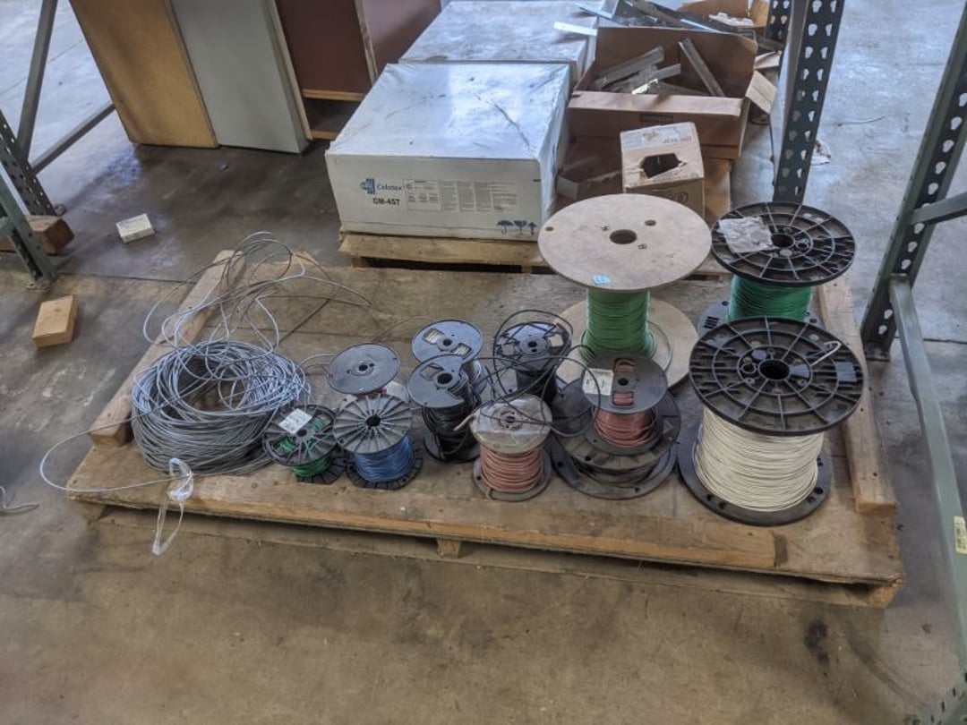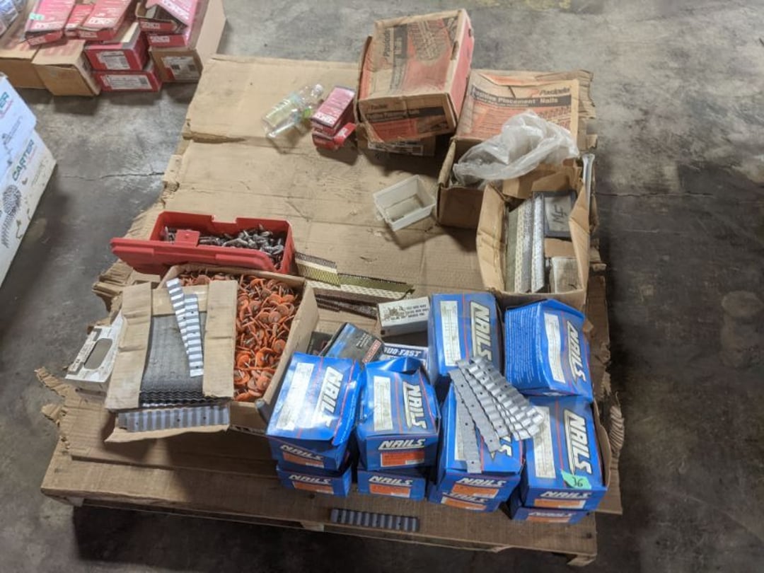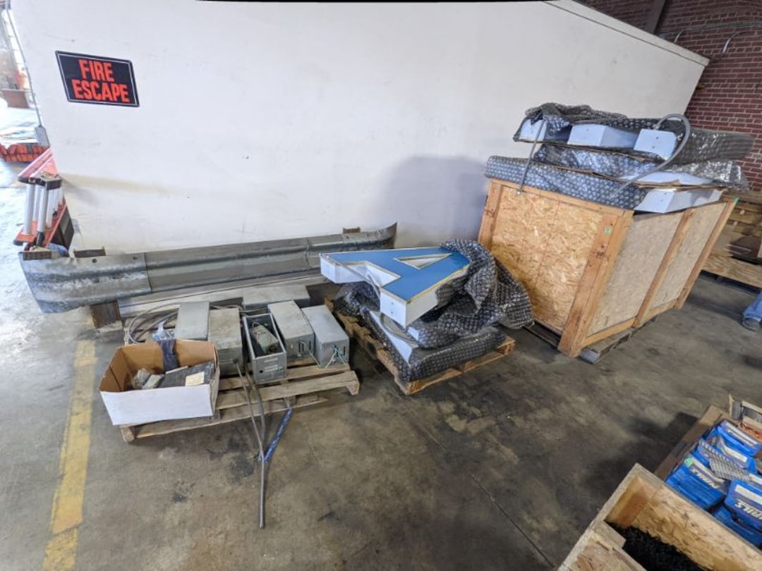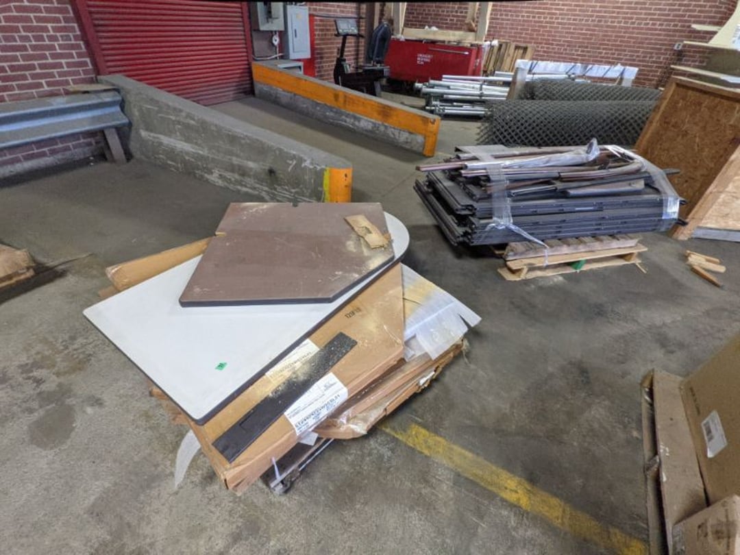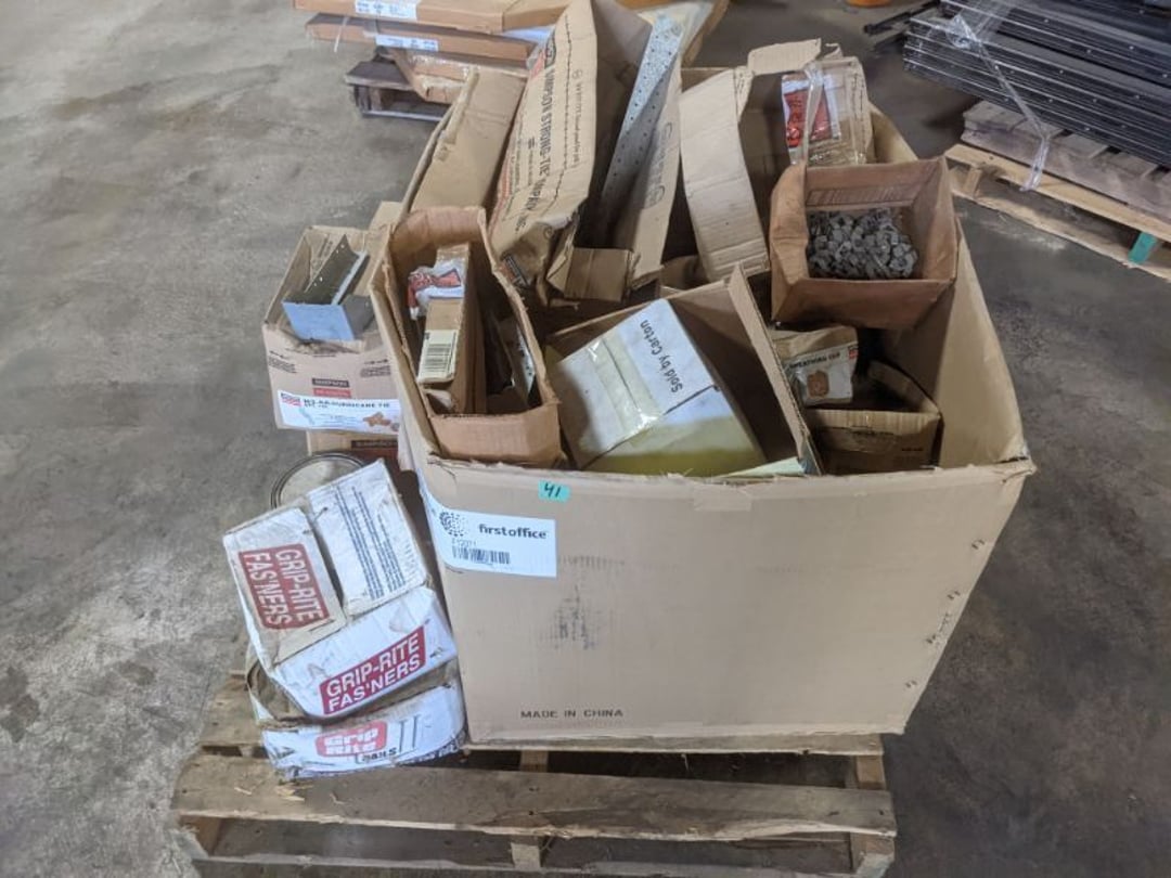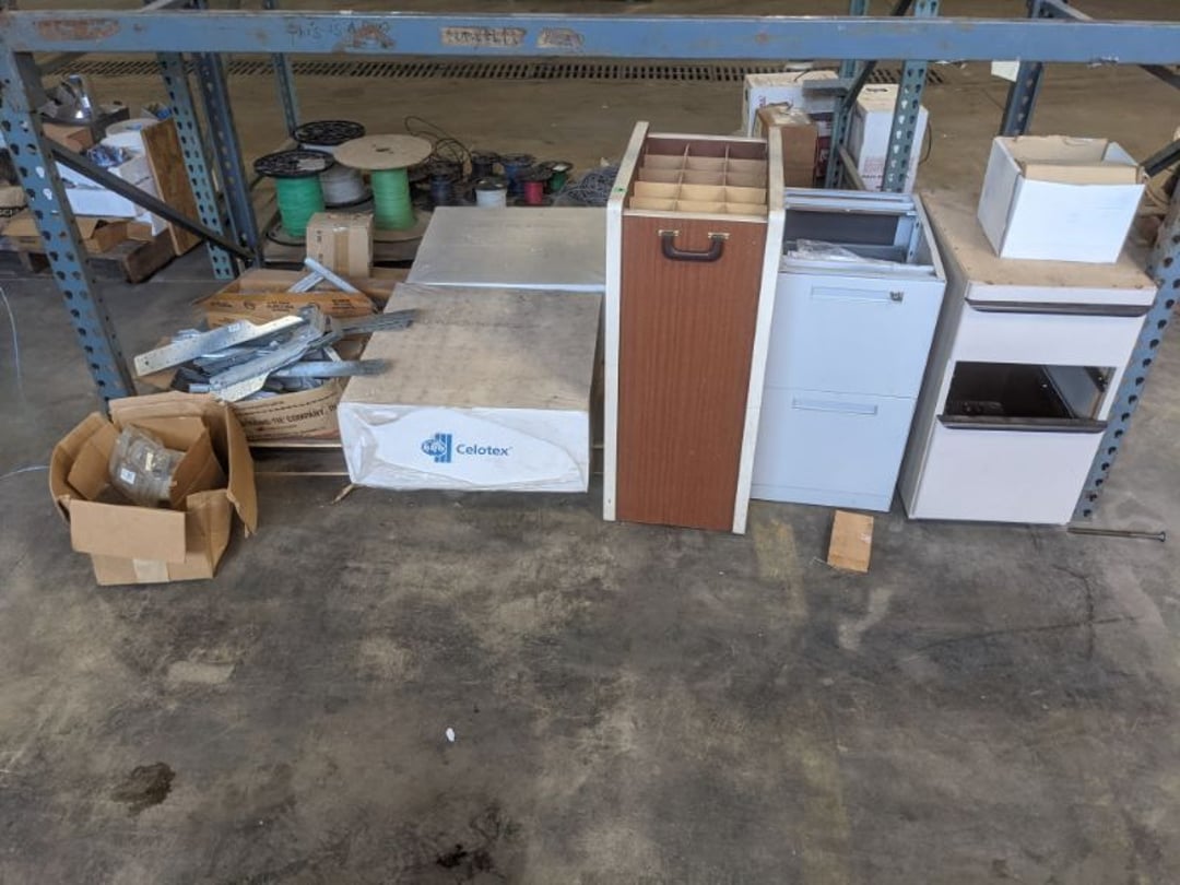 Bostitch SB-150SLBC Cap Stapler ,Senco SNS44XP Finisher Stapler ,Bosch 1/2" -3/4" Drill ,Misc Tools ,Electric Items ,Light Bulbs & Ballast ,Assortment of Recessed Lights & Light Covers ,Cabinets, Ceiling Tile, Brackets, ,Work Lights ,Ridgid Shopvac & ToolShop Dust Collector ,Various Lights,Cabinets ,Commercial Style Interior Doors ,(2) 12' Work Benches ,Various Hardware, Nails, Shelf & Misc ,MC Cable & Reels ,Aluminum Trim Coil ,RG59/U 20AWG Communication Cable,Wire Reels ,Communication Cable ,Misc Wire Reels ,Shelf & Contents ,Extension Cords & Shop Light ,Led Work Light ,Yard Tools,Handicap Signs ,550LB Hanging Dial Scale ,3 Phase Panel, & Meter Box ,Delta 10" Table Saw ,Peg Board & 4 Boards of OSB,28' Werner Fiberglass Extension Ladder ,32' Keller Aluminum Extension Ladder ,"Romary Associates" Lighted Letter Sign ,Wood Box w/ Misc Items ,Nails & Drywall Screws ,Roofing Nails & Positive Placement Nails ,Various Size Senco Nails & Staples ,1 1/4" Coil Roofing Nails ,#6 1-5/8" Drywall Screws ,Pallet Of Metal File Organizers ,Nails, Hurricane Ties, Caulking, Fasteners ,Crate w/ Misc Fabrics ,2 Shelves & fuel Cans ,Chains ,Crawl Space Vents, Caulk & Chaulk Guns ,Misc Scrap Wood ,2 buckets of Pull Line ,,Pallet Racking ,Pallet Racking ,Pallet Racking ,Pallet Racking ,Pallet Racking ,Aluminum Lifting Jib w/ Cables,2004 Loadmaster Equipment Trailer ,Yale Forklift ,LP Tank ,Forklift Trailer Spotter ,Bobcat 450 Skid Loader ,1999 Ford E350 Cargo Van Bucket ,Pallet Jack ,Carrier 48TFE008A511 Exchanger ,2004 Exchanger Trane ,Table & Stand ,6' & 12' Wood Ladders,(2) Lighted Signs ,5' Cart,Pedestal Fan ,Pedestal Fan ,10' Conference Table (Complete) ,Bi Folding Doors & Drywall Corner Bead ,Table Tops & Modular Office Equipment ,Safe ,Slaughter 1127-1.5 Hipot Tester ,3 Desks & Homemade Cart ,(3) Interior Doors ,Concrete Pole Covers ,Misc Electric Supplies ,Kimball Office Furniture, NIB,Kimball Office Furniture, NIB,Kimball Office Furniture, NIB,Hon P3261 Desk, NIB,Kimball Office Furniture, NIB,Mosler Lockable Cabinets ,Scrap Wood & PVC,Carrier Furnace & AC unit ,Misc Scrap,Hon 34961 Desk, NIB,Double Side Book Shelf ,(3) Cabinets ,Desk,Desk,Desk,credenza,2 Desk Drawers ,(6) 10' 8" Wood Crates , 2" Air Crimper w/ Few Bands ,Banding Cart