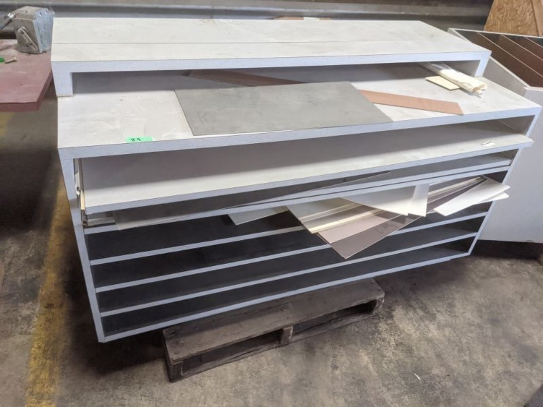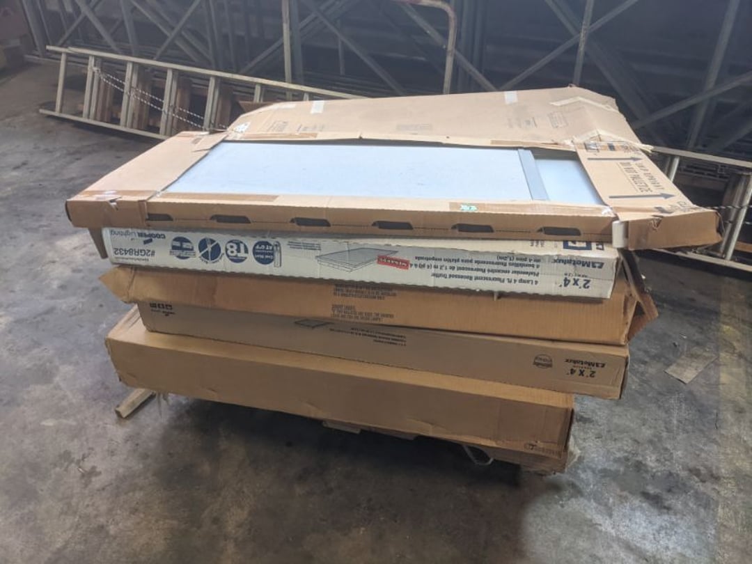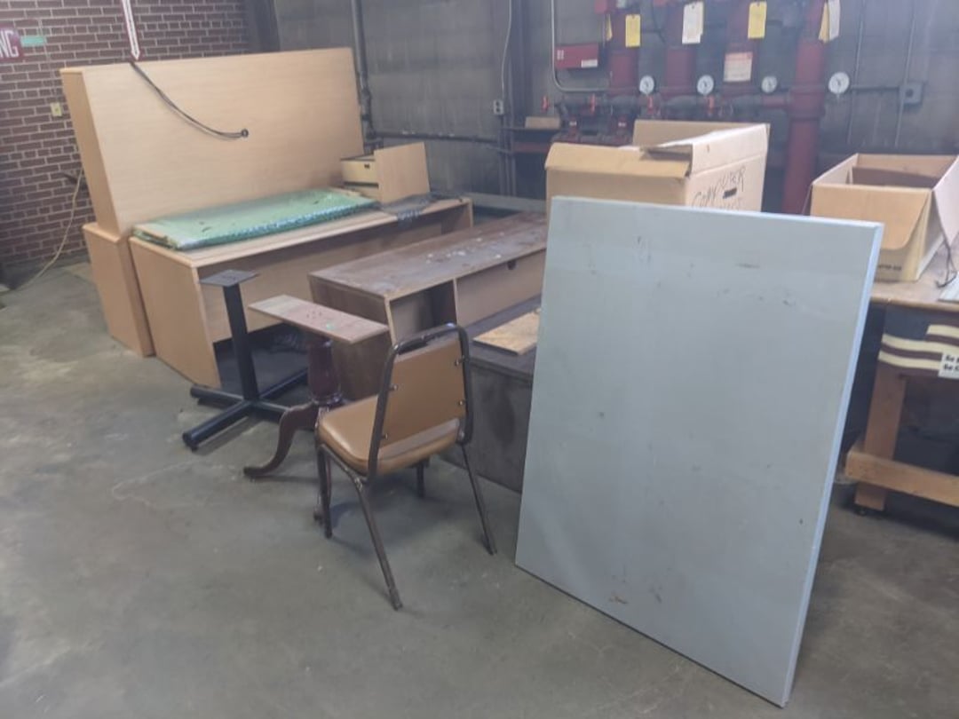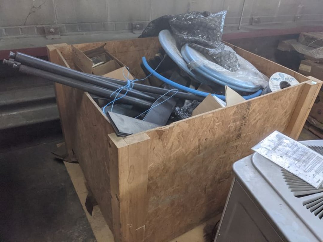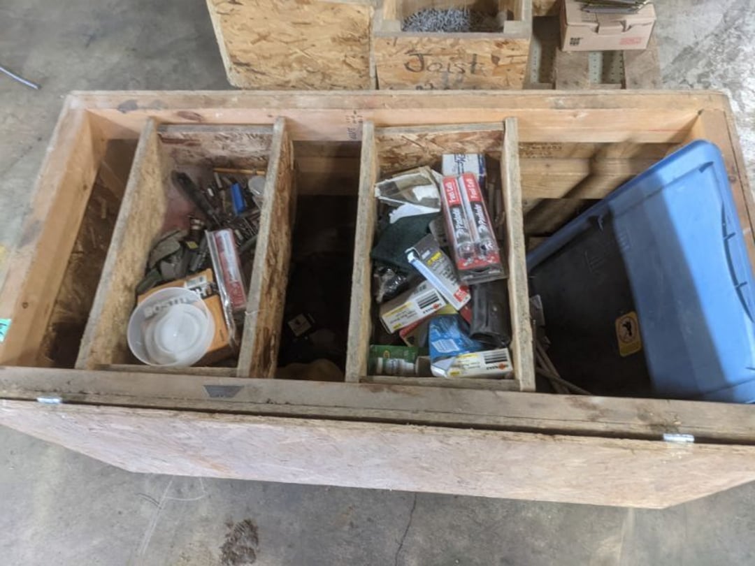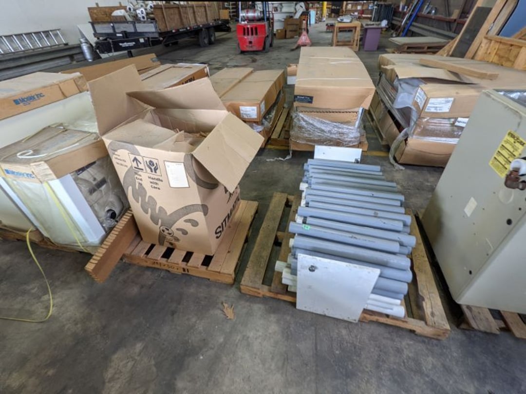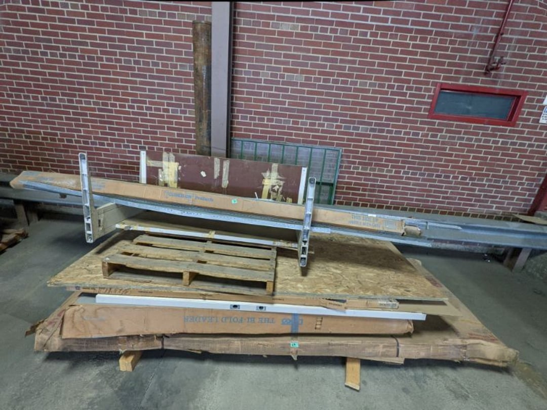 Bostitch SB-150SLBC Cap Stapler ,Senco SNS44XP Finisher Stapler ,Bosch 1/2" -3/4" Drill ,Misc Tools ,Electric Items ,Light Bulbs & Ballast ,Assortment of Recessed Lights & Light Covers ,Cabinets, Ceiling Tile, Brackets, ,Work Lights ,Ridgid Shopvac & ToolShop Dust Collector ,Various Lights,Cabinets ,Commercial Style Interior Doors ,(2) 12' Work Benches ,Various Hardware, Nails, Shelf & Misc ,MC Cable & Reels ,Aluminum Trim Coil ,RG59/U 20AWG Communication Cable,Wire Reels ,Communication Cable ,Misc Wire Reels ,Shelf & Contents ,Extension Cords & Shop Light ,Led Work Light ,Yard Tools,Handicap Signs ,550LB Hanging Dial Scale ,3 Phase Panel, & Meter Box ,Delta 10" Table Saw ,Peg Board & 4 Boards of OSB,28' Werner Fiberglass Extension Ladder ,32' Keller Aluminum Extension Ladder ,"Romary Associates" Lighted Letter Sign ,Wood Box w/ Misc Items ,Nails & Drywall Screws ,Roofing Nails & Positive Placement Nails ,Various Size Senco Nails & Staples ,1 1/4" Coil Roofing Nails ,#6 1-5/8" Drywall Screws ,Pallet Of Metal File Organizers ,Nails, Hurricane Ties, Caulking, Fasteners ,Crate w/ Misc Fabrics ,2 Shelves & fuel Cans ,Chains ,Crawl Space Vents, Caulk & Chaulk Guns ,Misc Scrap Wood ,2 buckets of Pull Line ,,Pallet Racking ,Pallet Racking ,Pallet Racking ,Pallet Racking ,Pallet Racking ,Aluminum Lifting Jib w/ Cables,2004 Loadmaster Equipment Trailer ,Yale Forklift ,LP Tank ,Forklift Trailer Spotter ,Bobcat 450 Skid Loader ,1999 Ford E350 Cargo Van Bucket ,Pallet Jack ,Carrier 48TFE008A511 Exchanger ,2004 Exchanger Trane ,Table & Stand ,6' & 12' Wood Ladders,(2) Lighted Signs ,5' Cart,Pedestal Fan ,Pedestal Fan ,10' Conference Table (Complete) ,Bi Folding Doors & Drywall Corner Bead ,Table Tops & Modular Office Equipment ,Safe ,Slaughter 1127-1.5 Hipot Tester ,3 Desks & Homemade Cart ,(3) Interior Doors ,Concrete Pole Covers ,Misc Electric Supplies ,Kimball Office Furniture, NIB,Kimball Office Furniture, NIB,Kimball Office Furniture, NIB,Hon P3261 Desk, NIB,Kimball Office Furniture, NIB,Mosler Lockable Cabinets ,Scrap Wood & PVC,Carrier Furnace & AC unit ,Misc Scrap,Hon 34961 Desk, NIB,Double Side Book Shelf ,(3) Cabinets ,Desk,Desk,Desk,credenza,2 Desk Drawers ,(6) 10' 8" Wood Crates , 2" Air Crimper w/ Few Bands ,Banding Cart