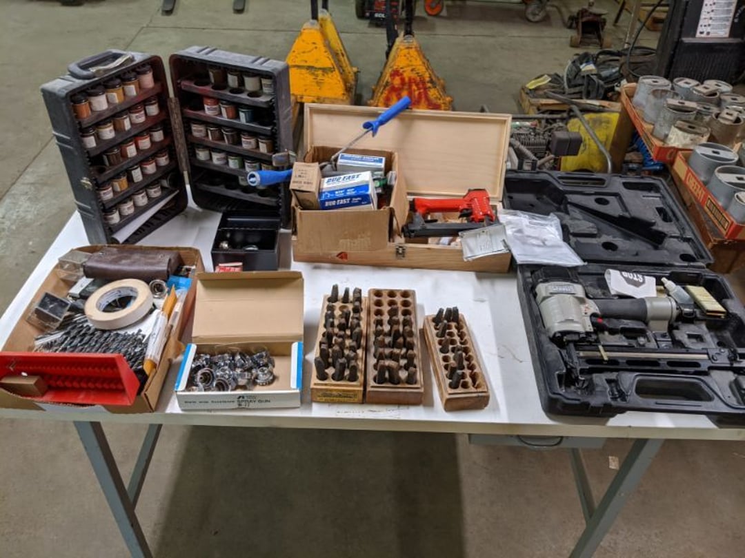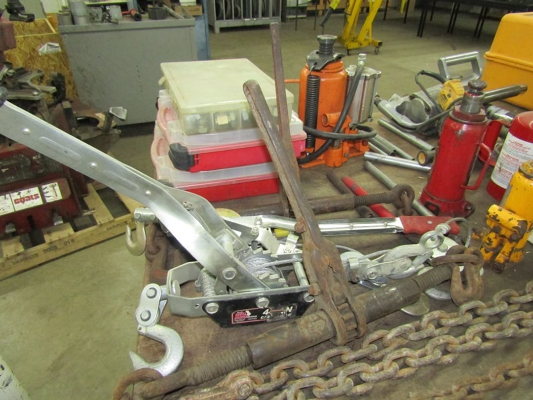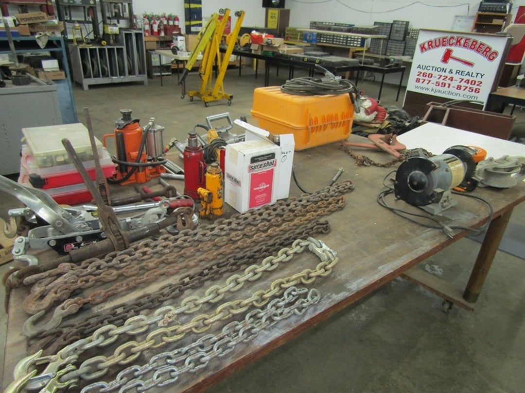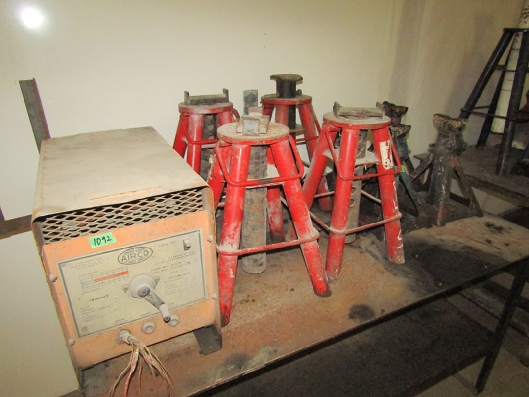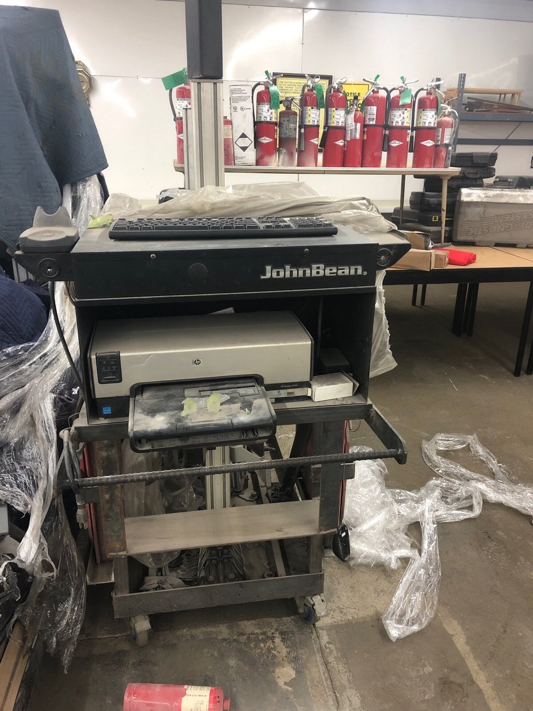 Complete John Bean Alignment Machine - Bumper Jacks – Various Size Jack Stands – Engine Hoist – Trailer Stabilizers – Screw Jacks – Air Bottle Jacks – Transmission Jacks – Tire Jacks – Clutch Jack - Delta & Jet Drill Presses – Oil Pans - Commercial Semi Trailer Jacks – Several Welding Carts – Metal Stands – 3 & 4 Bar Tire Cages – Weatherhead Hose Assembly – Misc Hose Rolls - (2) Coll Crimp T 100-1 Machine – Breaker Bars, Sledge Hammers, Crow Bars - Several Parts Bins W Misc Inventory – Ladder Cart – Trolley Carts – 4 Wheel Carts – (4) Pallet Jacks – Barrel Carts - Fire Extinguishers – Tire Repair Kits – Curtis Industrial Air Compressor – Gas Power Air Compressor – Ingersoll Rand Air Compressor - 1" Air Impacts – Hose Reels – Man Cage – Winco 3000W Generator – Shop Vacs – 125 BTU Kerosene Heater – Power Washers – Battery Chargers – Shop Fans – Winton Vises – Several Pedestal Grinders – Air Hose Reels – Tire Chains – Lincoln AC/DC Arc Welder – Miller Millermatic 250X Welder – Miller Millermatic 251 Welder – Airco 300 AMP Heliwelder – Miller DC Arc Welder – Miller MD-500 Welder - Linde Power Supply Type CE-300 – (3) Robinair Cool Tech Air Condition Rechargers – Dewalt & Bosch Chop Saws – Ilco Key Machine – Shop Carts – Welding Tables – 10 Ton Body/Frame Repair Kits – 50 Ton Press – Semi Trailer Light Tester – (3) Davco Shop Pro FXP Fuel Pumper – Universal Joint Service Set – Coolant Dam Pressure Tester – Ball Joint Starter Service Kit – Cooling System Pressure Test Kit – Misc Aluminum & Steel Sheeting - Various Size Ladders – Misc Barrels Of Oil & Antifreeze – Various Size Used Tires - (3) Coats Semi Tire Changers - Coats Car Tire Changers - & MORE!