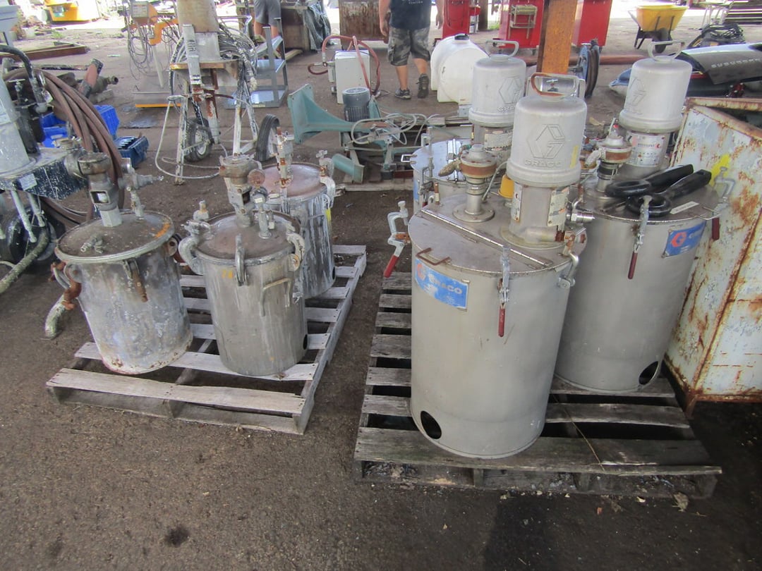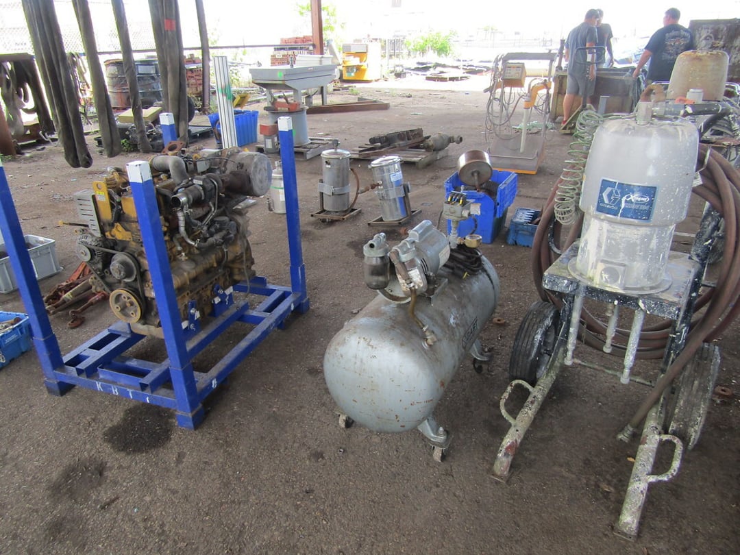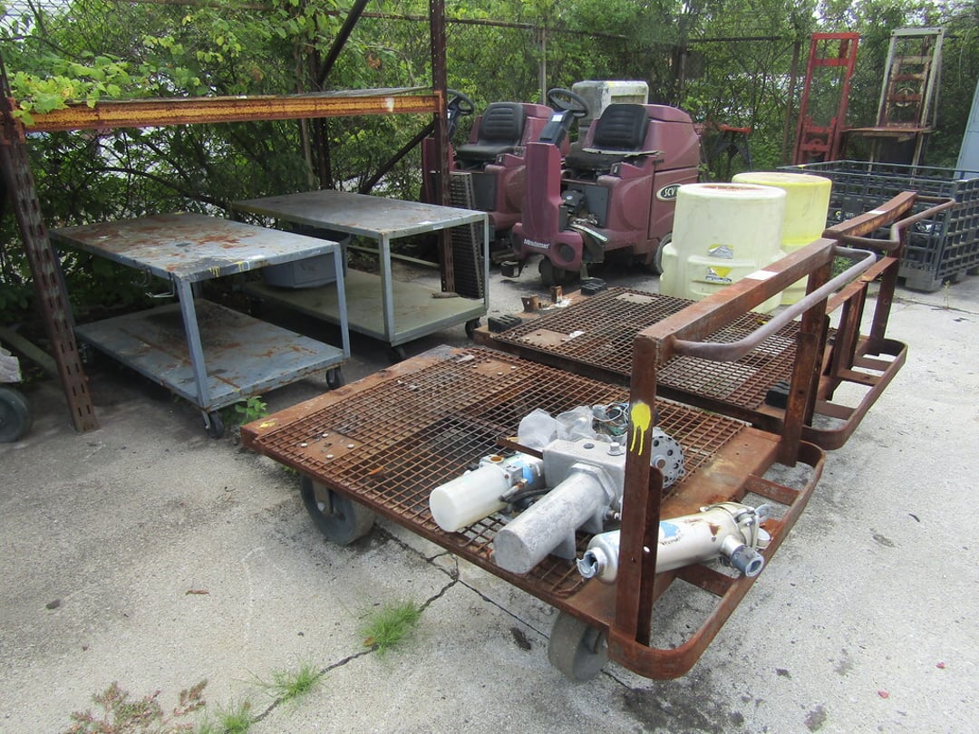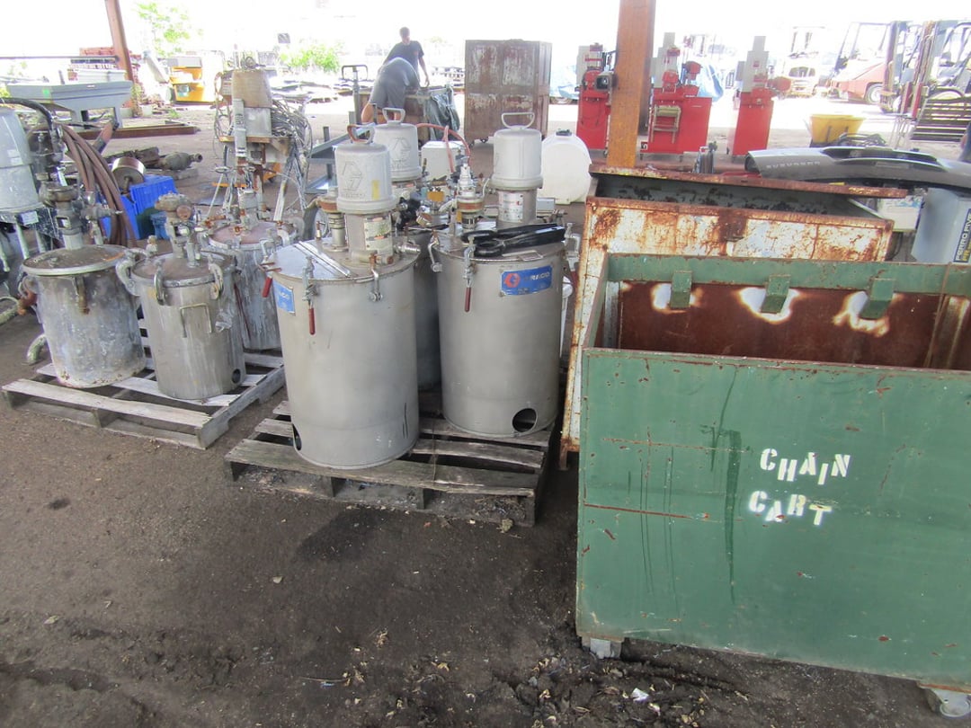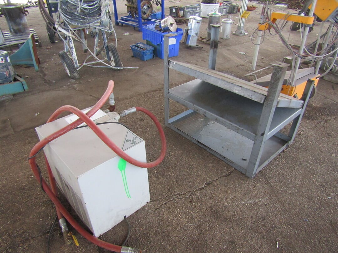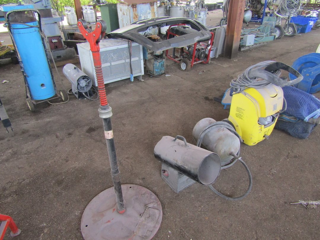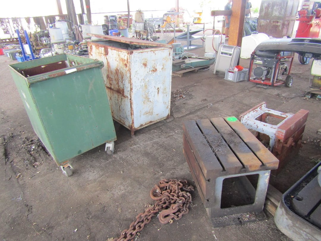 VARIOUS CHAINS & RIGGING EQUIPMENT – COME-A-LONG CHAIN FAIL HOST – BUDGET 3 TON HOIST – HOISTS – HITCHES – JACK STANDS – WHEEL CHOCKS – GAS CANS – (7) BARREL PUMPS – ARO AIR PUMPS – WILDEN PUMPS – SANPIPER PUMP – HUSKY PUMP – WATER FILTER PUMP PSE 300 – VARIOUS SIZE SHEDS – BANDER ROLL – 10’ ROLLER TABLE – HOFFMAN PANEL BOXES – RIDGED SHOT VAC – PRESSURE WASHER SAND BLASTER – LEVEL TABLE – STAINLESS VALVES – PIPES & FILTERS – FORKLIFT HITCH & LARGE CLEVIS – MISC. CLEVIS – (2) EQUIPMENT/SKID DOLLIES – LIFTING CLAMPS – STRAPS & EDGE PROTECTORS – 2014 CAT 262D SKID STEER MOTOR – AIR COMPRESSOR – INGERSOLL RAND AIR COMPRESSOR – GRACO BULLDOG AIR SPRAYER – ULTRA AIR 201 SERIES – GRACE PAINT SPRAYER – PAINT POTS – PAINT FANS – BLOWER & FAN – VARIOUS SIZE FANS – CART & BOX – CART – WILLIS BARGO 5’ RADIAL DRILL – ESAB PLASMA CUTTER – HOBART BETA-MIG 200 – LINCOLN POWER WAVE 450 WELDER – LINCOLN POWERMATE 455 WELDER – POLISHING WIZARD PARTS TUMBLER – ELECTRONIC WELDING VACUUM CELL – ROUTER & SHAPER – SUNNEN HONE – FINAL TOUCH 100 – CRIMPING SYSTEM – SAND VAC SAND BLASTER – 48V BATTERY CHARGER – MULTI PRESS – GENERAC 7,000 WATT GENERATOR – (2) HEATERS – GREEN MACHINE – (3) PRESSURE TANKS – CART REAR END SPARE TIRE – MISC. WHEELS – 20” FAN – POWER COATING SYSTEM – TABLE – CHAIRS & BENCH – 65 GAL TANK & HOSE REEL – KARCHER PRESSURE WASHER & BLANKETS – ELECTRIC PRESSURE WASHER – HEATER & PRESSURE TANKS – RIDGID STANDS – COMPAC 15P AIR DRYER – MACHINE ENCLOSER – BAKE OVEN – BAKE OVEN TURBO BLASTER – BAKE LIGHT – (3) HUNTER ALIGNMENT MACHINE – SAFE – HOLD DOWN CLAMPS – PALLET JACK – MISC. TRANSMISSIONS – WORK WALK BOARD – 10’ PLANKS – TIP DUMPSTER – (5) COLLAPSIBLE BINS – MINUTEMAN POWER BOSS SWEEPER (INOP) – POWER BOSS SWEEPER – SNAP ON TOOL BOX – BOLT CUTTER – 10” PIPE WRENCH – MISC HAND TOOLS – ARBOR PRESS – PALLET RACKING – DRILL PRESS – FLACK GRINDER (3PHASE) – BENCHES – 9’ JIB – MISC PIPE & COUPLER – AIR TANKS – VARIOUS SIZED CRATES – 60” DOCK PLATE – MODULAR DUST COLLECTOR – ARESTALL DUST COLLECTION SYSTEM – DUST-HAG DUST COLLECTOR – DUST COLLECTOR TRIMMER – AIR HANDLER – HYD PUMP, CANNISTER – WASHER WATER PUMP – WATER FILTER – OIL FILTER DRAIN PAN – GREEN MACHINE VAC – LUBE CAN – SHEETS OF ALUMINUM – 8,000LB PLATE LIFTER – RACKS – MISC. TARPS – WORK PLATFORMS – FUEL TANK GUARD – STEEL CABINETS – RIDGID PIPE/CLAMP BENDERS – MISC CASTERS & WHEELS – DRUM CARTS – STANDS – ELECTRIC SNAKE – SAFETY POLES – CONES – HYDRAULIC JACK HAMMER – COHERENT LASER CONTROL PANEL – AMERICAN INDUSTRIAL HEAT TRANSFER – SCALE GSE350 – AUTO LIFT – ANSUL FIRE SUPPRESSION SYSTEM – PLASTIC TANK – MISC. OFFICE FURNITURE – ETC