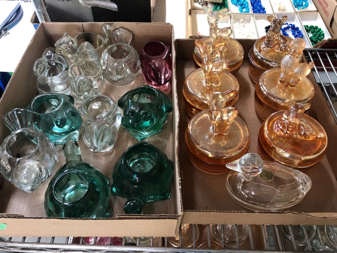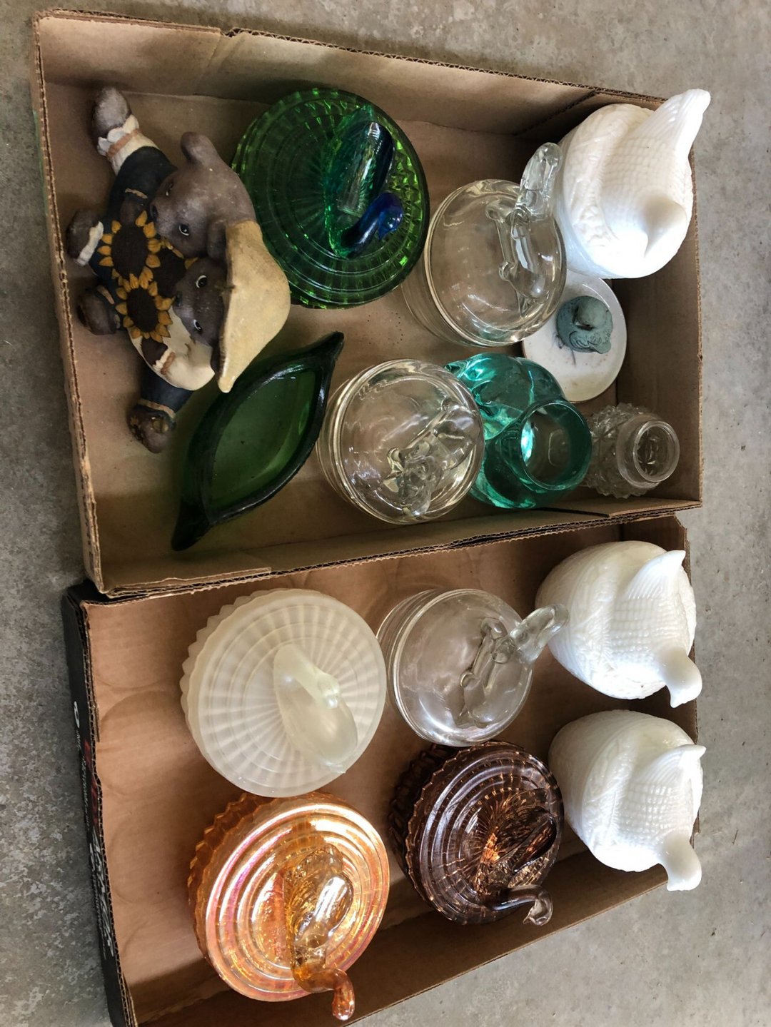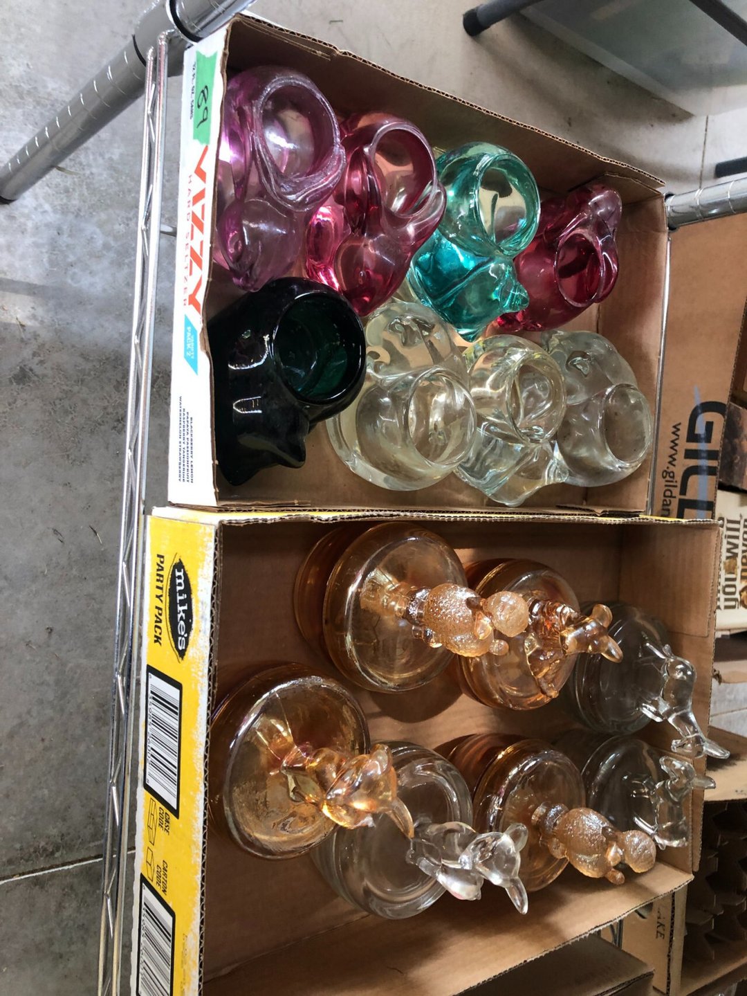 •Glass Powder Boxes (2 Flats) & Animal Votives