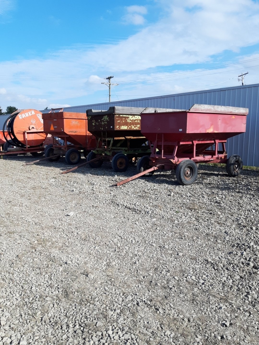 •brand new shovels) - 33' rolling harrow model 1225 - 1500 gal portable tank - 550 gal portable tank - New Idea 217 Model Manure Spreader (PTO Driven) - 16x10 Hay Wagon - 20.8x30 Firestone Tractor Tires (2) - 1440 International Combine 20' Bean Head (6000hrs) - 1995 International Semi Tractor 8200 - Honey Wagon Calumet 4300 gal - 2017 Kuhn Knight 1140 pro spread manure spreader - Case International 7120 (9802 hrs) - Interantional manure spreader pto driven - Irrigator - Vending Machine - 1000 gal fuel tank w/ pump - 500 gal fuel tank w/ pump - Donahue Trailer - Fuel pump assembly (pump needs rebuilt) - Tiger Mate 2