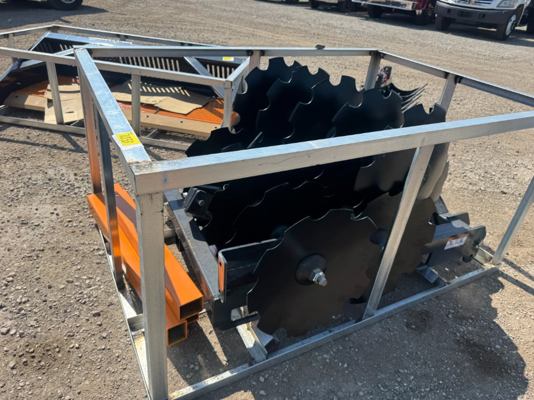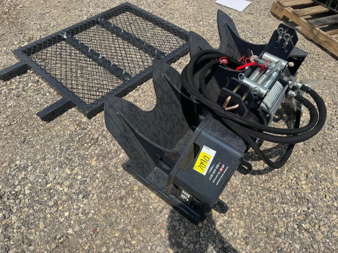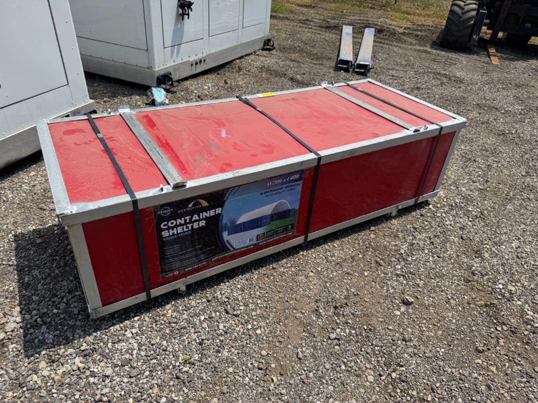 100 + Various Skid Loader Attachments, Tool Boxes Workbenches, Iron Gates, Chains & Binders,1 Trip 40' High Side Shipping Container w/ Side Doors, Dome Shelter Containers, Various Truck Take off Parts & Much More!