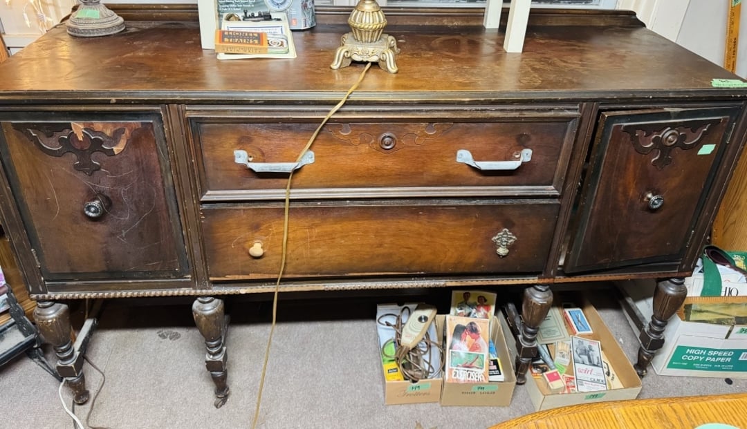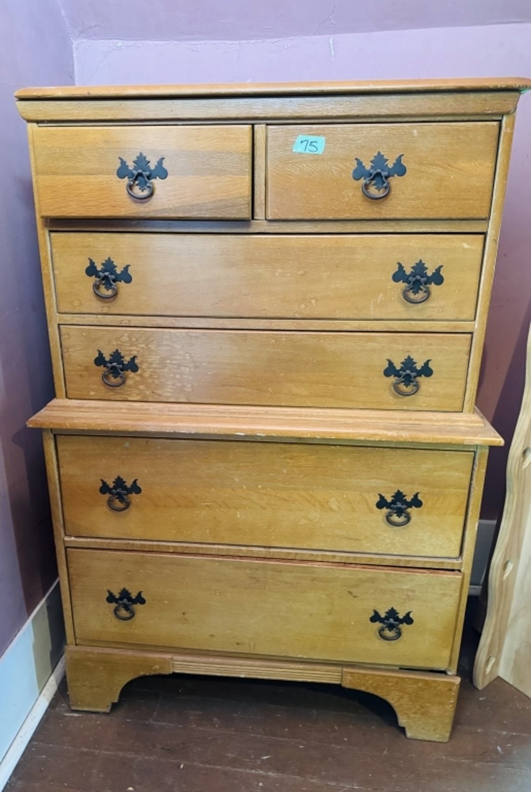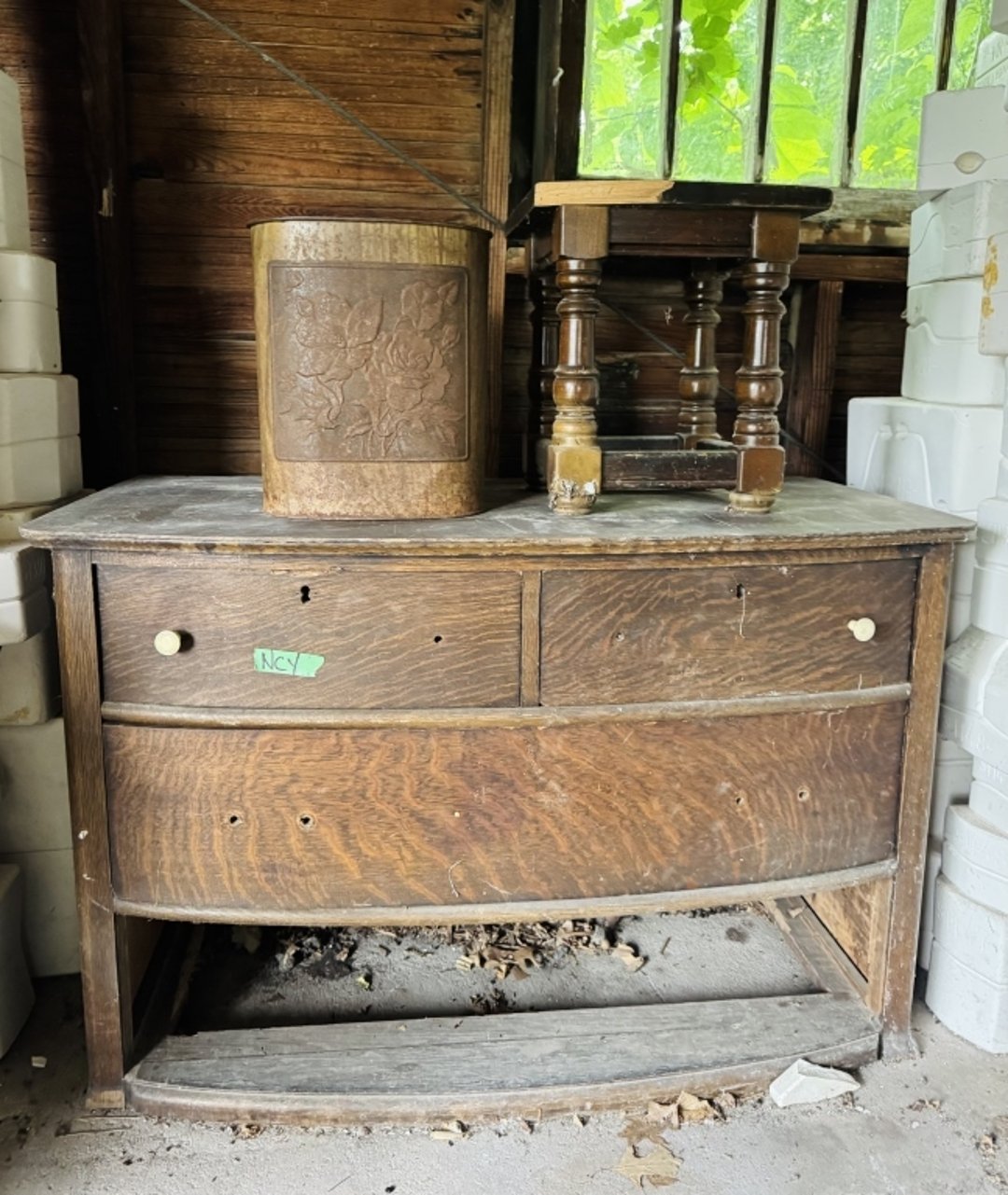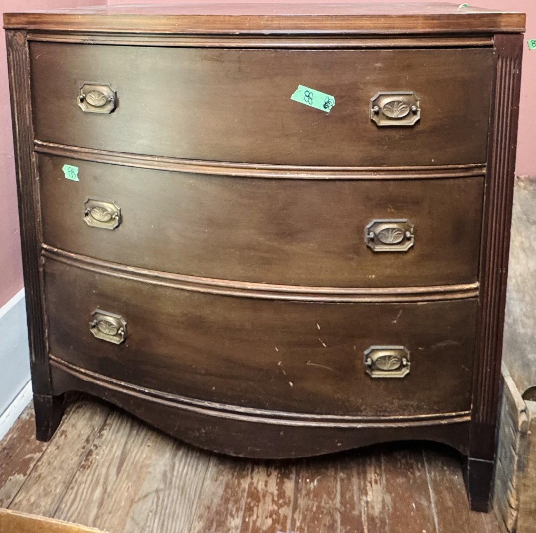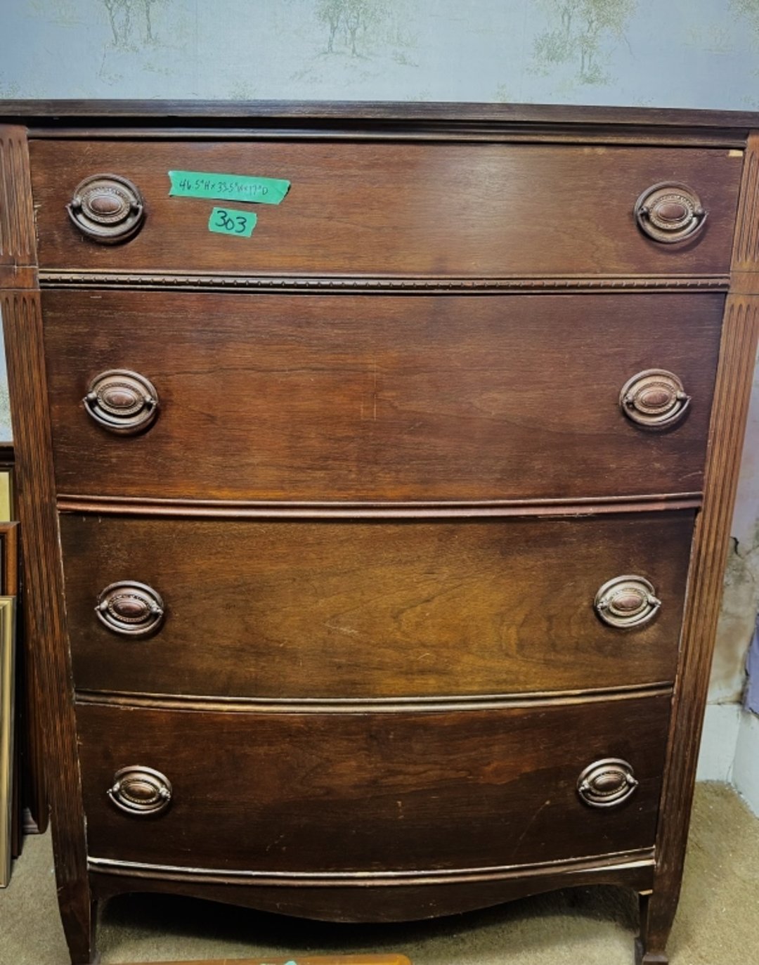 •Antique 4-Drawer wood Dresser: 46.5 Hx 33.5 Wx