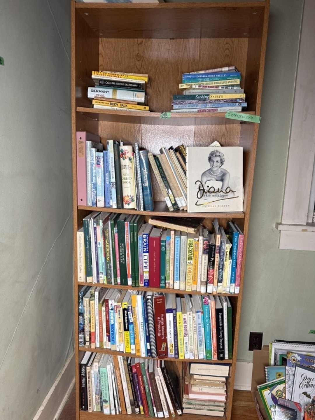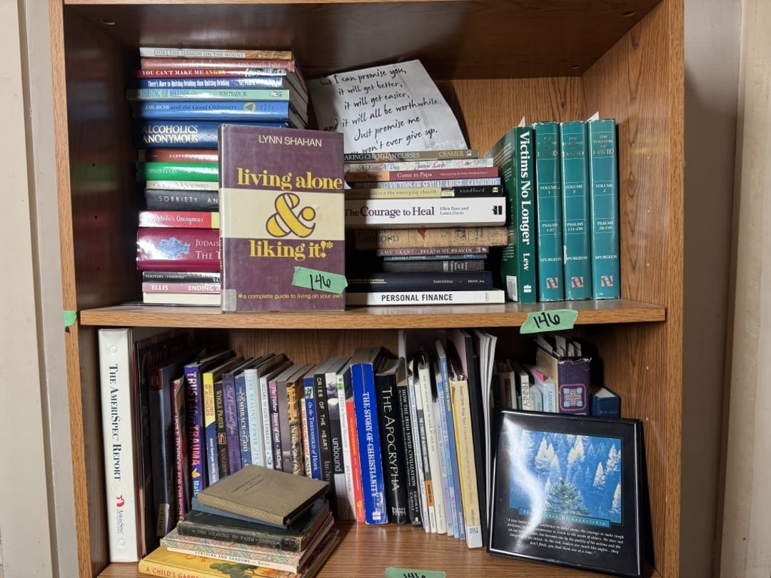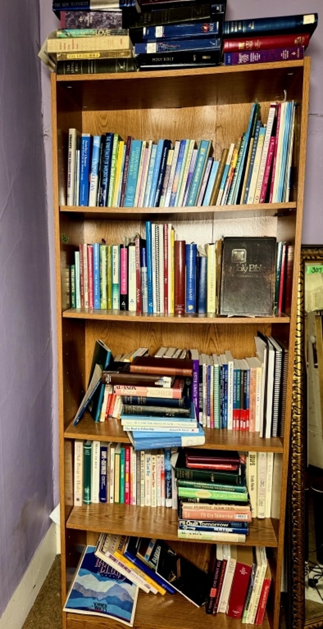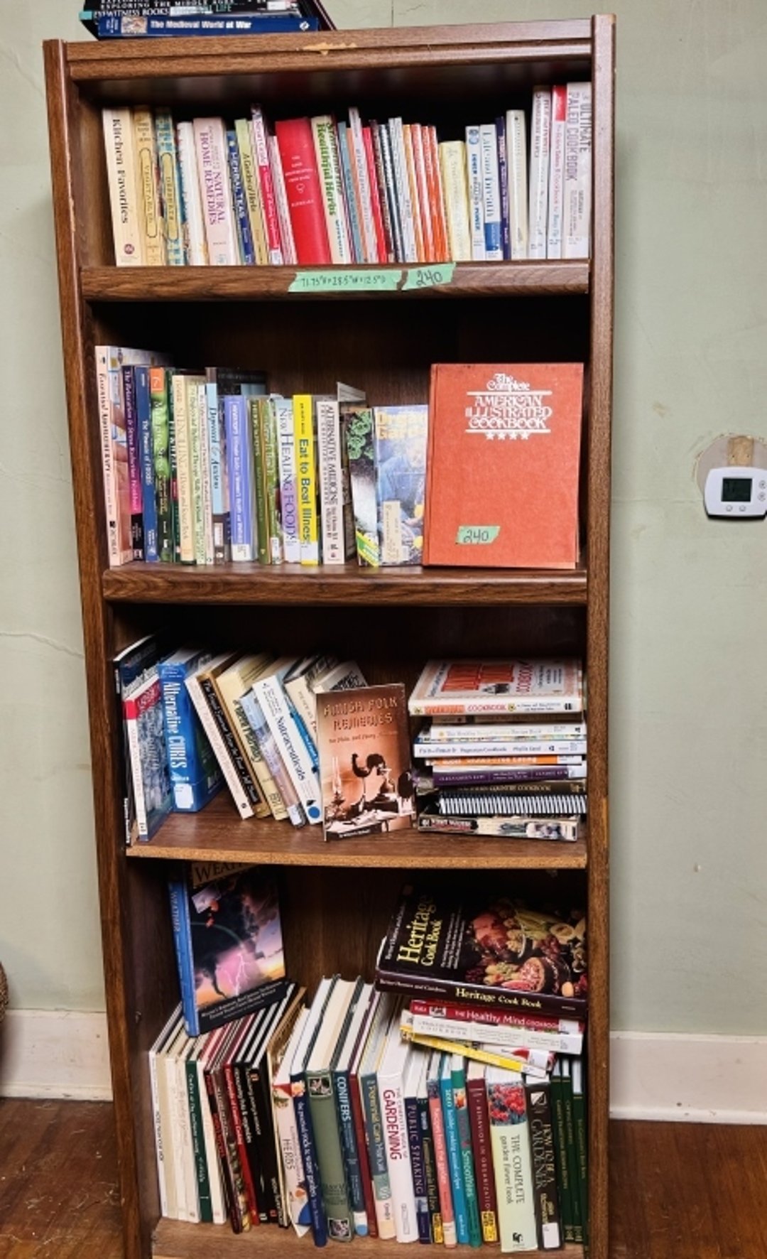 •Bookshelf & all books. Bookshelf measures 71.25Hx
