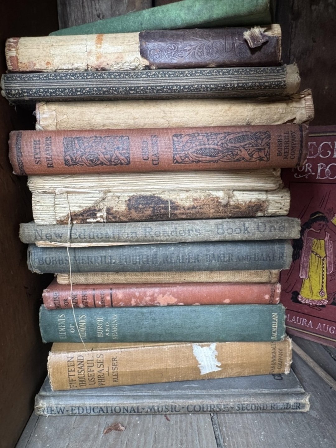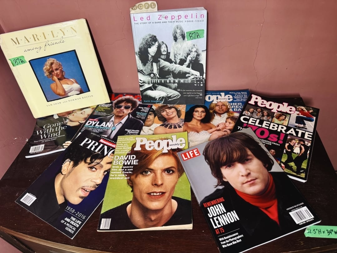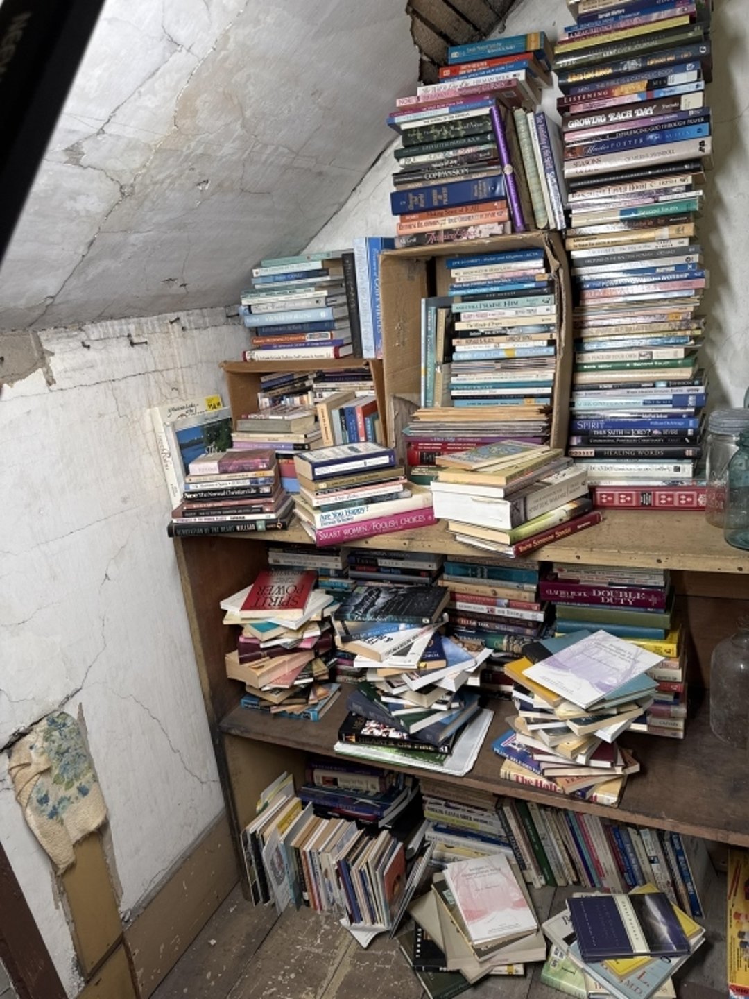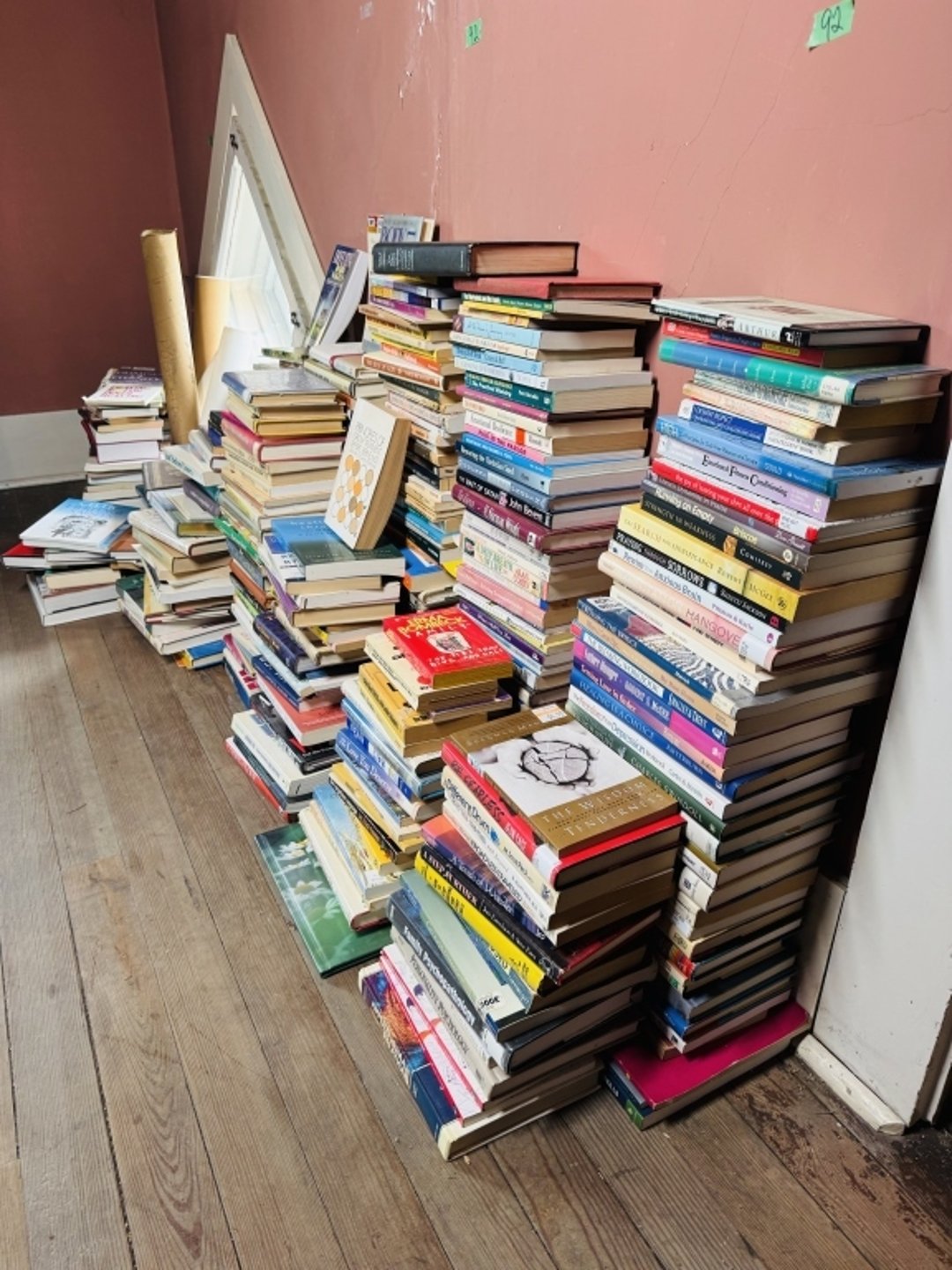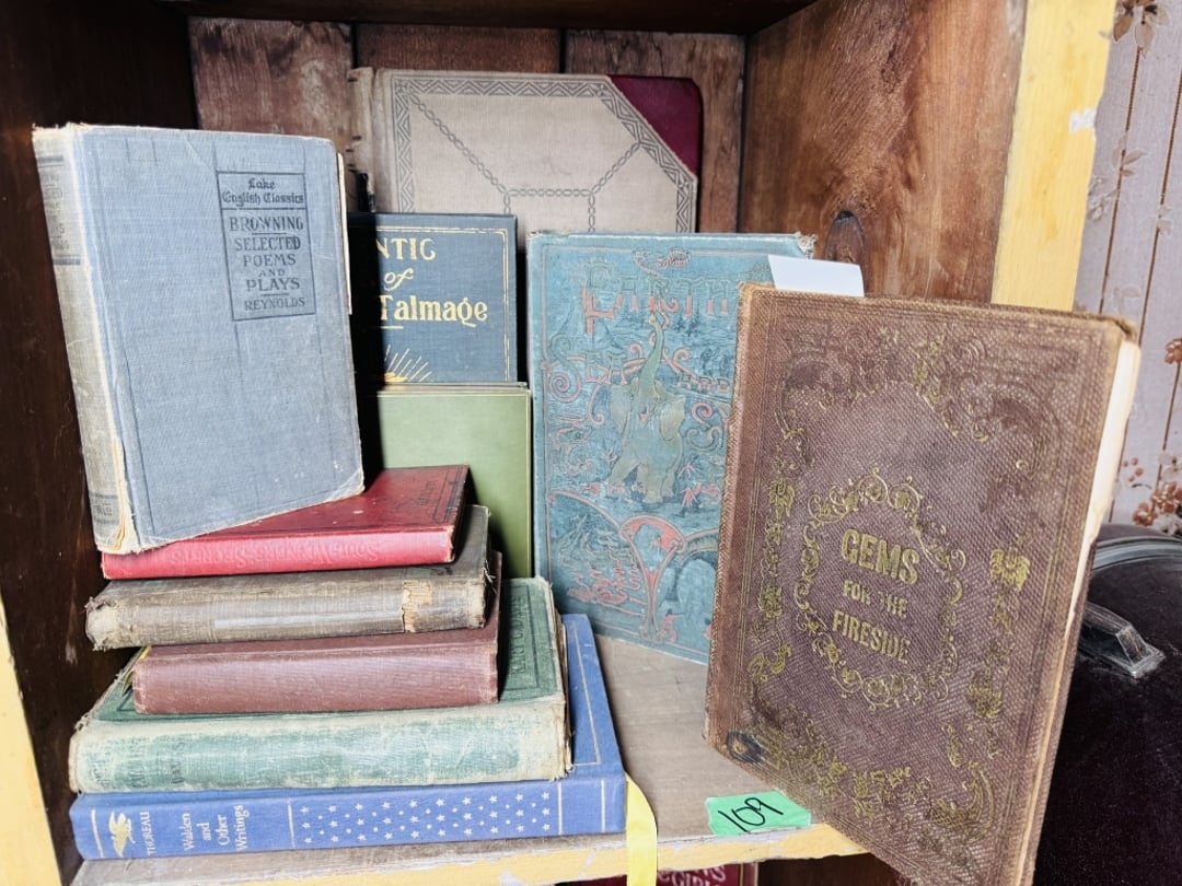 •Bookshelf & all books. Bookshelf measures 71.25Hx