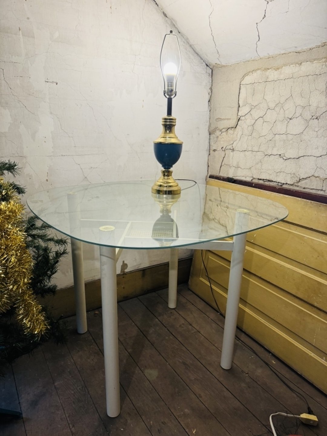 •Victorian bubble Glass Lamp w/brass base. 25.5inT