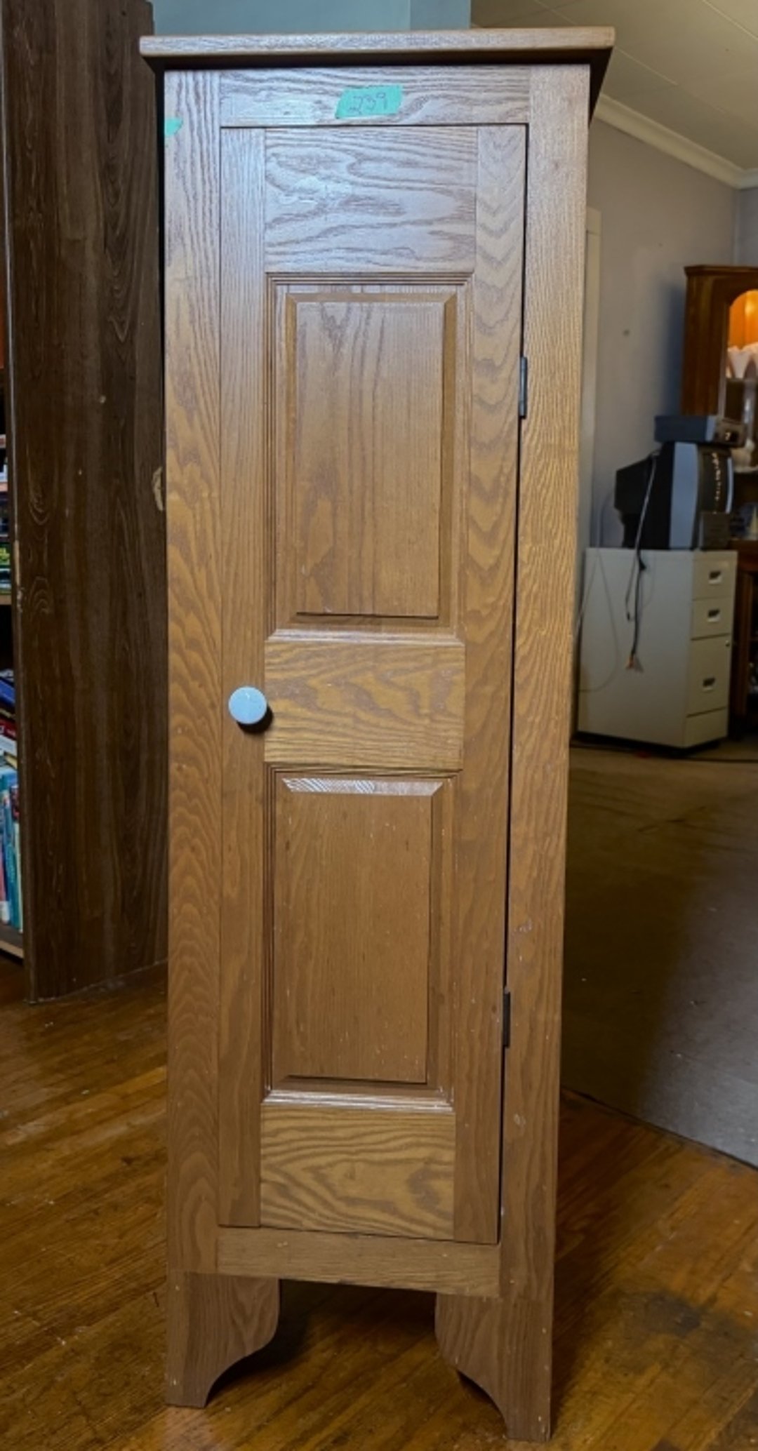 •5-shelf wood cabinet: 52Hx 16.5 Wx 11.5 D