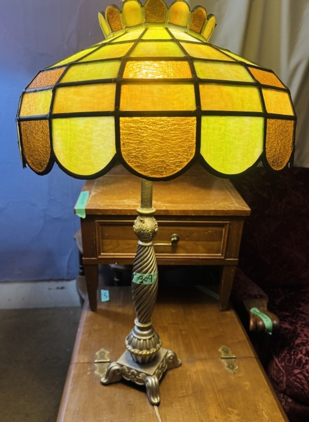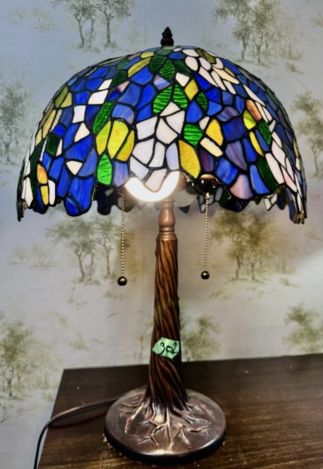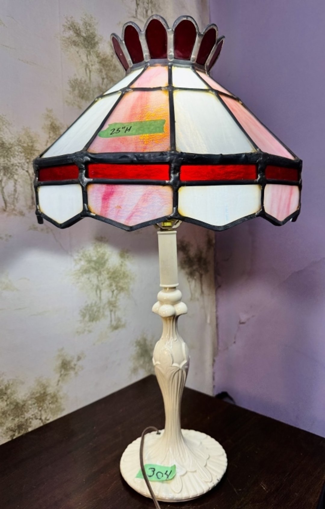 •Stained glass lamp shade: 11 Tx 18in DIA
