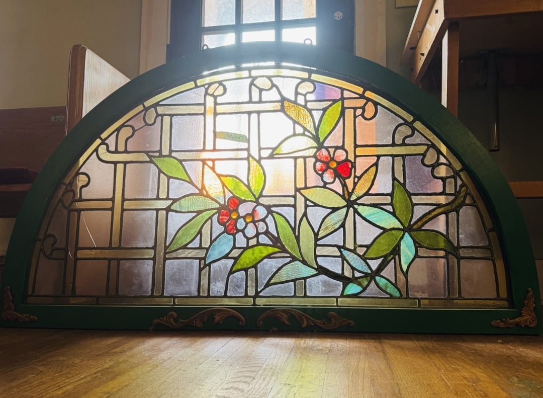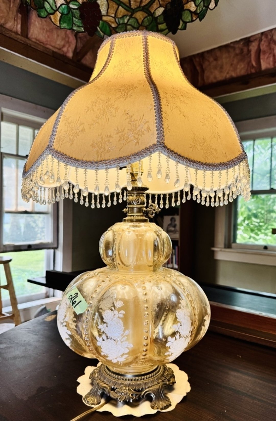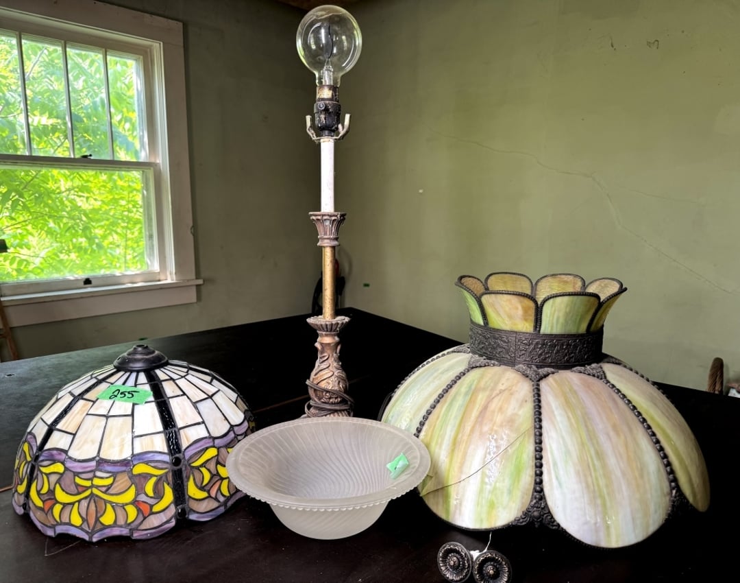 •Stained glass lamp shade: 11 Tx 18in DIA