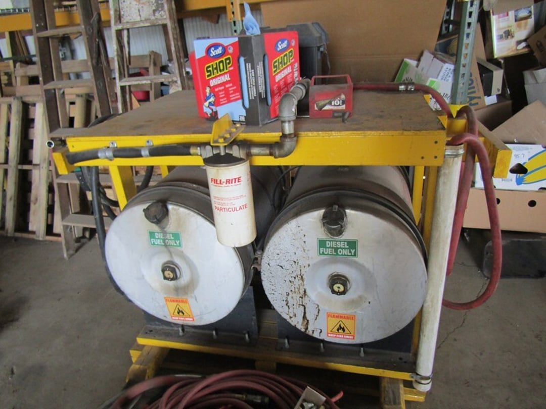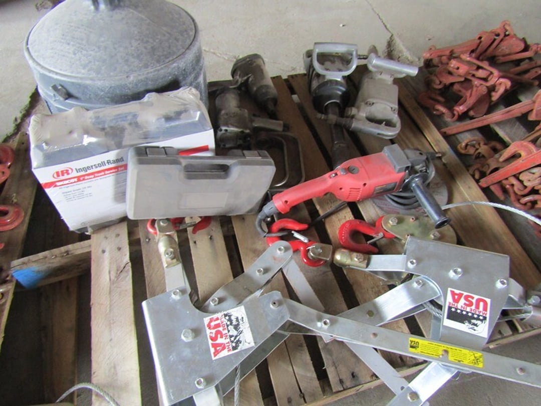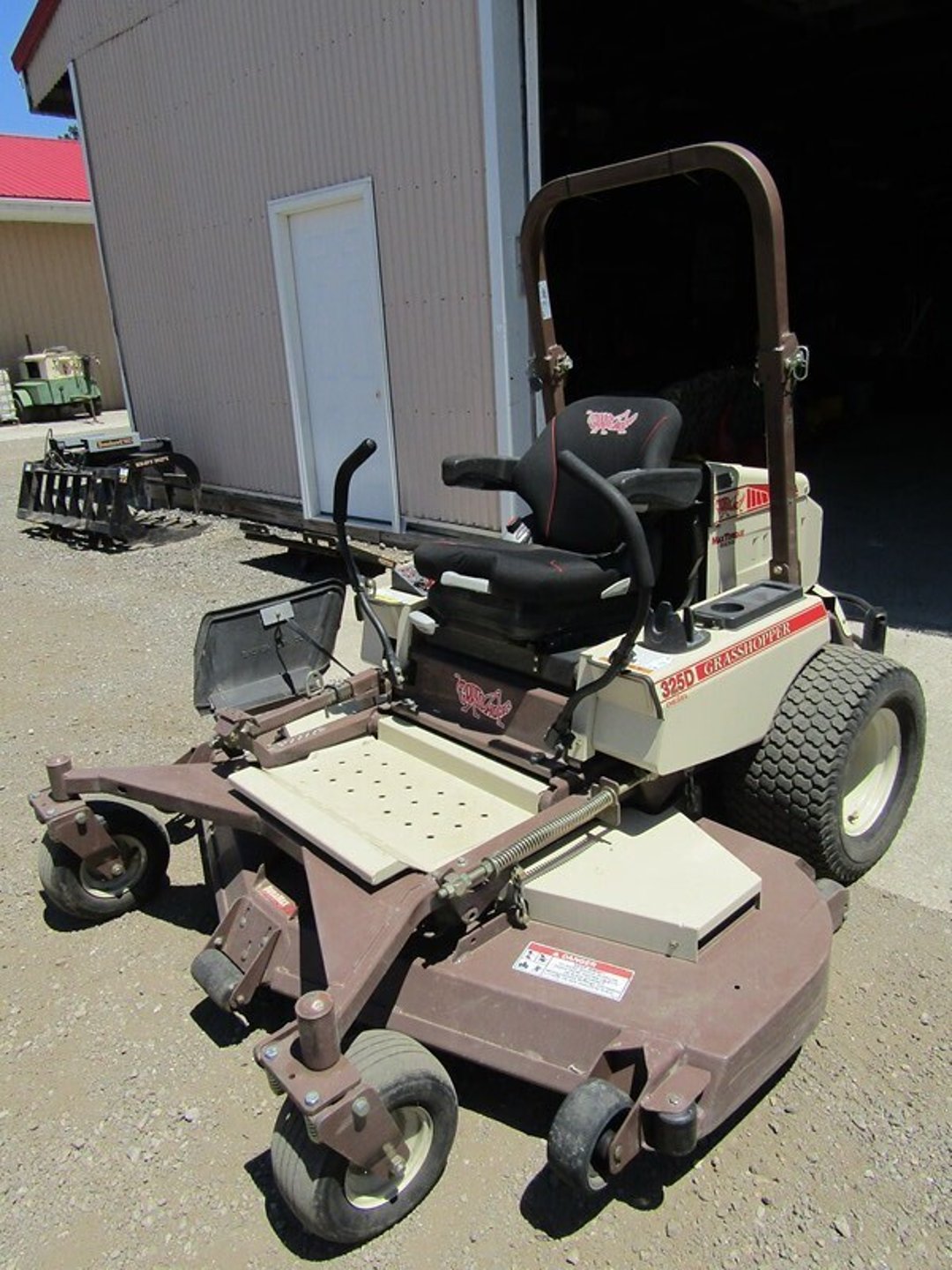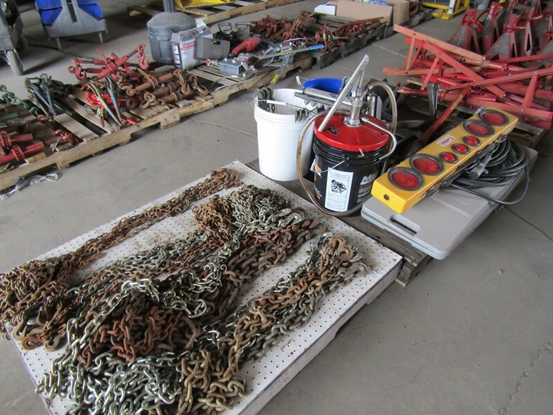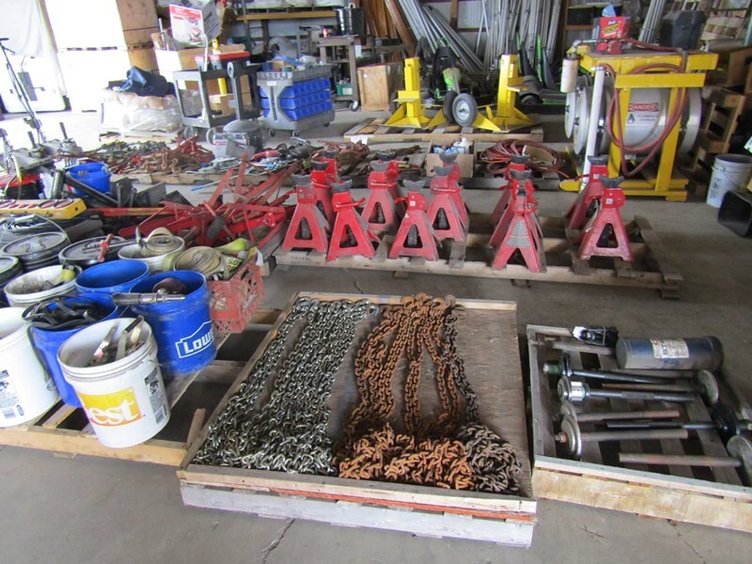•& Straps – Truck Fuel Tanks – Tire Repair Tools – Tire Cage —3/4″ Impact — Ingersoll Rand 1″ Drive – (2) Come-Alongs – Bench Grinder – (2) 22 Ton Air Jack – Electrical Wire Cart – Shop Cart – Lincoln Electric 216 Power Mig Welder – (2) Semi Trailer Jacks – Several 12 Ton Jacks Stands – Tow Mate Light Bar – 10 Ton Porta Power – 60″ Ridgid Pipe Wrench – Diesel Fuel Tank Pump – Shop Lights – (3) Liftmoore L22 1600LB Cranes – Shop Lights – Work Bench w/ Vise – Hose Reels – Oil Tanks – LED Amber Lights – Hitches – 100 G Transfer Tanks w/ Pumps – Various Size Truck Boxes – (2) Detroit Diesel Engine w/ PTO 633hrs & 870hrs – 2013 John Deere 6115D Tractor 3220 Hours –1954 Ferguson MY Tractor – Killbros 250 – 7 Auger Wagon – (2) J&M 350-20 Hopper Wagon – J&M 250-7 Hopper Wagon – J&M Hopper Wagon (Parts) – 26′ Unverferth Rolling Harrow II – 7 Shank Case IH Chisel Plow – 500G Fiberglass Tank – Scag Turf Tiger ST61A 61″ Cut (INOP) – 2017 Grasshopper 325D Kubota Diesel 72″ Cut 686hrs – 2008 Ferris IS3000 61″ Cut 1893 Mower – Walker MT23-M 1462 hrs – 2017 Wright Stander ZK 72″ Cut 892hrs – Turf TEQ 1305 Power Broom Honda Motor – (2) Scag Giant Vac Blower – NEW Various Lawn Mower Seats & Tires – (8) 8 Lug Skid Steer Tires “No Flats” – (3) Echo Leaf Blowers – Echo Weedeater – (2) Echo Tiller – 2 Carpet Cleaners – Wood Mizer LT15 – Sawmill Cutter – 42″ Cat 215 Excavator Bucket – Crown 4KLB Electric Stand Up Forklift – Cat 15