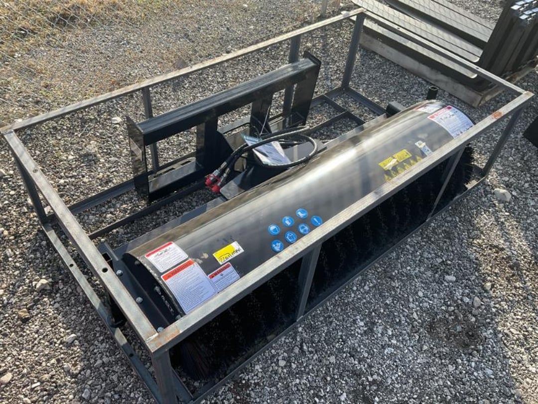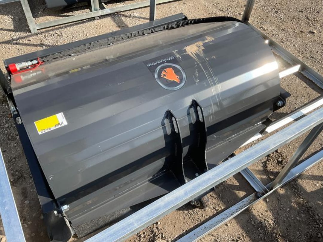 •Wolverine 72" Skid Steer Sweeper Bucket w/ Water Tank