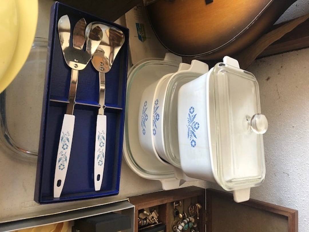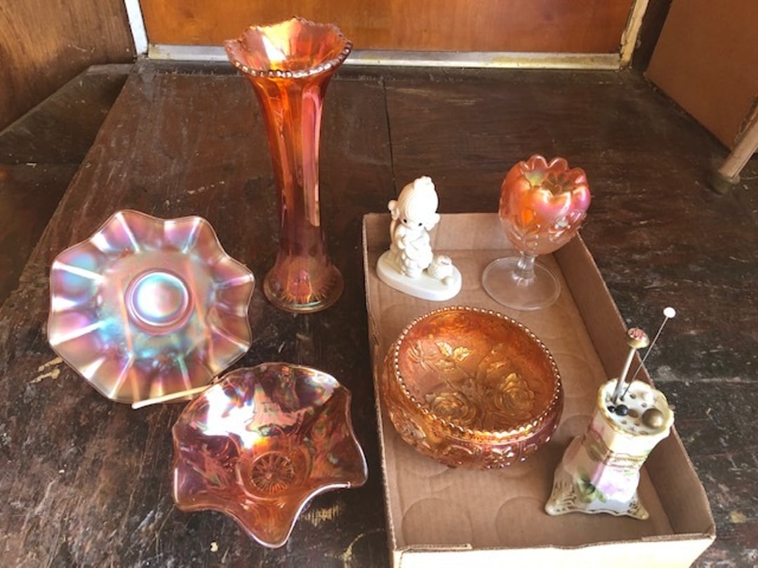 Kitchen Cupboard - Several "Tiner" Tools - Straw Rake - Metal Pet Carrier - (2) Apple Butter Kettles - #32 Wood Washer w/ wringer - Vintage Child's Barn - Sleigh Bells - Fern Tables - Jaqueline China - Ornate Rocker - Child's High Chair/Rocker - Easal - Child's Dresser w/ Glove Boxes - Glovan Maggih Violin - Carnival Glass - (34) Disney Plates - (11) Snow White Maiden Set - (10) Russian Legend Plates - Carnival Water Set - Cameras - Fosteria Platter - Old Fans - Child's Aluminum Tea Set - Laughin Pitcher & Bowl - (5) Flats of Salt (various) - Handmade Quilt - Vintage Baby Clothes - Set of Boonton Dishes - Wooden Slaw Cutter - Mantle & Wall Clocks - Singer Sewing Machine - Crestwood & Oahu Guitars - Salts Copper Boiler - Cold Canners - Crock Jugs - Apple Peeler - Citgo, Marathon, Valvoline, & Standard Metal Cans - Champion Boat Motor - Twin Tubs - Wringer Washer - Old Radios - Jeri Can - Sausage Stuffer - (4) Child's Chairs - Insulators - Amana Fridge with Bottom Freezer - Amana Washer - Maytag Dryer - Comm Natural Gas Dryer - Kitchen Table w/ 4 Chairs - Best Lift Chair - DXC Exercise Bike - Sofa - Sleeper Sofa - Twin Bed - Chest of Drawers - Cedar Chest - Kitchenaid Mixer - Signal Fan - Pots, Pans, Dishes - File Cabinet - Coolers - Hobby Lock 796 Surger - Lots of Christmas - Wagon - Pet Carrier - Scrap Iron - Raspberry Boxes - & MORE!