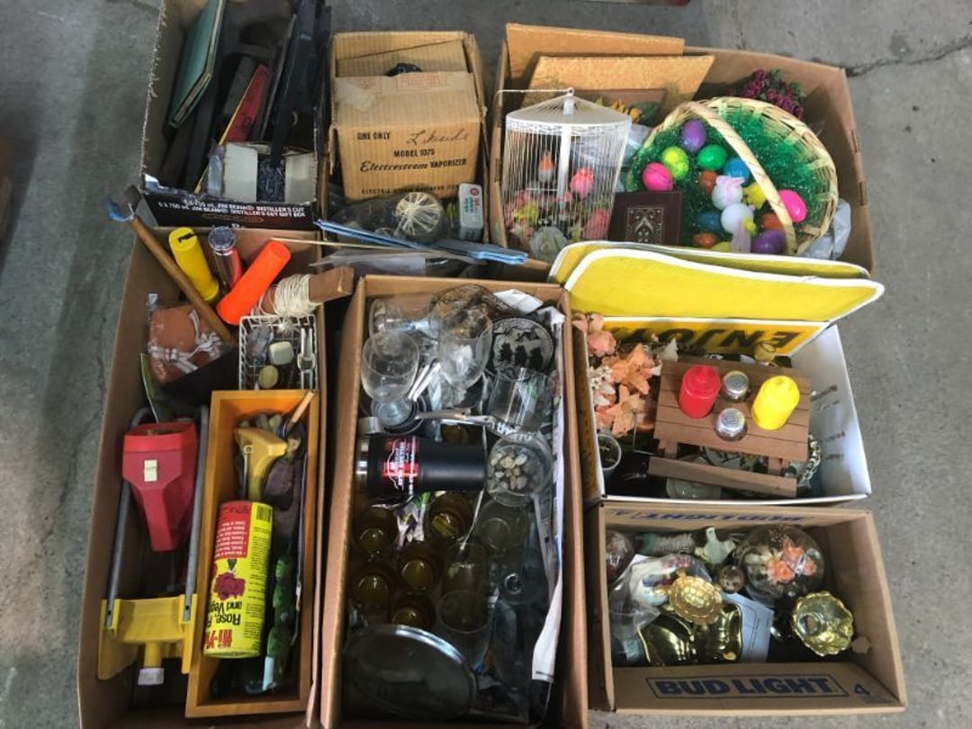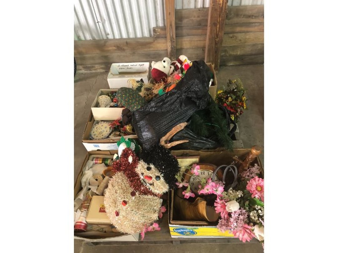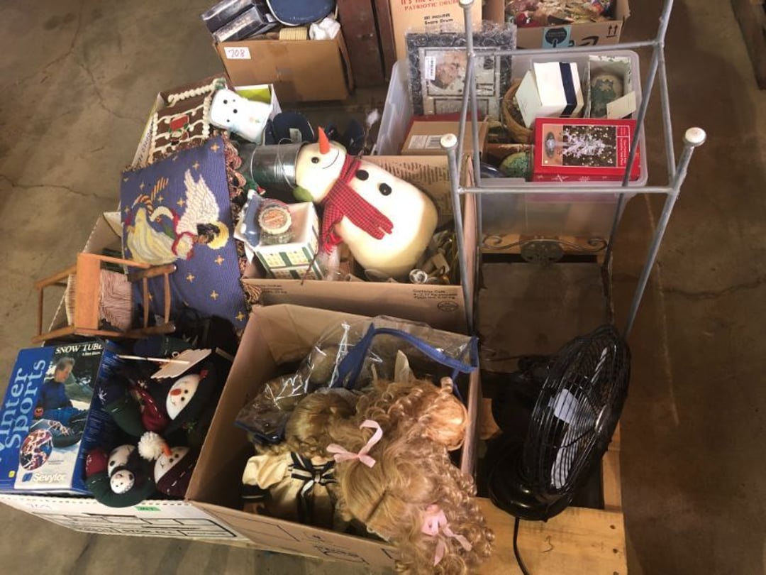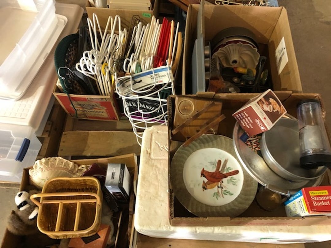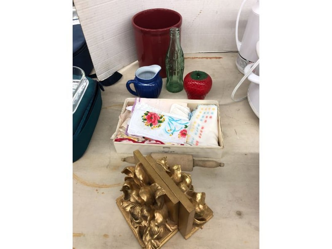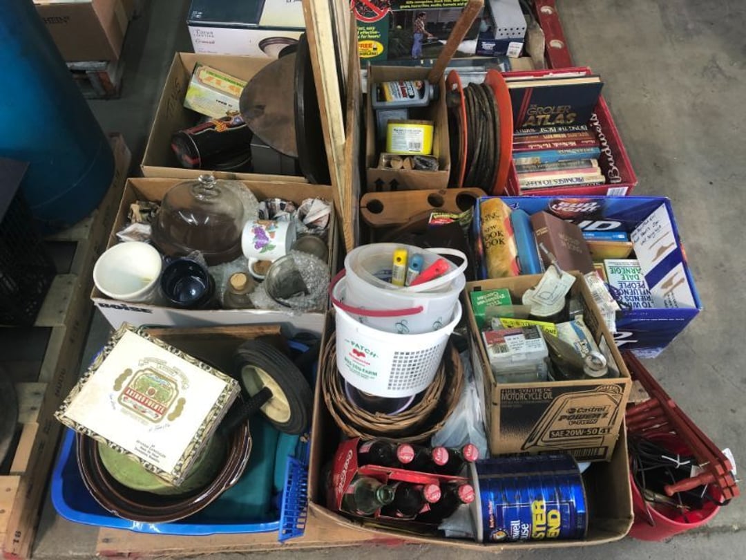 World Famous Beverage Metal Rack, Wire Case of conservo Bottles , Crosley vintage radio American & overseas, Electric appliance co. vintage phone , Cast Iron Corn & Candle Trays, Wood Spice Rack, Crock Butter Churn, 2 Crocks (some damage), Single Yoke, Dietz Construction Lantern (red globe), Vintage "Wonder Orange" Thermometer , Wood Ferrier Box, Shelving w/ towel bar , Metal Cattle Crossing & Wool Soap Sign , 4 Piece Pyrex Bowls, Insulators , Saw, Vintage Hooks & Pulley, 2 Crock Jugs, 2 Phones, Oboe Decatur Music Hoose , Metal First Aid Rack (Rexall), Play Load Red Wagon, Vintage wood baby rocking seat, Pal easy walker baby stroller, Vintage kitchen ware, 5 Baskets, 2 Thunder Bowls , 3 Jug Crocks, Antique skates , 5 metal signs, jacks pony steel spring rocking horse, pennzoil motor oil can, unico metal bucket & metal kerosene can, Wood Bird Feeder , 60 CD's, 50 CD's, 50 CD's, 50 CD's, 50 CD's, 49 CD's, 80 CD's, 80 CD's, Old Ironsides Metal Gas Can , Old Ironsides Metal Gas Can , 4 Vintage Pictures, New England Mantel Clock , 2 wagon wheels, 4 vintage wood boxes, Antique wood tool tool carrier , "Silver" trays, Fiesta cups & saucers (no markings), Glass bowls, Arrow head projectiles, Heavy glass Brides basket, pitcher, cracker jar candelabra , 7 PC. Fostoria Candle Wick, 4 Pictures, Stop sign, 4 Ton Portable puller, motorcycle exhaust, foot rest 1977 Chevy owners manual , art glass , blue glass, pair of lamps, vintage wall clock, 2 lamps, 2 lamps, large picture, 2 woven bird pictures + metal framed picture, 3 hand painted canvas pictures, 4 pastel pictures, Brass & Mirrors, Canvas Picture, 3 Picture, 3 pyrex bowls & 6 butterfly glasses, 2 pictures, iron deco piece & 3 pictures , 2 RC Dinosaurs , Camera & Parts, Gun Items, winchester primers, reloading dies, lee reloader & more, pistol perch gun rest, STA-PUT clay thrower & 2 cases of clays, white board w/ easel & case, Bushnell sportview spotting scope w/ tripod, Stanley bostitch nailer , Citizens band radio, sharpening stone , Vintage bread tin, insulators, vintage greeting cards, Car Jack, stamping set, sand blaster , Belt buckle w/ 6 1936-1945 Dimes, Fleet wood coin bag, jewelry box, pot & mugs, Photosmart plus NIB, Antique number 12 crock w/ minor chip , Stained glass window hanging , Princess house glass dishes , Singer sewing machine , Delta hollow chisel mortiser , Vintage No Name Acoustic Guitar, Vintage Airline Acoustic Parlor Guitar 1960"s, First Act ME 431 Electric guitar 2000's, Vintage Harmony Monterey Mandolin USA w/case 1960's, Vintage Chicago 5 string banjo made in USA 1950's, Celtic/Viking 925 Sterling Silver Ring size 10, Celtic/Viking 925 Sterling Silver Ring size 9, NIB 3 light Vanity, Hydraulic accumulator, 4 8"x1.75" Solid tires 1/2" bore, 3 John Deere Toy attachments, John Deere Tractor & Plow , echo hedge trimmer, fish king minnow bucket , the toledo cooker co. conservo, primitive kitchen ware, 2 McCabe hanging pieces & 3 horse deco, 84x60 Rag Rug & 2 small rugs, Primitive kitchen ware, Primitive kerosene light, Trap, hay hook, , Scotch tape wire display, 4 wire baskets , Dixie maid wood box w/ vintage blocks, Child's metal bath tub, Vintage wood bowl , Vintage wood bowl , Granite ware, Grinder on stand , Primitives , Metal primitives, 2 vintage child chairs, Vintage wood plant stand , Service bell, bells for ice cream trailer, Antique wheeling sprinkling can & cast iron pot, Antique child's chair, Metal child's antique chair, S.B Cough Drops LG Wood Box , 5 Oil Cans , Adjustable piano stool, Primitive clothes dryer, coat hooks, Primitive perfection clothes dryer, Kingsford's Smallwood slide top box, Heavy primitive wood box, The J.M. Bour Co's Coffee wooden box, Vintage Samsonite small suitcase, Bathroom cabinet with mirror, Bathroom cabinet with mirror, Wooden box, Metal advertising signs, Mirror w/ Coat Hooks, Porcelain Bedpan, Toys, Football cards - Early to mid 2000's 1600ct, Baseball/Basketball cards 1900's & 2000's 3,000ct, WWE Cards 2500ct est., Baseball Cards 1900's-2000's, Football Cards , Baseball Cards , Basketball Cards, Misc. sports cards, Football Cards 3,500ct, 4 kinds of Sports Cards, Basketball Cards, Basketball Mix Cards, Football Cards, Basketball Cards, Coleman, Gott & Little Playmate coolers, Konami, trading cards, Plumbing parts, 28 piece Haviland (E.O. Frances), Picture and serving platter, Lego magazines and Minecraft Legos, 9 vintage "My Little Ponies", Star Wars Figures, Victor Adding Machine, patriotic hanging light, Echo power blower, Toys, 2 Fire King casseroles, 6 1950's Ashtrays, Star Wars Figures, 3 Vintage Lunch Boxes, 3 Vintage Lunch Boxes, Barbies, Ping-Pong supplies, Reciprocating Saw w/ Blades Black & Decker Drill w/ Batteries, Grip Rite Stapler, 2 Car Signs, Grundig Shortwave Receiver, 4 Pictures, Medical Items, Stained Glass Picture, 2 Kerosene Lights, Heavy Glassware, Disney Musical Globe, Mixer, Heater, CD Player, Doorbell, Kitchen Utensils, Knives, Childs Silverware, Blender, Corelle, Mini Food Processor, Revere Ware, Tea Kettle, T-Fal Sauce Pan, JC Penney Sewing Machine w/ Accessories, B&D Mini Food Processor, Fondue Pot, Iron Skiller, 4 Glass Pie Pans, Heavy Glasses, Spice Set, Birdhouse, Military Metals, US Flag, 5x7 Rug, 2 Propane Tanks, 1 Full, Hamilton Beach Microwave, Cement Goose w/ Clothes, Brown Glassware, Vintage Bread Box & Lamp, Craftsman Blower, Earthwise Pressure Washer, Glassware, 50+ Corelle Dishes, Like New Brita, Rival Crock Pot, Coffee Thermos, Bread Crocks, Book Ends, Handkerchiefs, Childs Rolling Pin, 5 Pyrex Casseroles w/ 2 Carriers, Milkglass Berry Set, Pyrex Casserole, Cruets, Bowls, Flatware, Glasses, Birdbath w/ Rabbits, 3 Lamps, Elephant Stand, Kitchenware, Marble Cutting Board, Magic Chef Microwave, Sentry 1250 Safe, Igloo & Gott Coolers, Kenmore Progressive Sweeper, Vera Bradley, Forecast Suitcase w/ Wheels, Polaroid Camera, Christmas Village, Effanbee, Madame Alexander Dolls, Gnomes, Amber Glassware, 4 Bicentennial Plates, Blue Bubble Glass 