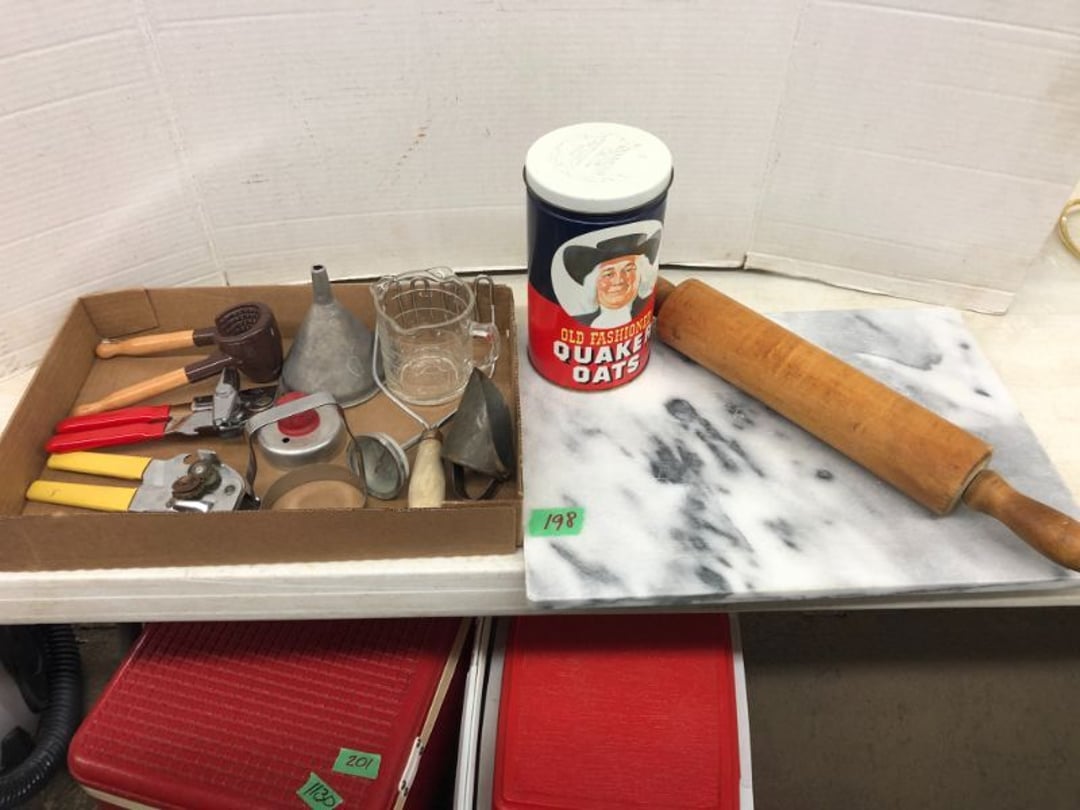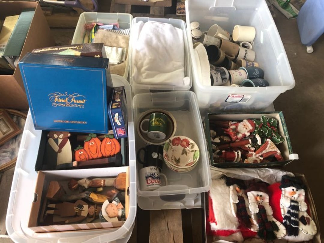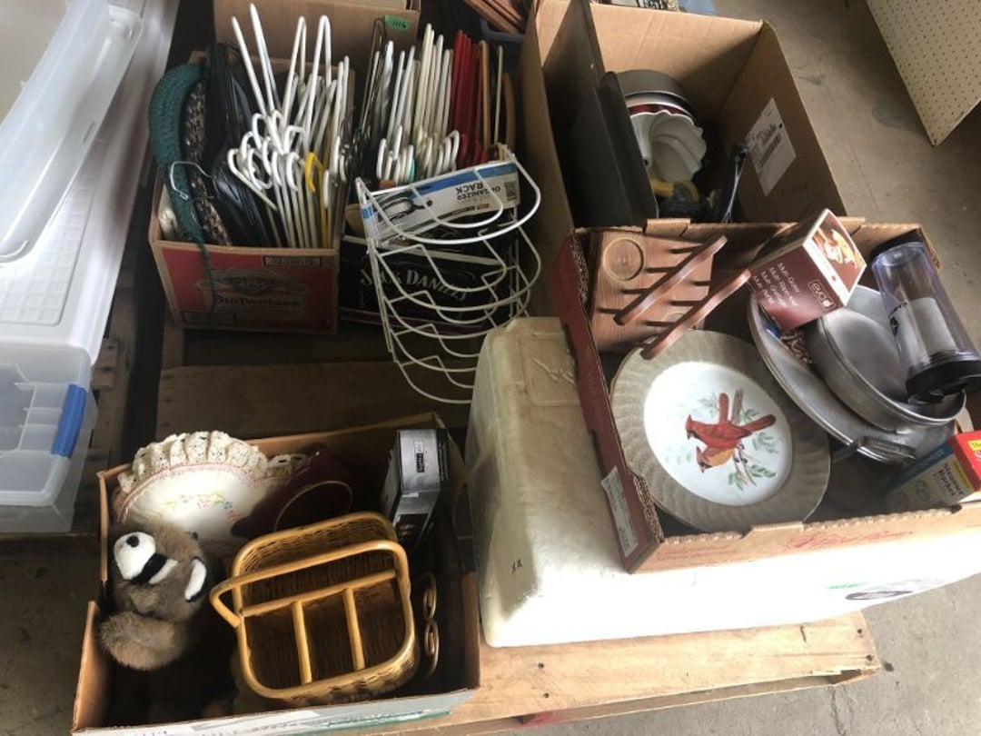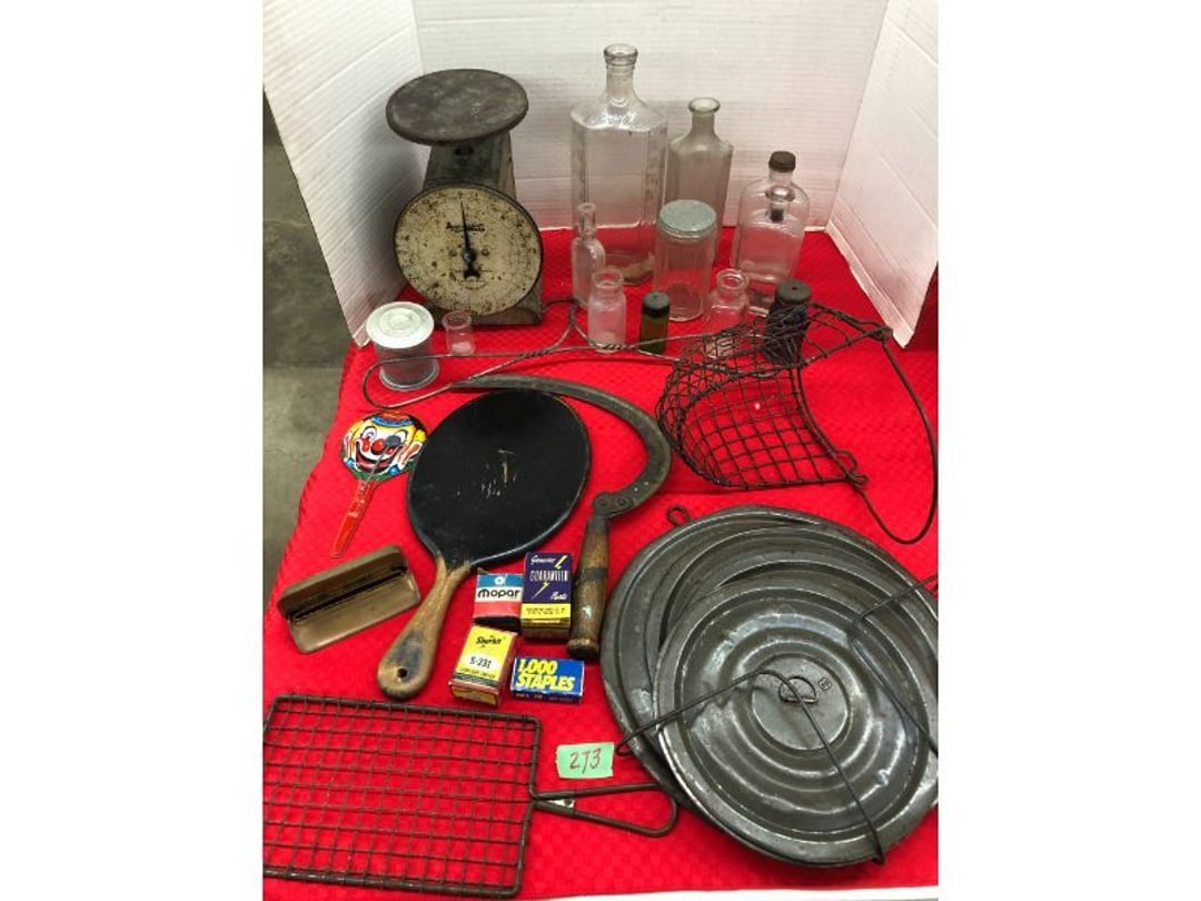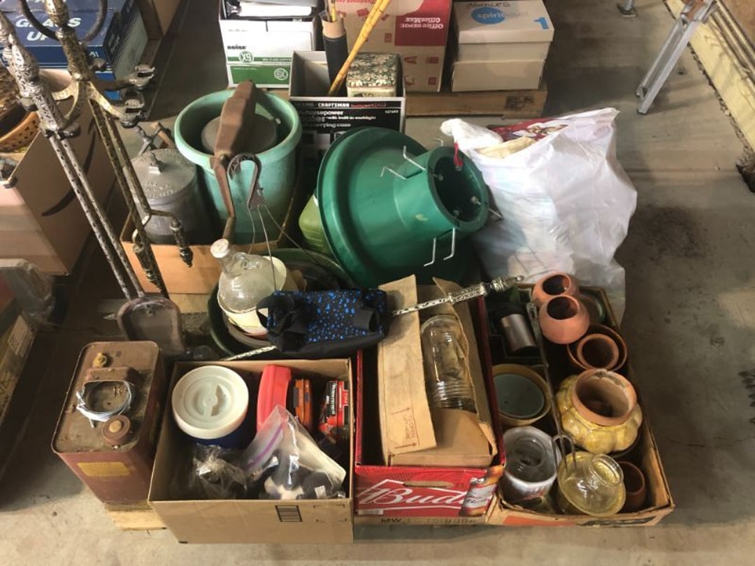World Famous Beverage Metal Rack, Wire Case of conservo Bottles , Crosley vintage radio American & overseas, Electric appliance co. vintage phone , Cast Iron Corn & Candle Trays, Wood Spice Rack, Crock Butter Churn, 2 Crocks (some damage), Single Yoke, Dietz Construction Lantern (red globe), Vintage "Wonder Orange" Thermometer , Wood Ferrier Box, Shelving w/ towel bar , Metal Cattle Crossing & Wool Soap Sign , 4 Piece Pyrex Bowls, Insulators , Saw, Vintage Hooks & Pulley, 2 Crock Jugs, 2 Phones, Oboe Decatur Music Hoose , Metal First Aid Rack (Rexall), Play Load Red Wagon, Vintage wood baby rocking seat, Pal easy walker baby stroller, Vintage kitchen ware, 5 Baskets, 2 Thunder Bowls , 3 Jug Crocks, Antique skates , 5 metal signs, jacks pony steel spring rocking horse, pennzoil motor oil can, unico metal bucket & metal kerosene can, Wood Bird Feeder , 60 CD's, 50 CD's, 50 CD's, 50 CD's, 50 CD's, 49 CD's, 80 CD's, 80 CD's, Old Ironsides Metal Gas Can , Old Ironsides Metal Gas Can , 4 Vintage Pictures, New England Mantel Clock , 2 wagon wheels, 4 vintage wood boxes, Antique wood tool tool carrier , "Silver" trays, Fiesta cups & saucers (no markings), Glass bowls, Arrow head projectiles, Heavy glass Brides basket, pitcher, cracker jar candelabra , 7 PC. Fostoria Candle Wick, 4 Pictures, Stop sign, 4 Ton Portable puller, motorcycle exhaust, foot rest 1977 Chevy owners manual , art glass , blue glass, pair of lamps, vintage wall clock, 2 lamps, 2 lamps, large picture, 2 woven bird pictures + metal framed picture, 3 hand painted canvas pictures, 4 pastel pictures, Brass & Mirrors, Canvas Picture, 3 Picture, 3 pyrex bowls & 6 butterfly glasses, 2 pictures, iron deco piece & 3 pictures , 2 RC Dinosaurs , Camera & Parts, Gun Items, winchester primers, reloading dies, lee reloader & more, pistol perch gun rest, STA-PUT clay thrower & 2 cases of clays, white board w/ easel & case, Bushnell sportview spotting scope w/ tripod, Stanley bostitch nailer , Citizens band radio, sharpening stone , Vintage bread tin, insulators, vintage greeting cards, Car Jack, stamping set, sand blaster , Belt buckle w/ 6 1936-1945 Dimes, Fleet wood coin bag, jewelry box, pot & mugs, Photosmart plus NIB, Antique number 12 crock w/ minor chip , Stained glass window hanging , Princess house glass dishes , Singer sewing machine , Delta hollow chisel mortiser , Vintage No Name Acoustic Guitar, Vintage Airline Acoustic Parlor Guitar 1960"s, First Act ME 431 Electric guitar 2000's, Vintage Harmony Monterey Mandolin USA w/case 1960's, Vintage Chicago 5 string banjo made in USA 1950's, Celtic/Viking 925 Sterling Silver Ring size 10, Celtic/Viking 925 Sterling Silver Ring size 9, NIB 3 light Vanity, Hydraulic accumulator, 4 8"x1.75" Solid tires 1/2" bore, 3 John Deere Toy attachments, John Deere Tractor & Plow , echo hedge trimmer, fish king minnow bucket , the toledo cooker co. conservo, primitive kitchen ware, 2 McCabe hanging pieces & 3 horse deco, 84x60 Rag Rug & 2 small rugs, Primitive kitchen ware, Primitive kerosene light, Trap, hay hook, , Scotch tape wire display, 4 wire baskets , Dixie maid wood box w/ vintage blocks, Child's metal bath tub, Vintage wood bowl , Vintage wood bowl , Granite ware, Grinder on stand , Primitives , Metal primitives, 2 vintage child chairs, Vintage wood plant stand , Service bell, bells for ice cream trailer, Antique wheeling sprinkling can & cast iron pot, Antique child's chair, Metal child's antique chair, S.B Cough Drops LG Wood Box , 5 Oil Cans , Adjustable piano stool, Primitive clothes dryer, coat hooks, Primitive perfection clothes dryer, Kingsford's Smallwood slide top box, Heavy primitive wood box, The J.M. Bour Co's Coffee wooden box, Vintage Samsonite small suitcase, Bathroom cabinet with mirror, Bathroom cabinet with mirror, Wooden box, Metal advertising signs, Mirror w/ Coat Hooks, Porcelain Bedpan, Toys, Football cards - Early to mid 2000's 1600ct, Baseball/Basketball cards 1900's & 2000's 3,000ct, WWE Cards 2500ct est., Baseball Cards 1900's-2000's, Football Cards , Baseball Cards , Basketball Cards, Misc. sports cards, Football Cards 3,500ct, 4 kinds of Sports Cards, Basketball Cards, Basketball Mix Cards, Football Cards, Basketball Cards, Coleman, Gott & Little Playmate coolers, Konami, trading cards, Plumbing parts, 28 piece Haviland (E.O. Frances), Picture and serving platter, Lego magazines and Minecraft Legos, 9 vintage "My Little Ponies", Star Wars Figures, Victor Adding Machine, patriotic hanging light, Echo power blower, Toys, 2 Fire King casseroles, 6 1950's Ashtrays, Star Wars Figures, 3 Vintage Lunch Boxes, 3 Vintage Lunch Boxes, Barbies, Ping-Pong supplies, Reciprocating Saw w/ Blades Black & Decker Drill w/ Batteries, Grip Rite Stapler, 2 Car Signs, Grundig Shortwave Receiver, 4 Pictures, Medical Items, Stained Glass Picture, 2 Kerosene Lights, Heavy Glassware, Disney Musical Globe, Mixer, Heater, CD Player, Doorbell, Kitchen Utensils, Knives, Childs Silverware, Blender, Corelle, Mini Food Processor, Revere Ware, Tea Kettle, T-Fal Sauce Pan, JC Penney Sewing Machine w/ Accessories, B&D Mini Food Processor, Fondue Pot, Iron Skiller, 4 Glass Pie Pans, Heavy Glasses, Spice Set, Birdhouse, Military Metals, US Flag, 5x7 Rug, 2 Propane Tanks, 1 Full, Hamilton Beach Microwave, Cement Goose w/ Clothes, Brown Glassware, Vintage Bread Box & Lamp, Craftsman Blower, Earthwise Pressure Washer, Glassware, 50+ Corelle Dishes, Like New Brita, Rival Crock Pot, Coffee Thermos, Bread Crocks, Book Ends, Handkerchiefs, Childs Rolling Pin, 5 Pyrex Casseroles w/ 2 Carriers, Milkglass Berry Set, Pyrex Casserole, Cruets, Bowls, Flatware, Glasses, Birdbath w/ Rabbits, 3 Lamps, Elephant Stand, Kitchenware, Marble Cutting Board, Magic Chef Microwave, Sentry 1250 Safe, Igloo & Gott Coolers, Kenmore Progressive Sweeper, Vera Bradley, Forecast Suitcase w/ Wheels, Polaroid Camera, Christmas Village, Effanbee, Madame Alexander Dolls, Gnomes, Amber Glassware, 4 Bicentennial Plates, Blue Bubble Glass 