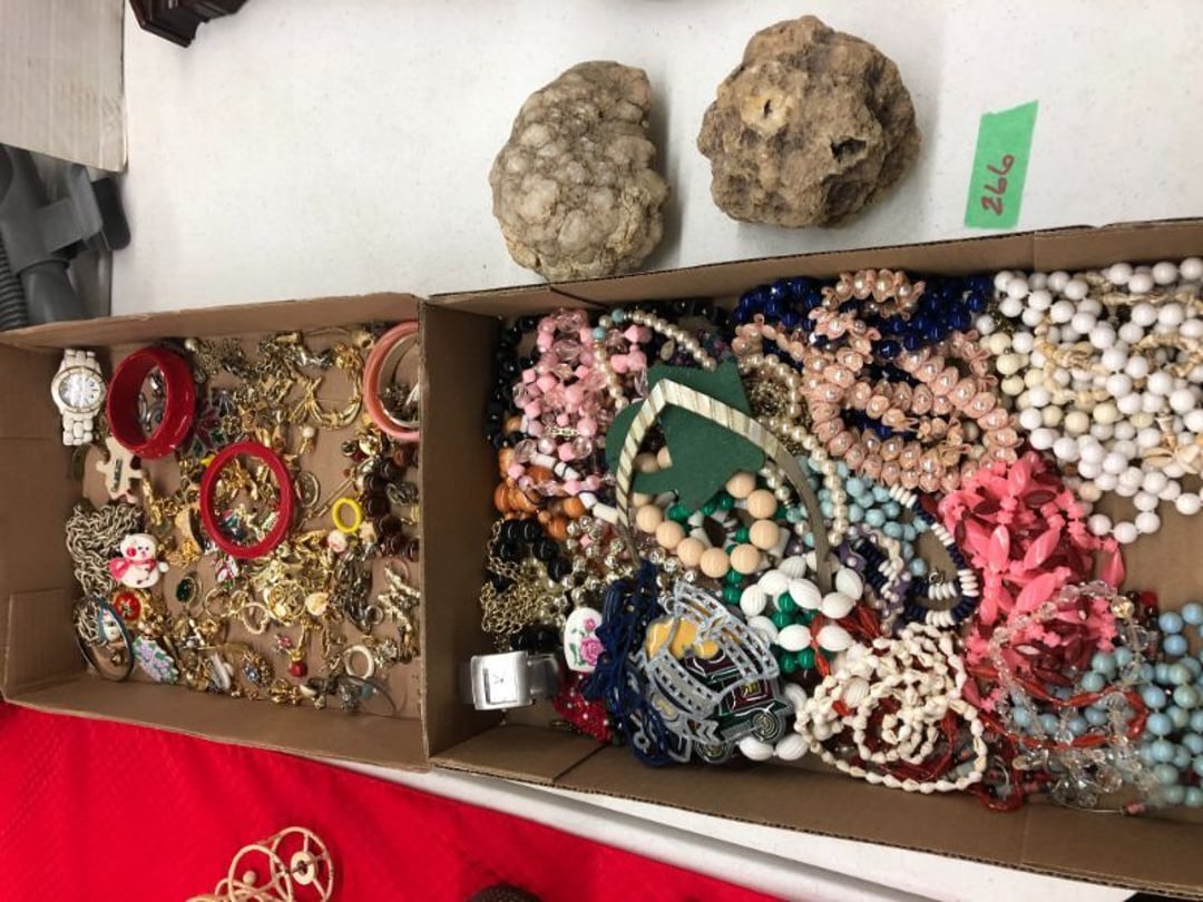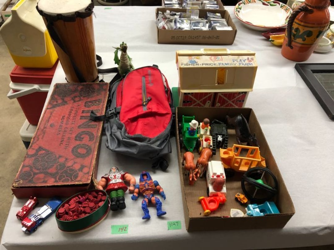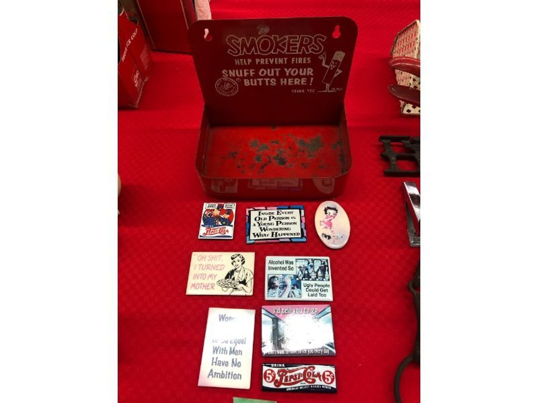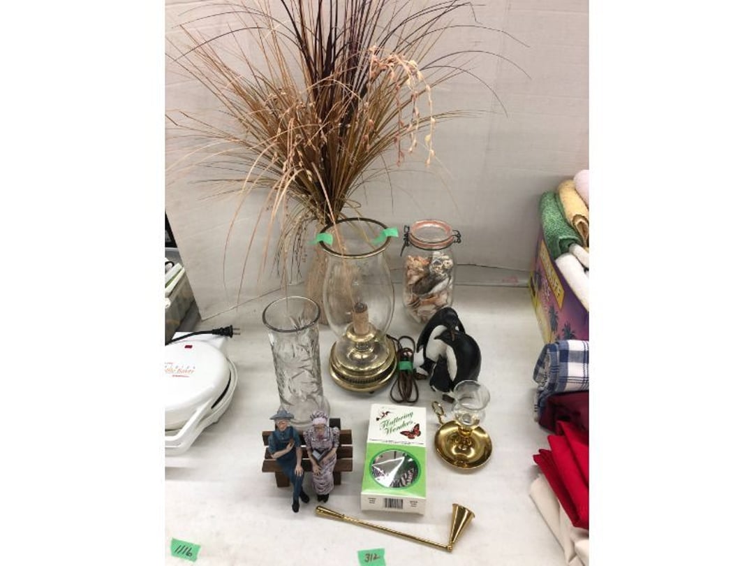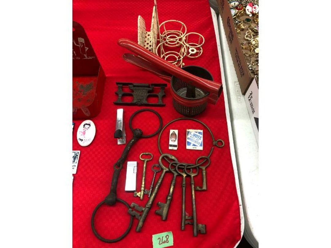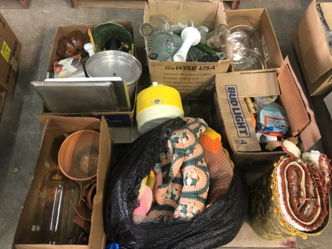 World Famous Beverage Metal Rack, Wire Case of conservo Bottles , Crosley vintage radio American & overseas, Electric appliance co. vintage phone , Cast Iron Corn & Candle Trays, Wood Spice Rack, Crock Butter Churn, 2 Crocks (some damage), Single Yoke, Dietz Construction Lantern (red globe), Vintage "Wonder Orange" Thermometer , Wood Ferrier Box, Shelving w/ towel bar , Metal Cattle Crossing & Wool Soap Sign , 4 Piece Pyrex Bowls, Insulators , Saw, Vintage Hooks & Pulley, 2 Crock Jugs, 2 Phones, Oboe Decatur Music Hoose , Metal First Aid Rack (Rexall), Play Load Red Wagon, Vintage wood baby rocking seat, Pal easy walker baby stroller, Vintage kitchen ware, 5 Baskets, 2 Thunder Bowls , 3 Jug Crocks, Antique skates , 5 metal signs, jacks pony steel spring rocking horse, pennzoil motor oil can, unico metal bucket & metal kerosene can, Wood Bird Feeder , 60 CD's, 50 CD's, 50 CD's, 50 CD's, 50 CD's, 49 CD's, 80 CD's, 80 CD's, Old Ironsides Metal Gas Can , Old Ironsides Metal Gas Can , 4 Vintage Pictures, New England Mantel Clock , 2 wagon wheels, 4 vintage wood boxes, Antique wood tool tool carrier , "Silver" trays, Fiesta cups & saucers (no markings), Glass bowls, Arrow head projectiles, Heavy glass Brides basket, pitcher, cracker jar candelabra , 7 PC. Fostoria Candle Wick, 4 Pictures, Stop sign, 4 Ton Portable puller, motorcycle exhaust, foot rest 1977 Chevy owners manual , art glass , blue glass, pair of lamps, vintage wall clock, 2 lamps, 2 lamps, large picture, 2 woven bird pictures + metal framed picture, 3 hand painted canvas pictures, 4 pastel pictures, Brass & Mirrors, Canvas Picture, 3 Picture, 3 pyrex bowls & 6 butterfly glasses, 2 pictures, iron deco piece & 3 pictures , 2 RC Dinosaurs , Camera & Parts, Gun Items, winchester primers, reloading dies, lee reloader & more, pistol perch gun rest, STA-PUT clay thrower & 2 cases of clays, white board w/ easel & case, Bushnell sportview spotting scope w/ tripod, Stanley bostitch nailer , Citizens band radio, sharpening stone , Vintage bread tin, insulators, vintage greeting cards, Car Jack, stamping set, sand blaster , Belt buckle w/ 6 1936-1945 Dimes, Fleet wood coin bag, jewelry box, pot & mugs, Photosmart plus NIB, Antique number 12 crock w/ minor chip , Stained glass window hanging , Princess house glass dishes , Singer sewing machine , Delta hollow chisel mortiser , Vintage No Name Acoustic Guitar, Vintage Airline Acoustic Parlor Guitar 1960"s, First Act ME 431 Electric guitar 2000's, Vintage Harmony Monterey Mandolin USA w/case 1960's, Vintage Chicago 5 string banjo made in USA 1950's, Celtic/Viking 925 Sterling Silver Ring size 10, Celtic/Viking 925 Sterling Silver Ring size 9, NIB 3 light Vanity, Hydraulic accumulator, 4 8"x1.75" Solid tires 1/2" bore, 3 John Deere Toy attachments, John Deere Tractor & Plow , echo hedge trimmer, fish king minnow bucket , the toledo cooker co. conservo, primitive kitchen ware, 2 McCabe hanging pieces & 3 horse deco, 84x60 Rag Rug & 2 small rugs, Primitive kitchen ware, Primitive kerosene light, Trap, hay hook, , Scotch tape wire display, 4 wire baskets , Dixie maid wood box w/ vintage blocks, Child's metal bath tub, Vintage wood bowl , Vintage wood bowl , Granite ware, Grinder on stand , Primitives , Metal primitives, 2 vintage child chairs, Vintage wood plant stand , Service bell, bells for ice cream trailer, Antique wheeling sprinkling can & cast iron pot, Antique child's chair, Metal child's antique chair, S.B Cough Drops LG Wood Box , 5 Oil Cans , Adjustable piano stool, Primitive clothes dryer, coat hooks, Primitive perfection clothes dryer, Kingsford's Smallwood slide top box, Heavy primitive wood box, The J.M. Bour Co's Coffee wooden box, Vintage Samsonite small suitcase, Bathroom cabinet with mirror, Bathroom cabinet with mirror, Wooden box, Metal advertising signs, Mirror w/ Coat Hooks, Porcelain Bedpan, Toys, Football cards - Early to mid 2000's 1600ct, Baseball/Basketball cards 1900's & 2000's 3,000ct, WWE Cards 2500ct est., Baseball Cards 1900's-2000's, Football Cards , Baseball Cards , Basketball Cards, Misc. sports cards, Football Cards 3,500ct, 4 kinds of Sports Cards, Basketball Cards, Basketball Mix Cards, Football Cards, Basketball Cards, Coleman, Gott & Little Playmate coolers, Konami, trading cards, Plumbing parts, 28 piece Haviland (E.O. Frances), Picture and serving platter, Lego magazines and Minecraft Legos, 9 vintage "My Little Ponies", Star Wars Figures, Victor Adding Machine, patriotic hanging light, Echo power blower, Toys, 2 Fire King casseroles, 6 1950's Ashtrays, Star Wars Figures, 3 Vintage Lunch Boxes, 3 Vintage Lunch Boxes, Barbies, Ping-Pong supplies, Reciprocating Saw w/ Blades Black & Decker Drill w/ Batteries, Grip Rite Stapler, 2 Car Signs, Grundig Shortwave Receiver, 4 Pictures, Medical Items, Stained Glass Picture, 2 Kerosene Lights, Heavy Glassware, Disney Musical Globe, Mixer, Heater, CD Player, Doorbell, Kitchen Utensils, Knives, Childs Silverware, Blender, Corelle, Mini Food Processor, Revere Ware, Tea Kettle, T-Fal Sauce Pan, JC Penney Sewing Machine w/ Accessories, B&D Mini Food Processor, Fondue Pot, Iron Skiller, 4 Glass Pie Pans, Heavy Glasses, Spice Set, Birdhouse, Military Metals, US Flag, 5x7 Rug, 2 Propane Tanks, 1 Full, Hamilton Beach Microwave, Cement Goose w/ Clothes, Brown Glassware, Vintage Bread Box & Lamp, Craftsman Blower, Earthwise Pressure Washer, Glassware, 50+ Corelle Dishes, Like New Brita, Rival Crock Pot, Coffee Thermos, Bread Crocks, Book Ends, Handkerchiefs, Childs Rolling Pin, 5 Pyrex Casseroles w/ 2 Carriers, Milkglass Berry Set, Pyrex Casserole, Cruets, Bowls, Flatware, Glasses, Birdbath w/ Rabbits, 3 Lamps, Elephant Stand, Kitchenware, Marble Cutting Board, Magic Chef Microwave, Sentry 1250 Safe, Igloo & Gott Coolers, Kenmore Progressive Sweeper, Vera Bradley, Forecast Suitcase w/ Wheels, Polaroid Camera, Christmas Village, Effanbee, Madame Alexander Dolls, Gnomes, Amber Glassware, 4 Bicentennial Plates, Blue Bubble Glass 