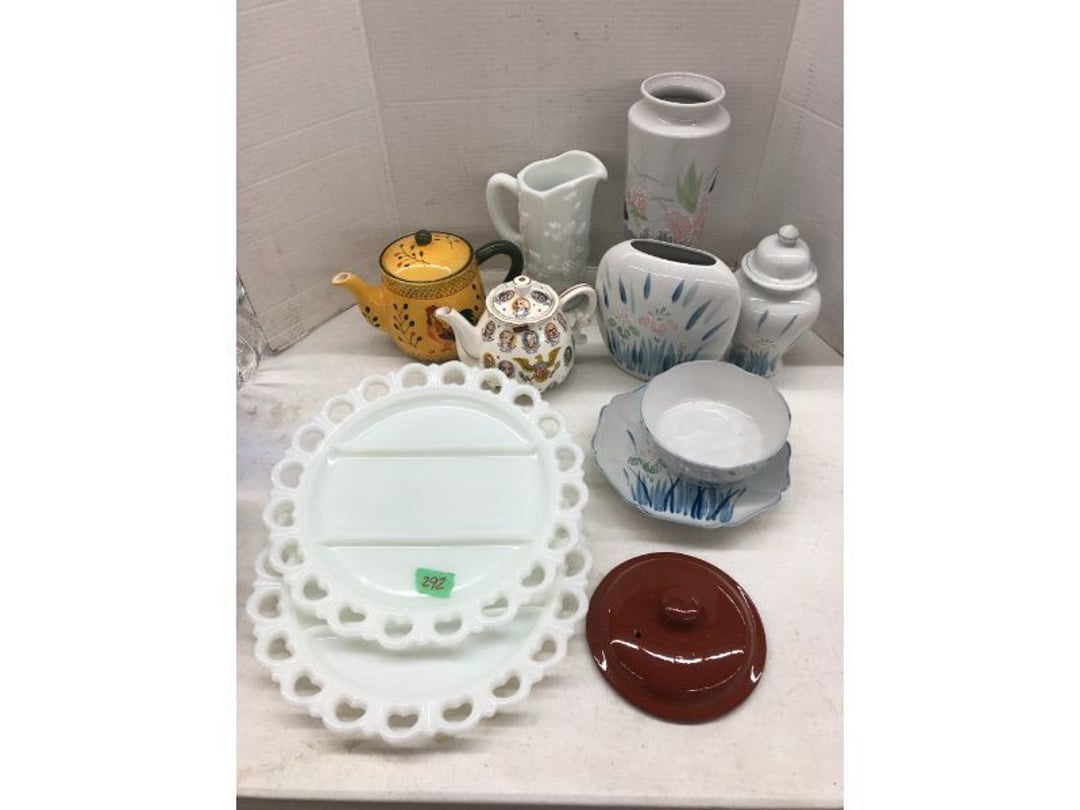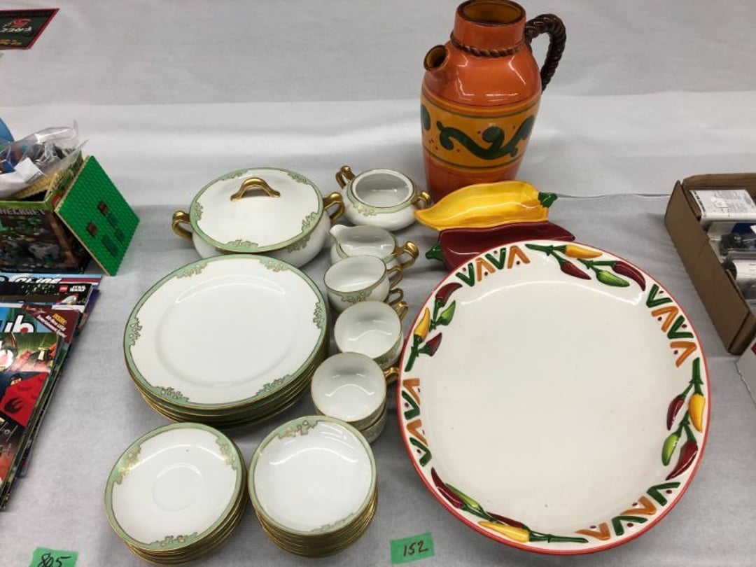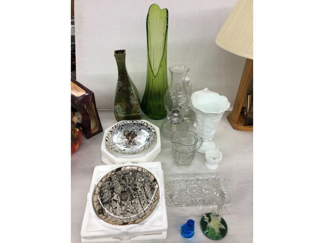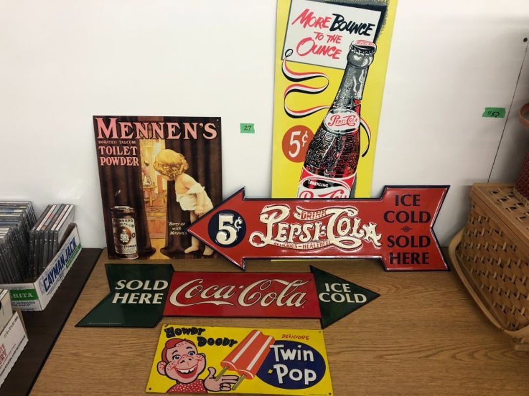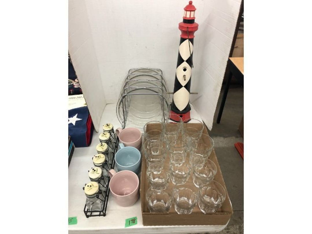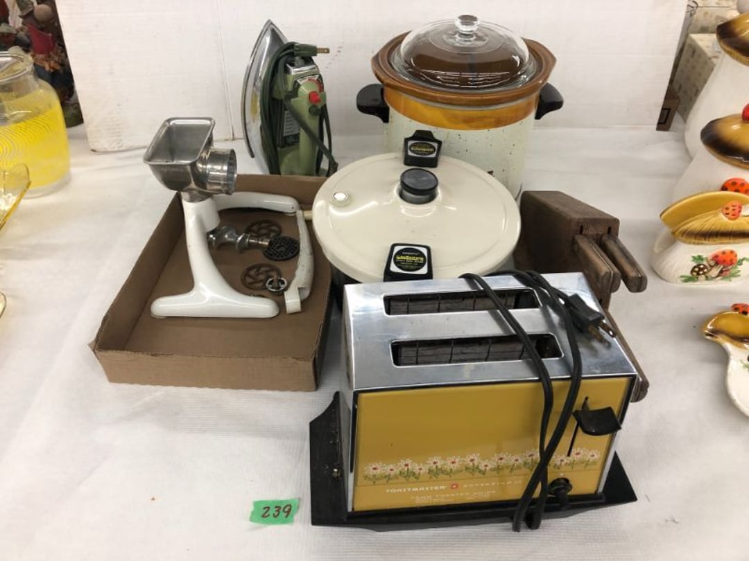 World Famous Beverage Metal Rack, Wire Case of conservo Bottles , Crosley vintage radio American & overseas, Electric appliance co. vintage phone , Cast Iron Corn & Candle Trays, Wood Spice Rack, Crock Butter Churn, 2 Crocks (some damage), Single Yoke, Dietz Construction Lantern (red globe), Vintage "Wonder Orange" Thermometer , Wood Ferrier Box, Shelving w/ towel bar , Metal Cattle Crossing & Wool Soap Sign , 4 Piece Pyrex Bowls, Insulators , Saw, Vintage Hooks & Pulley, 2 Crock Jugs, 2 Phones, Oboe Decatur Music Hoose , Metal First Aid Rack (Rexall), Play Load Red Wagon, Vintage wood baby rocking seat, Pal easy walker baby stroller, Vintage kitchen ware, 5 Baskets, 2 Thunder Bowls , 3 Jug Crocks, Antique skates , 5 metal signs, jacks pony steel spring rocking horse, pennzoil motor oil can, unico metal bucket & metal kerosene can, Wood Bird Feeder , 60 CD's, 50 CD's, 50 CD's, 50 CD's, 50 CD's, 49 CD's, 80 CD's, 80 CD's, Old Ironsides Metal Gas Can , Old Ironsides Metal Gas Can , 4 Vintage Pictures, New England Mantel Clock , 2 wagon wheels, 4 vintage wood boxes, Antique wood tool tool carrier , "Silver" trays, Fiesta cups & saucers (no markings), Glass bowls, Arrow head projectiles, Heavy glass Brides basket, pitcher, cracker jar candelabra , 7 PC. Fostoria Candle Wick, 4 Pictures, Stop sign, 4 Ton Portable puller, motorcycle exhaust, foot rest 1977 Chevy owners manual , art glass , blue glass, pair of lamps, vintage wall clock, 2 lamps, 2 lamps, large picture, 2 woven bird pictures + metal framed picture, 3 hand painted canvas pictures, 4 pastel pictures, Brass & Mirrors, Canvas Picture, 3 Picture, 3 pyrex bowls & 6 butterfly glasses, 2 pictures, iron deco piece & 3 pictures , 2 RC Dinosaurs , Camera & Parts, Gun Items, winchester primers, reloading dies, lee reloader & more, pistol perch gun rest, STA-PUT clay thrower & 2 cases of clays, white board w/ easel & case, Bushnell sportview spotting scope w/ tripod, Stanley bostitch nailer , Citizens band radio, sharpening stone , Vintage bread tin, insulators, vintage greeting cards, Car Jack, stamping set, sand blaster , Belt buckle w/ 6 1936-1945 Dimes, Fleet wood coin bag, jewelry box, pot & mugs, Photosmart plus NIB, Antique number 12 crock w/ minor chip , Stained glass window hanging , Princess house glass dishes , Singer sewing machine , Delta hollow chisel mortiser , Vintage No Name Acoustic Guitar, Vintage Airline Acoustic Parlor Guitar 1960"s, First Act ME 431 Electric guitar 2000's, Vintage Harmony Monterey Mandolin USA w/case 1960's, Vintage Chicago 5 string banjo made in USA 1950's, Celtic/Viking 925 Sterling Silver Ring size 10, Celtic/Viking 925 Sterling Silver Ring size 9, NIB 3 light Vanity, Hydraulic accumulator, 4 8"x1.75" Solid tires 1/2" bore, 3 John Deere Toy attachments, John Deere Tractor & Plow , echo hedge trimmer, fish king minnow bucket , the toledo cooker co. conservo, primitive kitchen ware, 2 McCabe hanging pieces & 3 horse deco, 84x60 Rag Rug & 2 small rugs, Primitive kitchen ware, Primitive kerosene light, Trap, hay hook, , Scotch tape wire display, 4 wire baskets , Dixie maid wood box w/ vintage blocks, Child's metal bath tub, Vintage wood bowl , Vintage wood bowl , Granite ware, Grinder on stand , Primitives , Metal primitives, 2 vintage child chairs, Vintage wood plant stand , Service bell, bells for ice cream trailer, Antique wheeling sprinkling can & cast iron pot, Antique child's chair, Metal child's antique chair, S.B Cough Drops LG Wood Box , 5 Oil Cans , Adjustable piano stool, Primitive clothes dryer, coat hooks, Primitive perfection clothes dryer, Kingsford's Smallwood slide top box, Heavy primitive wood box, The J.M. Bour Co's Coffee wooden box, Vintage Samsonite small suitcase, Bathroom cabinet with mirror, Bathroom cabinet with mirror, Wooden box, Metal advertising signs, Mirror w/ Coat Hooks, Porcelain Bedpan, Toys, Football cards - Early to mid 2000's 1600ct, Baseball/Basketball cards 1900's & 2000's 3,000ct, WWE Cards 2500ct est., Baseball Cards 1900's-2000's, Football Cards , Baseball Cards , Basketball Cards, Misc. sports cards, Football Cards 3,500ct, 4 kinds of Sports Cards, Basketball Cards, Basketball Mix Cards, Football Cards, Basketball Cards, Coleman, Gott & Little Playmate coolers, Konami, trading cards, Plumbing parts, 28 piece Haviland (E.O. Frances), Picture and serving platter, Lego magazines and Minecraft Legos, 9 vintage "My Little Ponies", Star Wars Figures, Victor Adding Machine, patriotic hanging light, Echo power blower, Toys, 2 Fire King casseroles, 6 1950's Ashtrays, Star Wars Figures, 3 Vintage Lunch Boxes, 3 Vintage Lunch Boxes, Barbies, Ping-Pong supplies, Reciprocating Saw w/ Blades Black & Decker Drill w/ Batteries, Grip Rite Stapler, 2 Car Signs, Grundig Shortwave Receiver, 4 Pictures, Medical Items, Stained Glass Picture, 2 Kerosene Lights, Heavy Glassware, Disney Musical Globe, Mixer, Heater, CD Player, Doorbell, Kitchen Utensils, Knives, Childs Silverware, Blender, Corelle, Mini Food Processor, Revere Ware, Tea Kettle, T-Fal Sauce Pan, JC Penney Sewing Machine w/ Accessories, B&D Mini Food Processor, Fondue Pot, Iron Skiller, 4 Glass Pie Pans, Heavy Glasses, Spice Set, Birdhouse, Military Metals, US Flag, 5x7 Rug, 2 Propane Tanks, 1 Full, Hamilton Beach Microwave, Cement Goose w/ Clothes, Brown Glassware, Vintage Bread Box & Lamp, Craftsman Blower, Earthwise Pressure Washer, Glassware, 50+ Corelle Dishes, Like New Brita, Rival Crock Pot, Coffee Thermos, Bread Crocks, Book Ends, Handkerchiefs, Childs Rolling Pin, 5 Pyrex Casseroles w/ 2 Carriers, Milkglass Berry Set, Pyrex Casserole, Cruets, Bowls, Flatware, Glasses, Birdbath w/ Rabbits, 3 Lamps, Elephant Stand, Kitchenware, Marble Cutting Board, Magic Chef Microwave, Sentry 1250 Safe, Igloo & Gott Coolers, Kenmore Progressive Sweeper, Vera Bradley, Forecast Suitcase w/ Wheels, Polaroid Camera, Christmas Village, Effanbee, Madame Alexander Dolls, Gnomes, Amber Glassware, 4 Bicentennial Plates, Blue Bubble Glass 