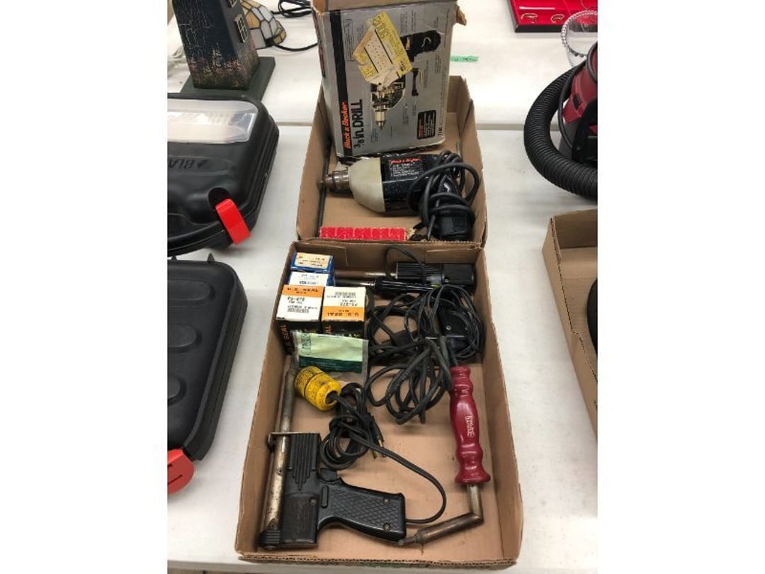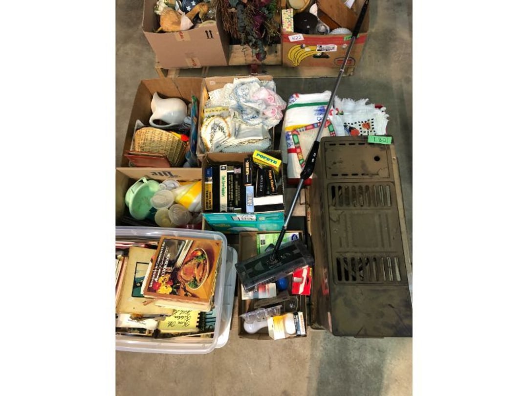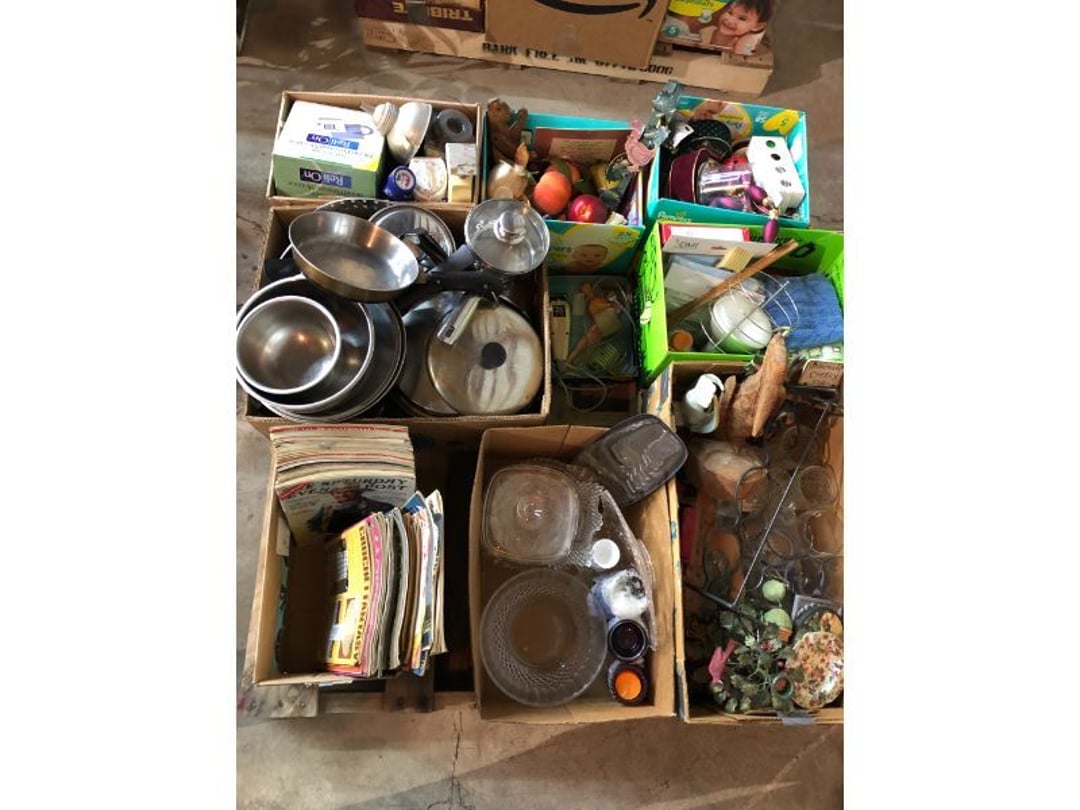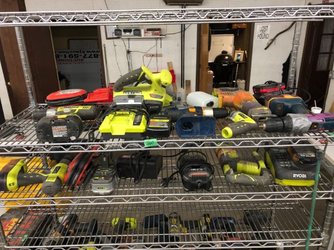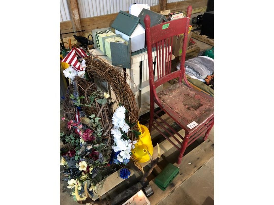 6' Ladder - Extention Ladder - Black & Decker Trimmer w/battery, Broadcast seeder - Small Fridigaire Freezer - 30 Gallon Fuel Tank - Porter Cable grinder - KD Ergonmiuc Office Chair - Porter Cable 3 Nailer/Compressor Combo Kit - Porter Cable Pin Nailer - Kobalt Tools - Larin Jack Stands & Floor Jack - Hydraulic Floor Jack - 48" Level & Misc. Tools - Golf Clubs - 2 piece Gray Luggage - Canning Jars - Wood Tool Carrier - Trimon Glassware - Clocks - Wicker baby buggy - Lamps - Vintage Stereoscope with cards- Gone With the Wind lamps - 38" Sword - 25" Sword - Pink Depression - VintageToys - Pictures & Figureines - Decatur Cast Iron Roosters - Wooden Decorators - Wooden Decorator Cabinets - Pyrex & Glassware - Ceramic Christmas Tree - Vintage Hamilton Wooden Show Box - Lady Bug Houses - Metal Eagles - Vintage Postcards - Mantle Clock - Vintage Quilt and Rag Rug - Sharp CD player w/ speakers - 3 McCoy pots - 2 Pioneer Speakers - Allstate Electric Train - Small Wooden Cedar Chest - Metal Ammo Box- Red Rock Cola Wooden Box - Chicago Electric Plasma Cutter - .925 Sterling Silver Belt Buckle - KLH Speakers & Bose Speakers, Misc. Wiring - Coffing Hoist - Craftsman Drill Press - 2 Wooden Hudson Pulleys - Craftsman Trolley Floor Jack - DeWalt Circular Saw w/ 2 batteries & charger - 2 Stage Deep Vaccumn Pump - Cement Angel - Wood Box w/ deer motif - Percision Compound Bow - Steer Skull - Cast Iron Pig Bank - Craftsman Greese Gun - 2 Wooden Ducks - Bose Wave Radio - 2 Metal Lockboxes w/ level - Mueller Brass Company Wood Box - Misc. Kitchenware - Costume Jewlery, plate, & Event Tokens - Vintage Lamp Pieces - Kitchen Appliances - Rain Train - Vintage Copper Mailbox - Heavy Duty Extension Cord w/snake - Hull Vase - Metal Pony Express Spitoon - Misc. Crocs - Tavern scene Jar, Glass Cottage Cheese Container, & Equity Milk Bottle - Large Glass Jar - 2 qt. Croc & Small Covered dish - Boyd's Bears & TY Beanie Babies - Garmin GPS, clocks, & RCA VHS Player - 29 Pieces, Greenware Glass Dishes - 32 Piece Carico Dishes - Horns & Fish - Brass Stand & Metal Lamp - Vintage & New Decorators - Smoking Stand and Pipes - Figurines - Hob Nail Candlewick dishes - New Gevalia Coffee Maker w/ filters - Lantern & Oil Lamps - Vintage Glass & Perfume Bottle - Glassware - Canning Supplies - Vintage Juice Glasses - Vintage Miscellanious - Kitchen Utensils - Christmas Santas - Misc. Glass - 22 Piece Zylstra Rose Dishes - Fire King Dinnerware Set w/ 24 piece Glass Glasses - Misc. Craft Supplies - Vintage Metal Pieces w/ Decatur Rooster - Christmas Santas - Snowmen & Vintage Elves - Brass Decorators - Vintage Glass Decorators - Rooster Collection - Glass Frogs w/ Glass Decorators - Pipe Wrenches - Craftsman Vice - Black & Decker Tools - Misc. Tools & Power Tools - DeWalt Drill - Battery Charger & Miter Box - Polisher - Princess Diana & Prince Charles Collector Plate - Knowles Collector Plates - Black & Decker Drill & Sander - Black & Decker 3/8 Drill and Solderig Tools - Mini Shop-Vac - Nautilus Battery Charger - Campbell Hausfeld Air Compressor - Bissell Spotbot Pet Carpet Cleaner - Pipe Wrench, Hammer, & Miter Box - CTS Speakers and misc. wiring - Panasonic 5 disc Home Theater Sound System - DVD/VHS Player with Digital Picture Frame - Motorcycle Helmet & Gloves - Oster Dehydrator - Garden Statues - Polar Wind Fan - 2 Sm. Polar Wind Fans - New Dimplex Portable Electric Heater - Ivory Dishes - Kitchenware - Vintage Rocking Chair - Vintage Baby Doll Cradle - Imperial Glass Candlewich Bowl - Silver Jewlery - Vintage Popyee Cookie Jar - Stainglass Cat Lamp & Lighthouse Lamp - 3 Coleman Lanterns- Antique Brass Hanging Light Parts - Vintage Brass Hanging Globe Lights - CO2 Tank w/Guages - Hay Harpoon - 5.30x12 Used Tires, 4 lug - InFocus Projector - Sony Game Controllers, Toy Cars, Misc. Tools - Automatic Door Closer - Paintball Gun w/ Halo Hoppers - Scroll Saw blades & Shelf - 93" Round Rug - 70x48" Green & White Rug - 94x72" Burgandy Stripe Rug - 110x72" Oval Rug w/36x25" oval rug - 131x96" Oval Rug w/2 - 36x25" Oval Rugs - 12' Wooden Tree Trimmer - Boy Scout Camping Gear - Comfort Zone Ceiling Mounted Quartz Heater - Kennehy Tool Box w/tools - North West Teritory Multi-FUnction Lantern - Drill Bits & Steering Wheel Lock - Lazy Susan - Ready Heater - MAC Tool Rolling Seat - Lynx Levelers - Rachet Straps - Nelson Rain Train - DeWalt 10" Table Saw w/ portable saw - DeWalt 12" Double Bevel Sliding Compound Miter Saw - Cobra Drain Snake - Coleman 18v. Power Tool Set - Paslode Cordless Framing Nail Gun - Milwaukee Sawzall - DeWalt 18v. Circular Saw - DeWalt Pneumatic 2" Brad Nailer - Bosch Drill - 3/4" Socket Set - Come-a-long & Pulley - Welder Extention Cord - 3/8 & 1/2" Socket Set - Hitachi Framing Nailer - Senco Roofing Nailer - Angle Grinder, Cutting Wheels, & DeWalt Drill - 2 Welding Helmets - Heavy Extension Cord and Tape - Ideal Conduit Bender - Skil Drill & bit set - Craftsman Drill, Flashlight & bits - Misc. Decorators & Lamp - Lantern - Lodge Cast Iron - Vintage Toys - Marbles & Croquet - Toro 12v. Cordless Trimmer - Handler Wall Rack, Clock, Belts - A/V cables & misc. - 8 doz. glasses - 3 Yuengling Lager buckets - Oster Electric Roaster - 2 Collectable Racing cars - 3 Brass Lamps - 5 Clocks - Wagner Power Painter, safety glasses, yardsticks - DeWalt Rotary Hammer & Shcath Fault & Cable Locator - New Samsung Gas Dryer - New Kenmore Cooktop Range - New Kenmore Elite Gas Range - New Kenmore Microwave & oven combo - New in box Microwave - Hood Combination - New in box Microwave - Hood Combination - Smith Brothers Couch - Rolling One Drop Leaf Stand - Bookshelf - Corner Entertainment Cupboard - Vanity - Telephone Stand & Entertainment Stand - Patio Set - Table & 4 chairs - 5 peice Wicker Patio Set - Headboard, Footstoot & Sidetable - Intex Metal Frame Pool - Hose Reel & Patio box w/pillows & cushions - Metal Decorators - Round Mirror & Picture - Entertainment Center - Cedar Chest - Health-O-Meter Scale - Metal Cabinet w/2 shelves - Ed