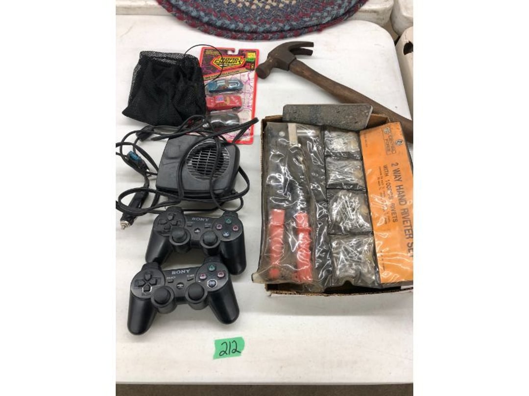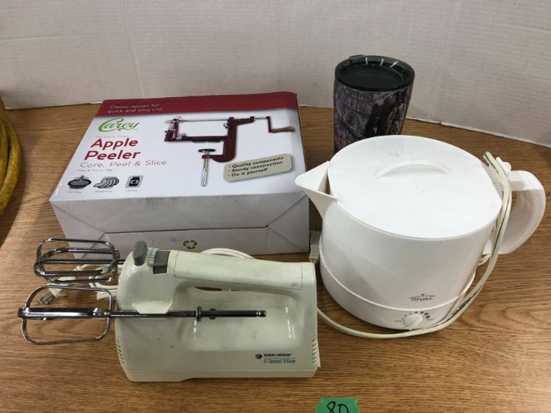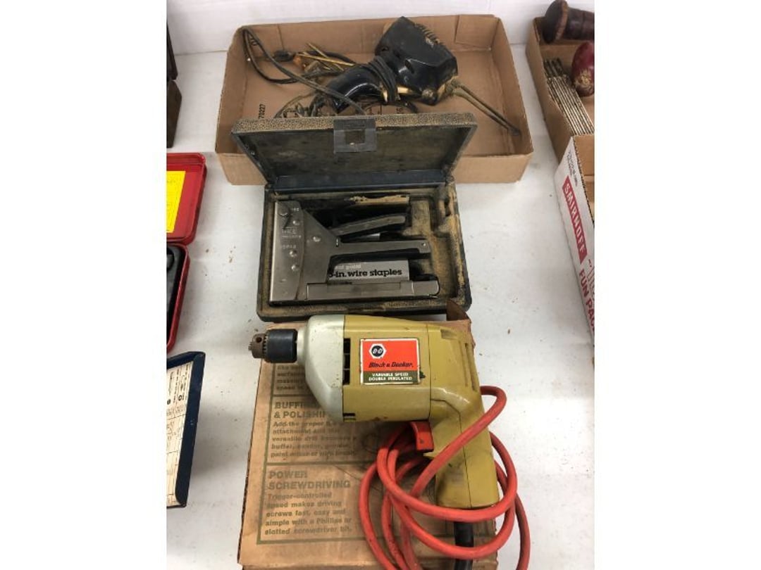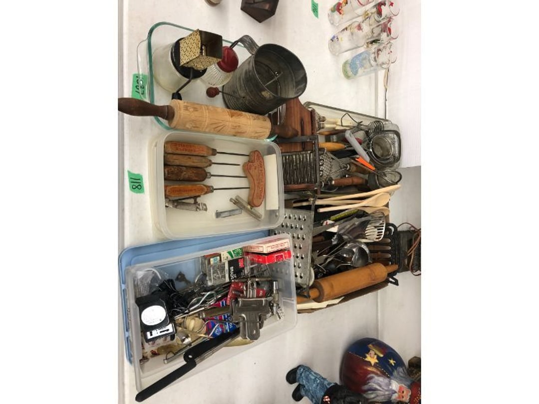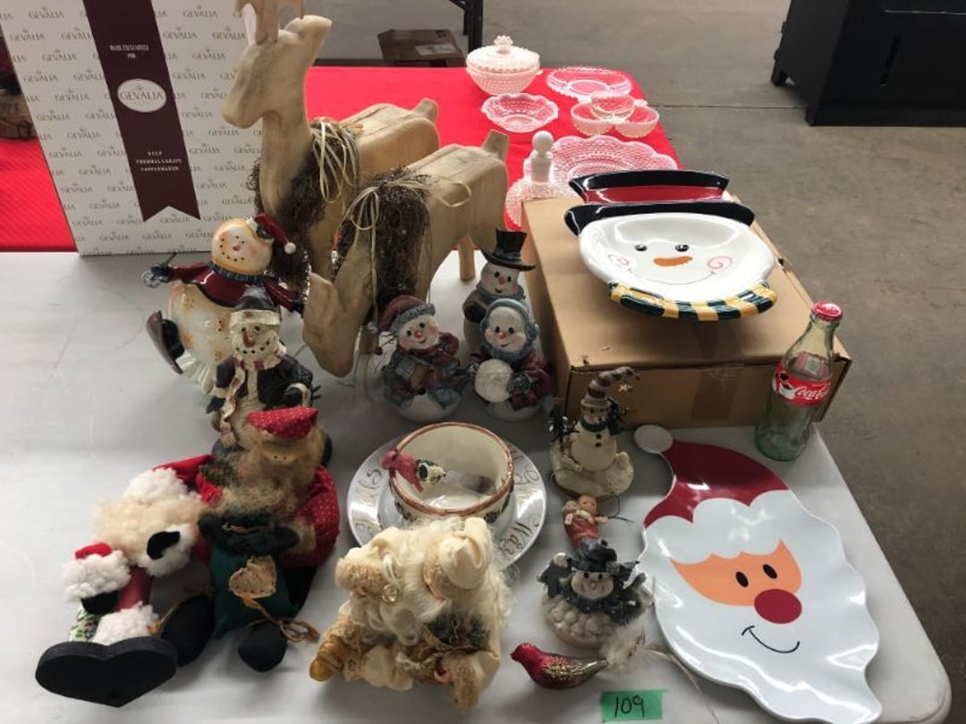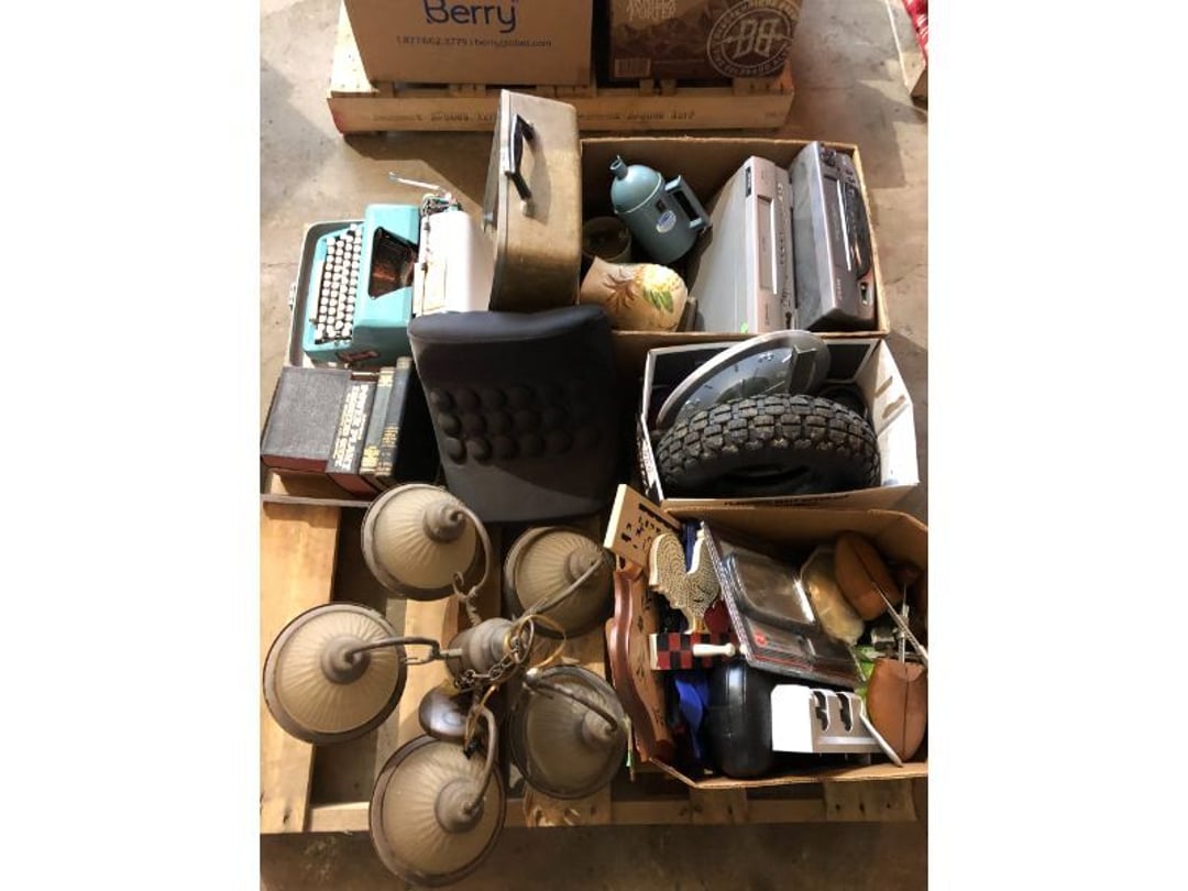 6' Ladder - Extention Ladder - Black & Decker Trimmer w/battery, Broadcast seeder - Small Fridigaire Freezer - 30 Gallon Fuel Tank - Porter Cable grinder - KD Ergonmiuc Office Chair - Porter Cable 3 Nailer/Compressor Combo Kit - Porter Cable Pin Nailer - Kobalt Tools - Larin Jack Stands & Floor Jack - Hydraulic Floor Jack - 48" Level & Misc. Tools - Golf Clubs - 2 piece Gray Luggage - Canning Jars - Wood Tool Carrier - Trimon Glassware - Clocks - Wicker baby buggy - Lamps - Vintage Stereoscope with cards- Gone With the Wind lamps - 38" Sword - 25" Sword - Pink Depression - VintageToys - Pictures & Figureines - Decatur Cast Iron Roosters - Wooden Decorators - Wooden Decorator Cabinets - Pyrex & Glassware - Ceramic Christmas Tree - Vintage Hamilton Wooden Show Box - Lady Bug Houses - Metal Eagles - Vintage Postcards - Mantle Clock - Vintage Quilt and Rag Rug - Sharp CD player w/ speakers - 3 McCoy pots - 2 Pioneer Speakers - Allstate Electric Train - Small Wooden Cedar Chest - Metal Ammo Box- Red Rock Cola Wooden Box - Chicago Electric Plasma Cutter - .925 Sterling Silver Belt Buckle - KLH Speakers & Bose Speakers, Misc. Wiring - Coffing Hoist - Craftsman Drill Press - 2 Wooden Hudson Pulleys - Craftsman Trolley Floor Jack - DeWalt Circular Saw w/ 2 batteries & charger - 2 Stage Deep Vaccumn Pump - Cement Angel - Wood Box w/ deer motif - Percision Compound Bow - Steer Skull - Cast Iron Pig Bank - Craftsman Greese Gun - 2 Wooden Ducks - Bose Wave Radio - 2 Metal Lockboxes w/ level - Mueller Brass Company Wood Box - Misc. Kitchenware - Costume Jewlery, plate, & Event Tokens - Vintage Lamp Pieces - Kitchen Appliances - Rain Train - Vintage Copper Mailbox - Heavy Duty Extension Cord w/snake - Hull Vase - Metal Pony Express Spitoon - Misc. Crocs - Tavern scene Jar, Glass Cottage Cheese Container, & Equity Milk Bottle - Large Glass Jar - 2 qt. Croc & Small Covered dish - Boyd's Bears & TY Beanie Babies - Garmin GPS, clocks, & RCA VHS Player - 29 Pieces, Greenware Glass Dishes - 32 Piece Carico Dishes - Horns & Fish - Brass Stand & Metal Lamp - Vintage & New Decorators - Smoking Stand and Pipes - Figurines - Hob Nail Candlewick dishes - New Gevalia Coffee Maker w/ filters - Lantern & Oil Lamps - Vintage Glass & Perfume Bottle - Glassware - Canning Supplies - Vintage Juice Glasses - Vintage Miscellanious - Kitchen Utensils - Christmas Santas - Misc. Glass - 22 Piece Zylstra Rose Dishes - Fire King Dinnerware Set w/ 24 piece Glass Glasses - Misc. Craft Supplies - Vintage Metal Pieces w/ Decatur Rooster - Christmas Santas - Snowmen & Vintage Elves - Brass Decorators - Vintage Glass Decorators - Rooster Collection - Glass Frogs w/ Glass Decorators - Pipe Wrenches - Craftsman Vice - Black & Decker Tools - Misc. Tools & Power Tools - DeWalt Drill - Battery Charger & Miter Box - Polisher - Princess Diana & Prince Charles Collector Plate - Knowles Collector Plates - Black & Decker Drill & Sander - Black & Decker 3/8 Drill and Solderig Tools - Mini Shop-Vac - Nautilus Battery Charger - Campbell Hausfeld Air Compressor - Bissell Spotbot Pet Carpet Cleaner - Pipe Wrench, Hammer, & Miter Box - CTS Speakers and misc. wiring - Panasonic 5 disc Home Theater Sound System - DVD/VHS Player with Digital Picture Frame - Motorcycle Helmet & Gloves - Oster Dehydrator - Garden Statues - Polar Wind Fan - 2 Sm. Polar Wind Fans - New Dimplex Portable Electric Heater - Ivory Dishes - Kitchenware - Vintage Rocking Chair - Vintage Baby Doll Cradle - Imperial Glass Candlewich Bowl - Silver Jewlery - Vintage Popyee Cookie Jar - Stainglass Cat Lamp & Lighthouse Lamp - 3 Coleman Lanterns- Antique Brass Hanging Light Parts - Vintage Brass Hanging Globe Lights - CO2 Tank w/Guages - Hay Harpoon - 5.30x12 Used Tires, 4 lug - InFocus Projector - Sony Game Controllers, Toy Cars, Misc. Tools - Automatic Door Closer - Paintball Gun w/ Halo Hoppers - Scroll Saw blades & Shelf - 93" Round Rug - 70x48" Green & White Rug - 94x72" Burgandy Stripe Rug - 110x72" Oval Rug w/36x25" oval rug - 131x96" Oval Rug w/2 - 36x25" Oval Rugs - 12' Wooden Tree Trimmer - Boy Scout Camping Gear - Comfort Zone Ceiling Mounted Quartz Heater - Kennehy Tool Box w/tools - North West Teritory Multi-FUnction Lantern - Drill Bits & Steering Wheel Lock - Lazy Susan - Ready Heater - MAC Tool Rolling Seat - Lynx Levelers - Rachet Straps - Nelson Rain Train - DeWalt 10" Table Saw w/ portable saw - DeWalt 12" Double Bevel Sliding Compound Miter Saw - Cobra Drain Snake - Coleman 18v. Power Tool Set - Paslode Cordless Framing Nail Gun - Milwaukee Sawzall - DeWalt 18v. Circular Saw - DeWalt Pneumatic 2" Brad Nailer - Bosch Drill - 3/4" Socket Set - Come-a-long & Pulley - Welder Extention Cord - 3/8 & 1/2" Socket Set - Hitachi Framing Nailer - Senco Roofing Nailer - Angle Grinder, Cutting Wheels, & DeWalt Drill - 2 Welding Helmets - Heavy Extension Cord and Tape - Ideal Conduit Bender - Skil Drill & bit set - Craftsman Drill, Flashlight & bits - Misc. Decorators & Lamp - Lantern - Lodge Cast Iron - Vintage Toys - Marbles & Croquet - Toro 12v. Cordless Trimmer - Handler Wall Rack, Clock, Belts - A/V cables & misc. - 8 doz. glasses - 3 Yuengling Lager buckets - Oster Electric Roaster - 2 Collectable Racing cars - 3 Brass Lamps - 5 Clocks - Wagner Power Painter, safety glasses, yardsticks - DeWalt Rotary Hammer & Shcath Fault & Cable Locator - New Samsung Gas Dryer - New Kenmore Cooktop Range - New Kenmore Elite Gas Range - New Kenmore Microwave & oven combo - New in box Microwave - Hood Combination - New in box Microwave - Hood Combination - Smith Brothers Couch - Rolling One Drop Leaf Stand - Bookshelf - Corner Entertainment Cupboard - Vanity - Telephone Stand & Entertainment Stand - Patio Set - Table & 4 chairs - 5 peice Wicker Patio Set - Headboard, Footstoot & Sidetable - Intex Metal Frame Pool - Hose Reel & Patio box w/pillows & cushions - Metal Decorators - Round Mirror & Picture - Entertainment Center - Cedar Chest - Health-O-Meter Scale - Metal Cabinet w/2 shelves - Ed