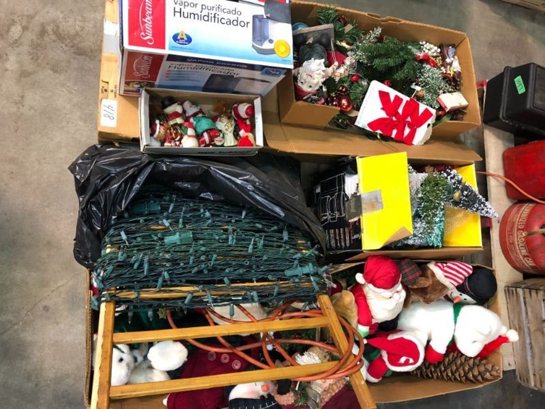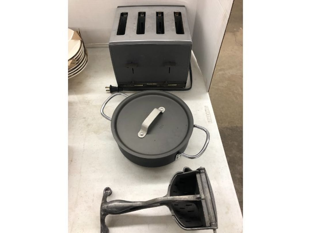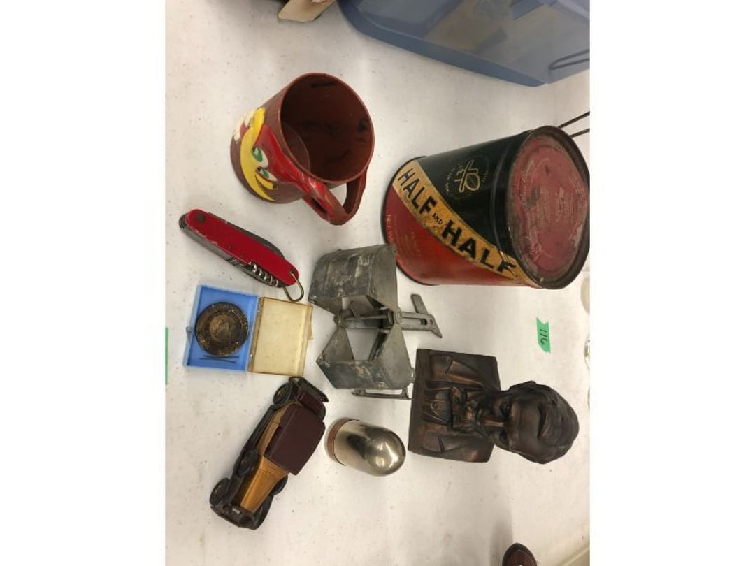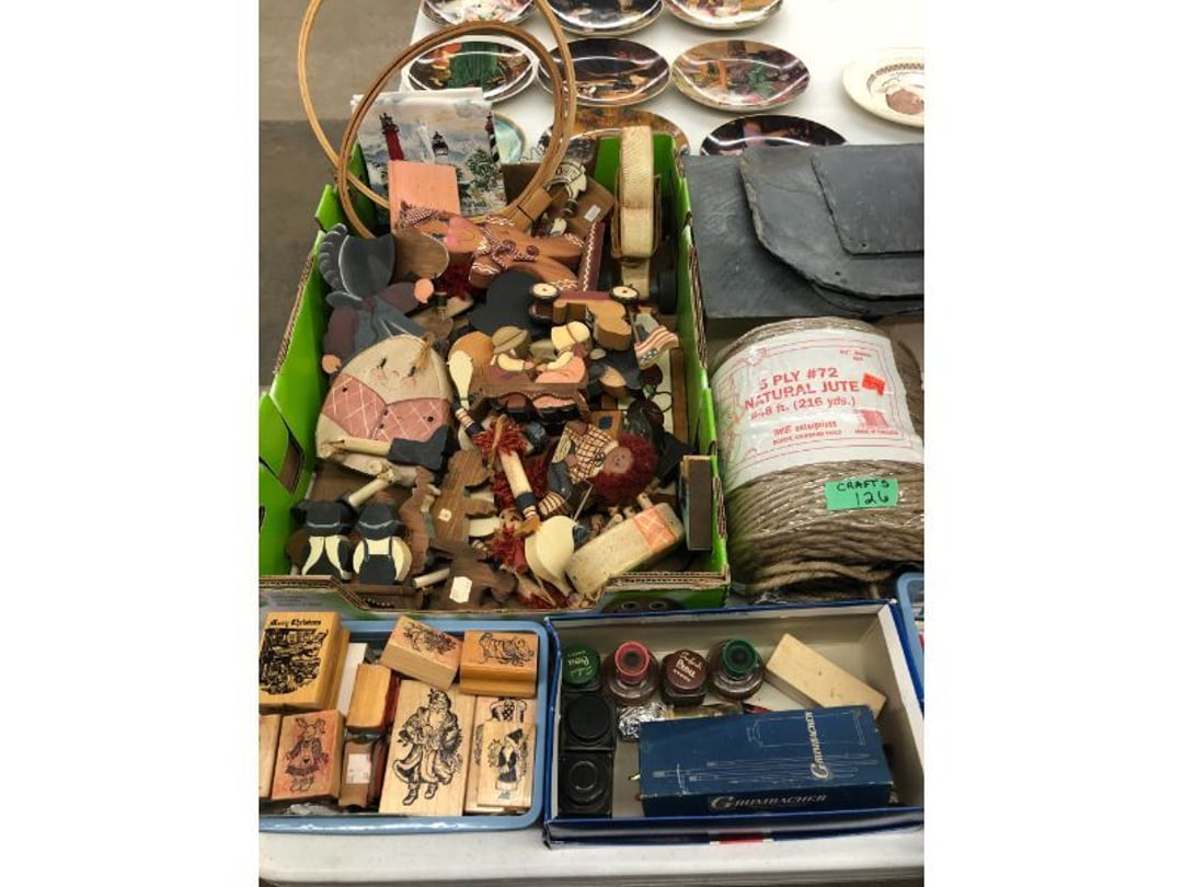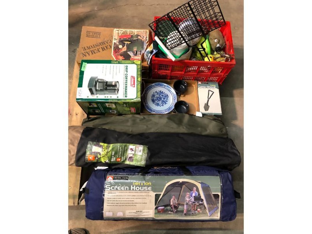 6' Ladder - Extention Ladder - Black & Decker Trimmer w/battery, Broadcast seeder - Small Fridigaire Freezer - 30 Gallon Fuel Tank - Porter Cable grinder - KD Ergonmiuc Office Chair - Porter Cable 3 Nailer/Compressor Combo Kit - Porter Cable Pin Nailer - Kobalt Tools - Larin Jack Stands & Floor Jack - Hydraulic Floor Jack - 48" Level & Misc. Tools - Golf Clubs - 2 piece Gray Luggage - Canning Jars - Wood Tool Carrier - Trimon Glassware - Clocks - Wicker baby buggy - Lamps - Vintage Stereoscope with cards- Gone With the Wind lamps - 38" Sword - 25" Sword - Pink Depression - VintageToys - Pictures & Figureines - Decatur Cast Iron Roosters - Wooden Decorators - Wooden Decorator Cabinets - Pyrex & Glassware - Ceramic Christmas Tree - Vintage Hamilton Wooden Show Box - Lady Bug Houses - Metal Eagles - Vintage Postcards - Mantle Clock - Vintage Quilt and Rag Rug - Sharp CD player w/ speakers - 3 McCoy pots - 2 Pioneer Speakers - Allstate Electric Train - Small Wooden Cedar Chest - Metal Ammo Box- Red Rock Cola Wooden Box - Chicago Electric Plasma Cutter - .925 Sterling Silver Belt Buckle - KLH Speakers & Bose Speakers, Misc. Wiring - Coffing Hoist - Craftsman Drill Press - 2 Wooden Hudson Pulleys - Craftsman Trolley Floor Jack - DeWalt Circular Saw w/ 2 batteries & charger - 2 Stage Deep Vaccumn Pump - Cement Angel - Wood Box w/ deer motif - Percision Compound Bow - Steer Skull - Cast Iron Pig Bank - Craftsman Greese Gun - 2 Wooden Ducks - Bose Wave Radio - 2 Metal Lockboxes w/ level - Mueller Brass Company Wood Box - Misc. Kitchenware - Costume Jewlery, plate, & Event Tokens - Vintage Lamp Pieces - Kitchen Appliances - Rain Train - Vintage Copper Mailbox - Heavy Duty Extension Cord w/snake - Hull Vase - Metal Pony Express Spitoon - Misc. Crocs - Tavern scene Jar, Glass Cottage Cheese Container, & Equity Milk Bottle - Large Glass Jar - 2 qt. Croc & Small Covered dish - Boyd's Bears & TY Beanie Babies - Garmin GPS, clocks, & RCA VHS Player - 29 Pieces, Greenware Glass Dishes - 32 Piece Carico Dishes - Horns & Fish - Brass Stand & Metal Lamp - Vintage & New Decorators - Smoking Stand and Pipes - Figurines - Hob Nail Candlewick dishes - New Gevalia Coffee Maker w/ filters - Lantern & Oil Lamps - Vintage Glass & Perfume Bottle - Glassware - Canning Supplies - Vintage Juice Glasses - Vintage Miscellanious - Kitchen Utensils - Christmas Santas - Misc. Glass - 22 Piece Zylstra Rose Dishes - Fire King Dinnerware Set w/ 24 piece Glass Glasses - Misc. Craft Supplies - Vintage Metal Pieces w/ Decatur Rooster - Christmas Santas - Snowmen & Vintage Elves - Brass Decorators - Vintage Glass Decorators - Rooster Collection - Glass Frogs w/ Glass Decorators - Pipe Wrenches - Craftsman Vice - Black & Decker Tools - Misc. Tools & Power Tools - DeWalt Drill - Battery Charger & Miter Box - Polisher - Princess Diana & Prince Charles Collector Plate - Knowles Collector Plates - Black & Decker Drill & Sander - Black & Decker 3/8 Drill and Solderig Tools - Mini Shop-Vac - Nautilus Battery Charger - Campbell Hausfeld Air Compressor - Bissell Spotbot Pet Carpet Cleaner - Pipe Wrench, Hammer, & Miter Box - CTS Speakers and misc. wiring - Panasonic 5 disc Home Theater Sound System - DVD/VHS Player with Digital Picture Frame - Motorcycle Helmet & Gloves - Oster Dehydrator - Garden Statues - Polar Wind Fan - 2 Sm. Polar Wind Fans - New Dimplex Portable Electric Heater - Ivory Dishes - Kitchenware - Vintage Rocking Chair - Vintage Baby Doll Cradle - Imperial Glass Candlewich Bowl - Silver Jewlery - Vintage Popyee Cookie Jar - Stainglass Cat Lamp & Lighthouse Lamp - 3 Coleman Lanterns- Antique Brass Hanging Light Parts - Vintage Brass Hanging Globe Lights - CO2 Tank w/Guages - Hay Harpoon - 5.30x12 Used Tires, 4 lug - InFocus Projector - Sony Game Controllers, Toy Cars, Misc. Tools - Automatic Door Closer - Paintball Gun w/ Halo Hoppers - Scroll Saw blades & Shelf - 93" Round Rug - 70x48" Green & White Rug - 94x72" Burgandy Stripe Rug - 110x72" Oval Rug w/36x25" oval rug - 131x96" Oval Rug w/2 - 36x25" Oval Rugs - 12' Wooden Tree Trimmer - Boy Scout Camping Gear - Comfort Zone Ceiling Mounted Quartz Heater - Kennehy Tool Box w/tools - North West Teritory Multi-FUnction Lantern - Drill Bits & Steering Wheel Lock - Lazy Susan - Ready Heater - MAC Tool Rolling Seat - Lynx Levelers - Rachet Straps - Nelson Rain Train - DeWalt 10" Table Saw w/ portable saw - DeWalt 12" Double Bevel Sliding Compound Miter Saw - Cobra Drain Snake - Coleman 18v. Power Tool Set - Paslode Cordless Framing Nail Gun - Milwaukee Sawzall - DeWalt 18v. Circular Saw - DeWalt Pneumatic 2" Brad Nailer - Bosch Drill - 3/4" Socket Set - Come-a-long & Pulley - Welder Extention Cord - 3/8 & 1/2" Socket Set - Hitachi Framing Nailer - Senco Roofing Nailer - Angle Grinder, Cutting Wheels, & DeWalt Drill - 2 Welding Helmets - Heavy Extension Cord and Tape - Ideal Conduit Bender - Skil Drill & bit set - Craftsman Drill, Flashlight & bits - Misc. Decorators & Lamp - Lantern - Lodge Cast Iron - Vintage Toys - Marbles & Croquet - Toro 12v. Cordless Trimmer - Handler Wall Rack, Clock, Belts - A/V cables & misc. - 8 doz. glasses - 3 Yuengling Lager buckets - Oster Electric Roaster - 2 Collectable Racing cars - 3 Brass Lamps - 5 Clocks - Wagner Power Painter, safety glasses, yardsticks - DeWalt Rotary Hammer & Shcath Fault & Cable Locator - New Samsung Gas Dryer - New Kenmore Cooktop Range - New Kenmore Elite Gas Range - New Kenmore Microwave & oven combo - New in box Microwave - Hood Combination - New in box Microwave - Hood Combination - Smith Brothers Couch - Rolling One Drop Leaf Stand - Bookshelf - Corner Entertainment Cupboard - Vanity - Telephone Stand & Entertainment Stand - Patio Set - Table & 4 chairs - 5 peice Wicker Patio Set - Headboard, Footstoot & Sidetable - Intex Metal Frame Pool - Hose Reel & Patio box w/pillows & cushions - Metal Decorators - Round Mirror & Picture - Entertainment Center - Cedar Chest - Health-O-Meter Scale - Metal Cabinet w/2 shelves - Ed