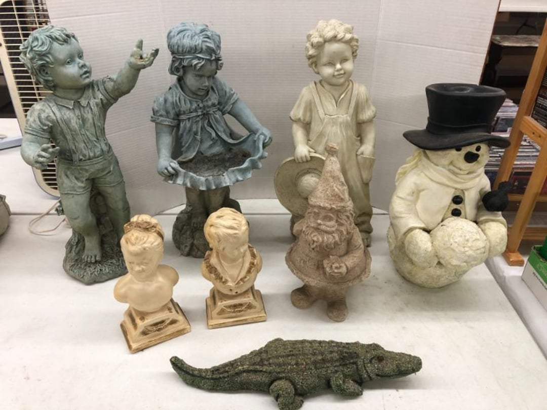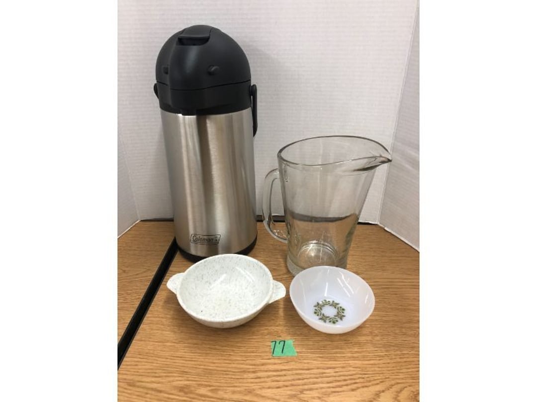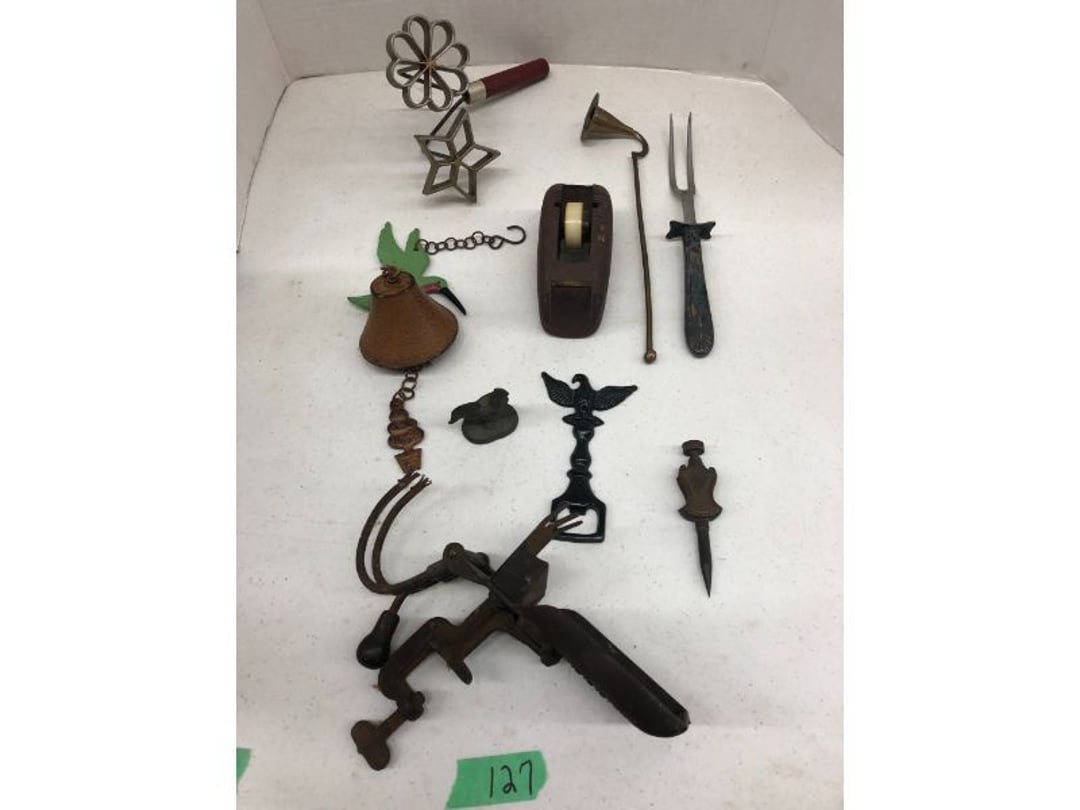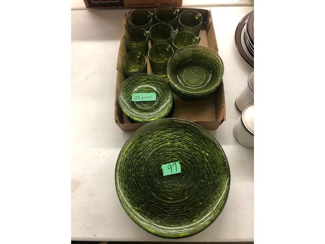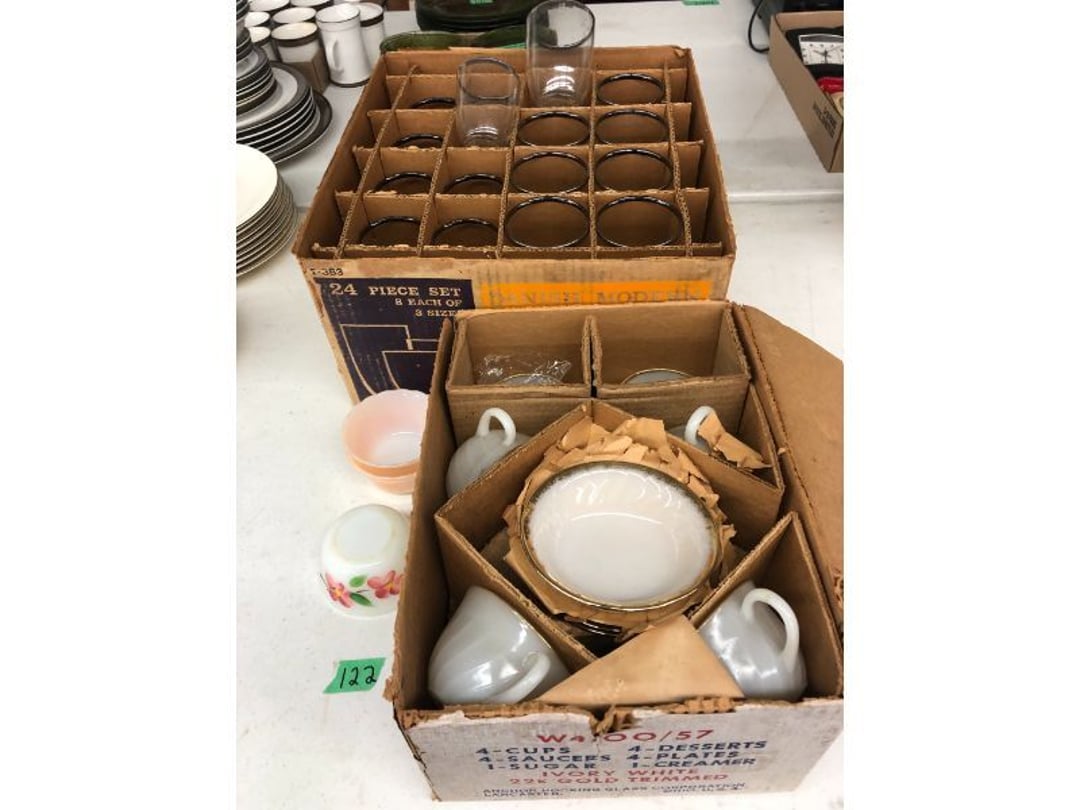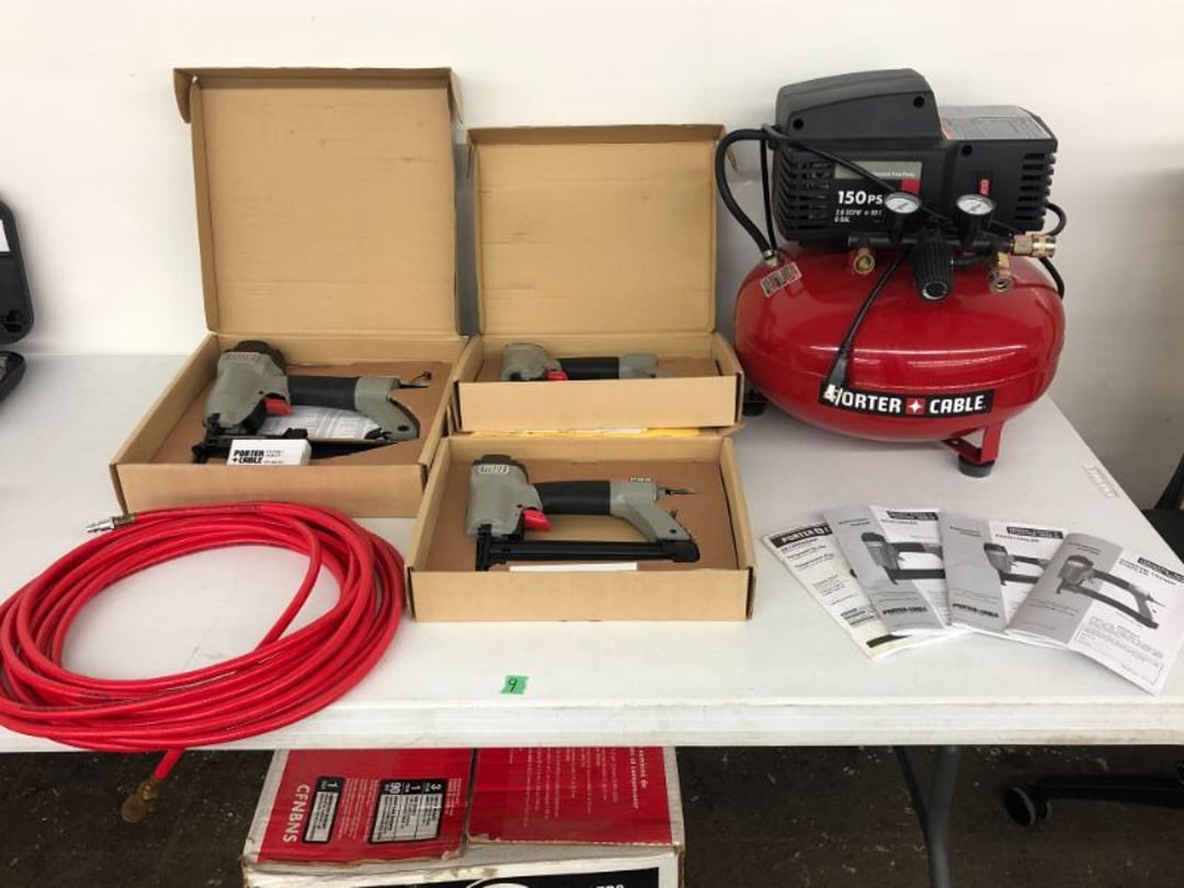 6' Ladder - Extention Ladder - Black & Decker Trimmer w/battery, Broadcast seeder - Small Fridigaire Freezer - 30 Gallon Fuel Tank - Porter Cable grinder - KD Ergonmiuc Office Chair - Porter Cable 3 Nailer/Compressor Combo Kit - Porter Cable Pin Nailer - Kobalt Tools - Larin Jack Stands & Floor Jack - Hydraulic Floor Jack - 48" Level & Misc. Tools - Golf Clubs - 2 piece Gray Luggage - Canning Jars - Wood Tool Carrier - Trimon Glassware - Clocks - Wicker baby buggy - Lamps - Vintage Stereoscope with cards- Gone With the Wind lamps - 38" Sword - 25" Sword - Pink Depression - VintageToys - Pictures & Figureines - Decatur Cast Iron Roosters - Wooden Decorators - Wooden Decorator Cabinets - Pyrex & Glassware - Ceramic Christmas Tree - Vintage Hamilton Wooden Show Box - Lady Bug Houses - Metal Eagles - Vintage Postcards - Mantle Clock - Vintage Quilt and Rag Rug - Sharp CD player w/ speakers - 3 McCoy pots - 2 Pioneer Speakers - Allstate Electric Train - Small Wooden Cedar Chest - Metal Ammo Box- Red Rock Cola Wooden Box - Chicago Electric Plasma Cutter - .925 Sterling Silver Belt Buckle - KLH Speakers & Bose Speakers, Misc. Wiring - Coffing Hoist - Craftsman Drill Press - 2 Wooden Hudson Pulleys - Craftsman Trolley Floor Jack - DeWalt Circular Saw w/ 2 batteries & charger - 2 Stage Deep Vaccumn Pump - Cement Angel - Wood Box w/ deer motif - Percision Compound Bow - Steer Skull - Cast Iron Pig Bank - Craftsman Greese Gun - 2 Wooden Ducks - Bose Wave Radio - 2 Metal Lockboxes w/ level - Mueller Brass Company Wood Box - Misc. Kitchenware - Costume Jewlery, plate, & Event Tokens - Vintage Lamp Pieces - Kitchen Appliances - Rain Train - Vintage Copper Mailbox - Heavy Duty Extension Cord w/snake - Hull Vase - Metal Pony Express Spitoon - Misc. Crocs - Tavern scene Jar, Glass Cottage Cheese Container, & Equity Milk Bottle - Large Glass Jar - 2 qt. Croc & Small Covered dish - Boyd's Bears & TY Beanie Babies - Garmin GPS, clocks, & RCA VHS Player - 29 Pieces, Greenware Glass Dishes - 32 Piece Carico Dishes - Horns & Fish - Brass Stand & Metal Lamp - Vintage & New Decorators - Smoking Stand and Pipes - Figurines - Hob Nail Candlewick dishes - New Gevalia Coffee Maker w/ filters - Lantern & Oil Lamps - Vintage Glass & Perfume Bottle - Glassware - Canning Supplies - Vintage Juice Glasses - Vintage Miscellanious - Kitchen Utensils - Christmas Santas - Misc. Glass - 22 Piece Zylstra Rose Dishes - Fire King Dinnerware Set w/ 24 piece Glass Glasses - Misc. Craft Supplies - Vintage Metal Pieces w/ Decatur Rooster - Christmas Santas - Snowmen & Vintage Elves - Brass Decorators - Vintage Glass Decorators - Rooster Collection - Glass Frogs w/ Glass Decorators - Pipe Wrenches - Craftsman Vice - Black & Decker Tools - Misc. Tools & Power Tools - DeWalt Drill - Battery Charger & Miter Box - Polisher - Princess Diana & Prince Charles Collector Plate - Knowles Collector Plates - Black & Decker Drill & Sander - Black & Decker 3/8 Drill and Solderig Tools - Mini Shop-Vac - Nautilus Battery Charger - Campbell Hausfeld Air Compressor - Bissell Spotbot Pet Carpet Cleaner - Pipe Wrench, Hammer, & Miter Box - CTS Speakers and misc. wiring - Panasonic 5 disc Home Theater Sound System - DVD/VHS Player with Digital Picture Frame - Motorcycle Helmet & Gloves - Oster Dehydrator - Garden Statues - Polar Wind Fan - 2 Sm. Polar Wind Fans - New Dimplex Portable Electric Heater - Ivory Dishes - Kitchenware - Vintage Rocking Chair - Vintage Baby Doll Cradle - Imperial Glass Candlewich Bowl - Silver Jewlery - Vintage Popyee Cookie Jar - Stainglass Cat Lamp & Lighthouse Lamp - 3 Coleman Lanterns- Antique Brass Hanging Light Parts - Vintage Brass Hanging Globe Lights - CO2 Tank w/Guages - Hay Harpoon - 5.30x12 Used Tires, 4 lug - InFocus Projector - Sony Game Controllers, Toy Cars, Misc. Tools - Automatic Door Closer - Paintball Gun w/ Halo Hoppers - Scroll Saw blades & Shelf - 93" Round Rug - 70x48" Green & White Rug - 94x72" Burgandy Stripe Rug - 110x72" Oval Rug w/36x25" oval rug - 131x96" Oval Rug w/2 - 36x25" Oval Rugs - 12' Wooden Tree Trimmer - Boy Scout Camping Gear - Comfort Zone Ceiling Mounted Quartz Heater - Kennehy Tool Box w/tools - North West Teritory Multi-FUnction Lantern - Drill Bits & Steering Wheel Lock - Lazy Susan - Ready Heater - MAC Tool Rolling Seat - Lynx Levelers - Rachet Straps - Nelson Rain Train - DeWalt 10" Table Saw w/ portable saw - DeWalt 12" Double Bevel Sliding Compound Miter Saw - Cobra Drain Snake - Coleman 18v. Power Tool Set - Paslode Cordless Framing Nail Gun - Milwaukee Sawzall - DeWalt 18v. Circular Saw - DeWalt Pneumatic 2" Brad Nailer - Bosch Drill - 3/4" Socket Set - Come-a-long & Pulley - Welder Extention Cord - 3/8 & 1/2" Socket Set - Hitachi Framing Nailer - Senco Roofing Nailer - Angle Grinder, Cutting Wheels, & DeWalt Drill - 2 Welding Helmets - Heavy Extension Cord and Tape - Ideal Conduit Bender - Skil Drill & bit set - Craftsman Drill, Flashlight & bits - Misc. Decorators & Lamp - Lantern - Lodge Cast Iron - Vintage Toys - Marbles & Croquet - Toro 12v. Cordless Trimmer - Handler Wall Rack, Clock, Belts - A/V cables & misc. - 8 doz. glasses - 3 Yuengling Lager buckets - Oster Electric Roaster - 2 Collectable Racing cars - 3 Brass Lamps - 5 Clocks - Wagner Power Painter, safety glasses, yardsticks - DeWalt Rotary Hammer & Shcath Fault & Cable Locator - New Samsung Gas Dryer - New Kenmore Cooktop Range - New Kenmore Elite Gas Range - New Kenmore Microwave & oven combo - New in box Microwave - Hood Combination - New in box Microwave - Hood Combination - Smith Brothers Couch - Rolling One Drop Leaf Stand - Bookshelf - Corner Entertainment Cupboard - Vanity - Telephone Stand & Entertainment Stand - Patio Set - Table & 4 chairs - 5 peice Wicker Patio Set - Headboard, Footstoot & Sidetable - Intex Metal Frame Pool - Hose Reel & Patio box w/pillows & cushions - Metal Decorators - Round Mirror & Picture - Entertainment Center - Cedar Chest - Health-O-Meter Scale - Metal Cabinet w/2 shelves - Ed