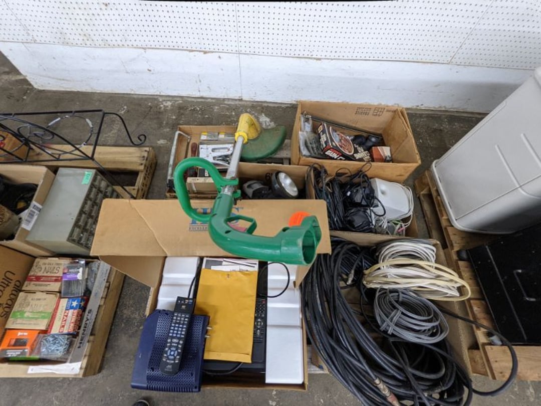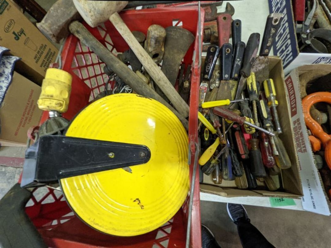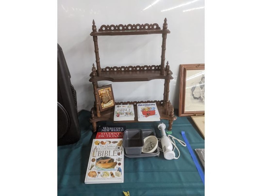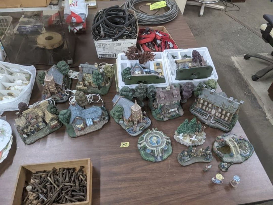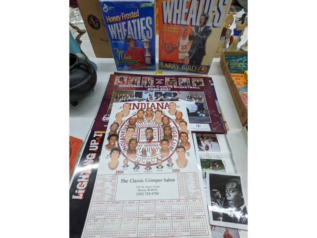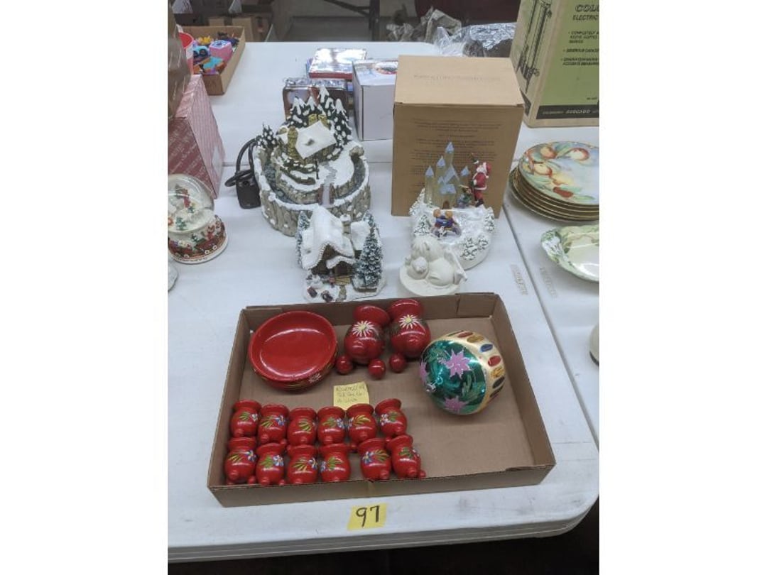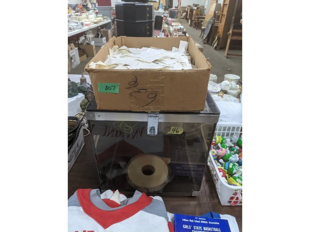 Gear pullers- Horse tie off- 2 Class rings - IU & Heritage Highschool- Pepsi Thermometer- Kissing Angels, Mickey Mouse plate, 2 Baldwin candlesticks- Oster Microwave- Ladies purses, Sm. Rival Crockpot- Hoover PortaPower Vacumn- Yamaha AV Reciever- Sony 3 way Speaker System- HP Desk Jet 1512 -Print, Scan, Copy- Bed Comforter & Signs- LG Blu-Ray Disc Player, Psyc CD Walkman- Paintbrushes, Tool balances, Misc. Tools- Air grinder stones, air tools, & Craftsman Table Saw Molding Head Insert- Vintage Mailbox & GE light switch- Hunting Gear- Tackle box, fishing gear & décor- Sidewinder Sewer Hose support- Electric Craftsman stapler, misc. tools, & organizer boxes- Haier 24" Mini Fridge- Wagner Power Painter- Little Tikes Plastic Child's slide 36"- Little Tikes Basketball Hoop- 3 pieces Leisure Luggage- 19"x24" Pet Cage- Coleman Camping Shelter & adjustable grill- 2 Northwest Territory Camping Chairs- Wolf Mattress & Boxspring - double - Handcrafted Live Edge Table/stool w/ Epoxy inlay- Handcrafted Live Edge Table/stool w/ Epoxy inlay- Handcrafted Wood w/Epoxy inlay- Handcrafted Wooden small table- Lefton China - Lily of the Valley- West Morlan Paneled Grape & Depression divided dish- 70+ pcs. Fire King Swirl dishes'- 40 pcs. Columbia Depression glass- Vernon Kilns Black Eyed Susan- 15 Tiffin glass- Royal China - Fair Oaks, serves 4- Vintage Tupperware- Aircraft wire rope & Ice tongs- Rubber Tarp straps - Indian University Memorabilia- Drawing/Ballot Box w/ tickets- M&M sm. Figurines- Kerosene Lamps w/ cast iron wall brackets- 5 pcs. Milk glass, Hersey kisses candy dish, & Apollo 11 glass - Heisey Glass - cream & sugar, & mint trays- Dunlop tire ashtray & 2 brown glass ashtrays- 2 Imperial blue glass plates- Large Imperial blue glass bowl- 3 small Imperial glass bowls- Carnival glass candy dish- Imperial Slag glass sugar bowl- 3 speakers- Akai Stero reciever - Sony Audio/Video Control Center- Pabst Blue Ribbon mirror- Jeff Gordon & Tiger Woods Pictures- Vintage Pictures- Vintage Shelf, children books, & kitchenware- Vintage Lampshade & 4 pictures- 7 pcs china bowls- Large painted glass sun catcher - 36" & sm. Picture- 3 Lamps- Depression, Corelle, & glassware- Vintage Printing Press letter block shelf- 4 Misc. Pictures- Musical Bell Suymphonium – Trombone- Up Easy lifting cushion- Lionel Trains windup Railroad Handcar- 4 Four Seasons Music box Horses & Wooden music box trolley- 3 Pocket Watches, Brighton clock, pewter bowl, pocket knives, misc.- Haviland china - serves 12- Vintage wooden box of nails- Hawthorne Thomas KinKade Village- 8 pcs. Fire King- Hall China Tavern Scene- Cookbooks- 10 pcs. Fostoria Stemware- Corelle - serves 8- Vernonware Homespun- Merlot Poppy Trail Rooster dishes w/canisters- Corelle Callawa Ivy w/ coffee mugs & glasses- Corelle cups - misc. - Pyrex bowls, casserole, Corningware bakeware- Pink Fenton- 6 red glasses & compote - Real English figurines, Goebel ornaments, & Vintage Children's book- Dishes & small knife set- Music boxes- Snow globes, & Avon perfume bottles- Rose mailing Red candle holders, misc. Christmas- Haviland china- Postcards, vintage National park booklets, vintage misc.- Vintage Erector set & misc. games- Cameras & accessories -Musical Ferris Wheel- Lighted pictures & misc. pictures- Bed is Humidifier filters, GE clock radio, Tierra glass- Yard ornaments & wall pocket- Records Albumns- DVDs - 60 CDs- Lamps- 3 Gray plastic stools- 3 White plastic stools- Vintage Scale- Venturer under cabinet DVD player- Bradford Exchange Russian Legend Set plates & 2 misc.- Electric Colormode Percolater & basket set- View Master w/ discs & misc. children's toys- Misc. Children’s Toys- 3 Metal trucks & wooden semi- Stetson & Resistol Cowboy Hats w/case- Cast Iron Ship Doorstop- 4 Fisher Price Buildings w/accessories - 2 Jack in the Pulpit vases & misc. glass- Misc. china- Florentine China - serves 12- 5 pcs. Fire King bakeware & Pyrex casserole + The Paden City Pottery Co. - serves 12- The Paden City Pottery Co. - serves 12- Temp-tations ovenware by Tara- 6 totes- RCA turntable & Pioneer Stereo Receiver - Record Albums- Mikita Maktec drill w/charger & battery- Air tools- Motorcycle SPH10 Bluetooth Headsets & Intercom + 1 Helmet- Budweiser Clock- Kirkland Professional Quality Pots & Pans- Omega Juicer & Mr. Coffee maker- Kinetic bike trainer - extension cord- Wayne Lawn Pump Utility pump - Wagner Power Roller Plus- 4 Phaltzgraft canisters & 3 glass bowls- Whirlpool over the stove microwave- Vintage Matchbooks, cigar boxes & tote bag- Kitchen appliances- Magnacox Portable DVD player, samsung phone, misc.- Kitchenware, Osterizer blender, & toastmaster waffle maker- Baseball cards - 1985, 1990, 2000- Blue glass dishes- Books- Hitachi VCR, Memorix Portable Karaoke Machine- Outers Pistol Perch- Angel picture & collage frame- Magic Chef Mini fridge- Vintage pulley & hooks- Vintage pitchers & mugs- Large Wooden Bowl- Linens, aprons, Colts tee shirts, misc.- Silver plated punch bowl & goblets- Rodgers silver plated tea pots & cream & sugar- animal figurines- Sheridan silver plated tea pot, cream & sugar, cups, misc.- Cut glass dishes- Crystal dishes- Silver plated dishes- Longenberger basket, wooden nesting pieces- 9 Precious Moments-Christmas - electric merry-go-round, misc.- Paper cutting board, 2 rag rugs- Lg. Brass deer, stone clock, 3 sm. Benches, Ty bear, etc.- Photography equipment & accessories- Magnavox tuner, amplifier, tape deck, CD player- CDs, tapes, 45s, 1 record album- 3 VHS players & Panasonic satellite receiver - Lloyd's record player, 8 track, AM-FM receiver w/2speakers- Sheller & coon traps- 2 speakers- Hallicrafters World-Wide radio- CBs, Emergency radio, etc.- Vintage Singer Sewing machine- Black & Decker 5" grinder & Olympia vice- Duracraft Bench grinder - Powr-Kraft drill, Black & Decker Jig Saw, misc.- Black & Decker mouse, Craftsman sander, Wen soldering gun, & mitering kit- Stereo Headphones, Prism binoculars, 2 Eliminator - Rockwell sander/polishe