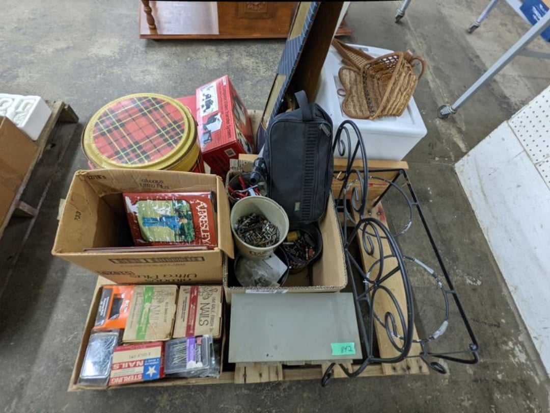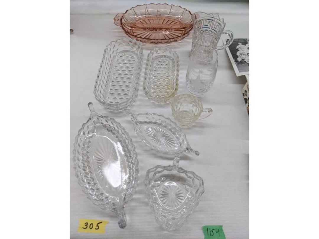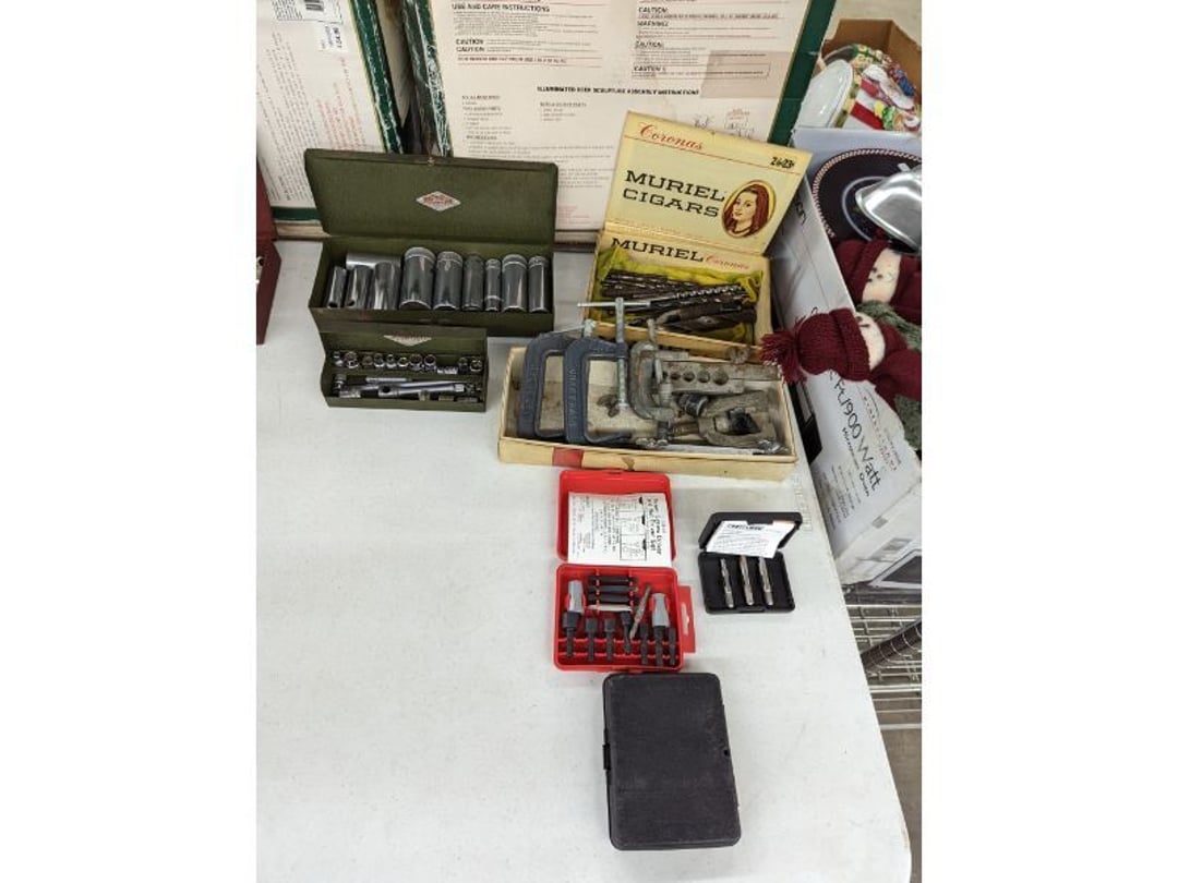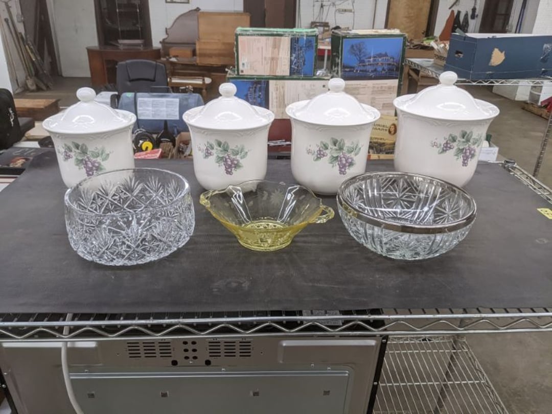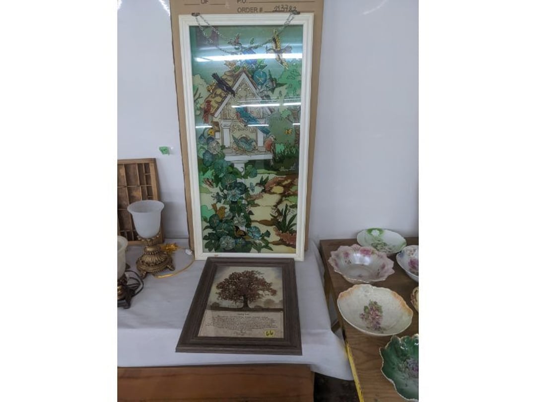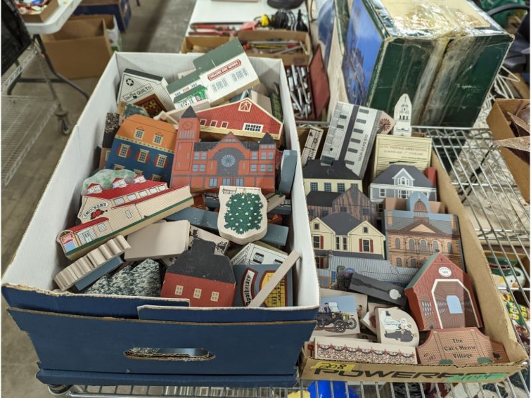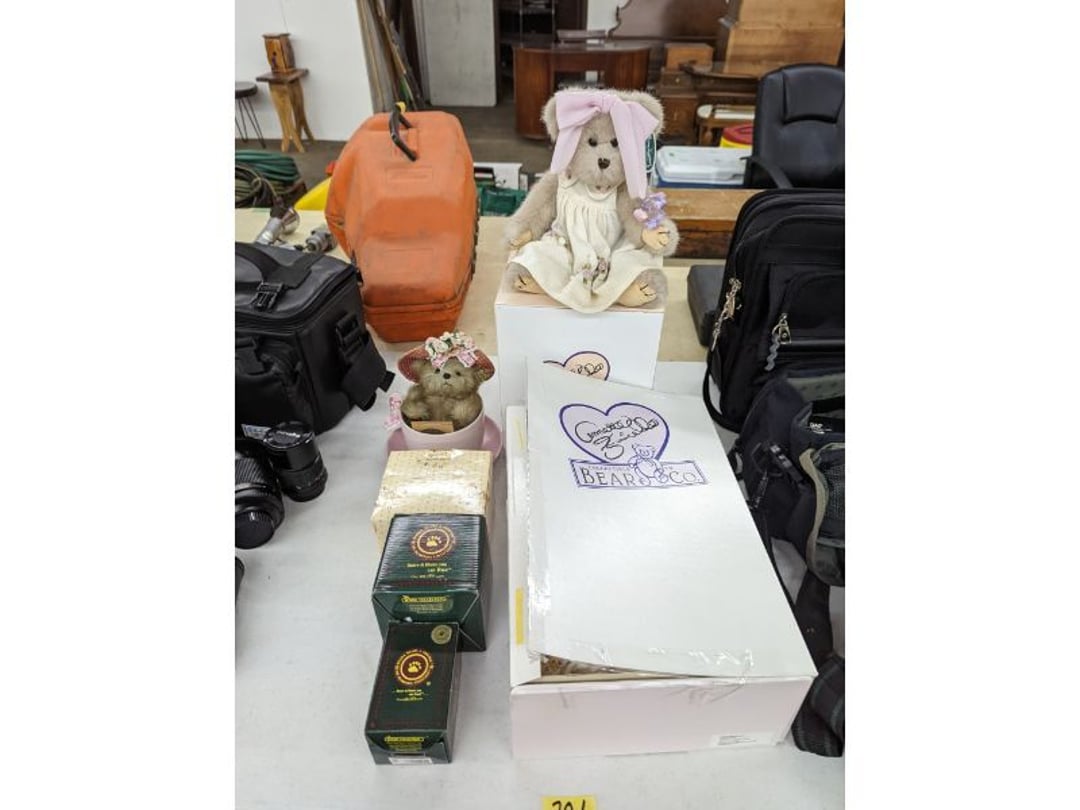 Gear pullers- Horse tie off- 2 Class rings - IU & Heritage Highschool- Pepsi Thermometer- Kissing Angels, Mickey Mouse plate, 2 Baldwin candlesticks- Oster Microwave- Ladies purses, Sm. Rival Crockpot- Hoover PortaPower Vacumn- Yamaha AV Reciever- Sony 3 way Speaker System- HP Desk Jet 1512 -Print, Scan, Copy- Bed Comforter & Signs- LG Blu-Ray Disc Player, Psyc CD Walkman- Paintbrushes, Tool balances, Misc. Tools- Air grinder stones, air tools, & Craftsman Table Saw Molding Head Insert- Vintage Mailbox & GE light switch- Hunting Gear- Tackle box, fishing gear & décor- Sidewinder Sewer Hose support- Electric Craftsman stapler, misc. tools, & organizer boxes- Haier 24" Mini Fridge- Wagner Power Painter- Little Tikes Plastic Child's slide 36"- Little Tikes Basketball Hoop- 3 pieces Leisure Luggage- 19"x24" Pet Cage- Coleman Camping Shelter & adjustable grill- 2 Northwest Territory Camping Chairs- Wolf Mattress & Boxspring - double - Handcrafted Live Edge Table/stool w/ Epoxy inlay- Handcrafted Live Edge Table/stool w/ Epoxy inlay- Handcrafted Wood w/Epoxy inlay- Handcrafted Wooden small table- Lefton China - Lily of the Valley- West Morlan Paneled Grape & Depression divided dish- 70+ pcs. Fire King Swirl dishes'- 40 pcs. Columbia Depression glass- Vernon Kilns Black Eyed Susan- 15 Tiffin glass- Royal China - Fair Oaks, serves 4- Vintage Tupperware- Aircraft wire rope & Ice tongs- Rubber Tarp straps - Indian University Memorabilia- Drawing/Ballot Box w/ tickets- M&M sm. Figurines- Kerosene Lamps w/ cast iron wall brackets- 5 pcs. Milk glass, Hersey kisses candy dish, & Apollo 11 glass - Heisey Glass - cream & sugar, & mint trays- Dunlop tire ashtray & 2 brown glass ashtrays- 2 Imperial blue glass plates- Large Imperial blue glass bowl- 3 small Imperial glass bowls- Carnival glass candy dish- Imperial Slag glass sugar bowl- 3 speakers- Akai Stero reciever - Sony Audio/Video Control Center- Pabst Blue Ribbon mirror- Jeff Gordon & Tiger Woods Pictures- Vintage Pictures- Vintage Shelf, children books, & kitchenware- Vintage Lampshade & 4 pictures- 7 pcs china bowls- Large painted glass sun catcher - 36" & sm. Picture- 3 Lamps- Depression, Corelle, & glassware- Vintage Printing Press letter block shelf- 4 Misc. Pictures- Musical Bell Suymphonium – Trombone- Up Easy lifting cushion- Lionel Trains windup Railroad Handcar- 4 Four Seasons Music box Horses & Wooden music box trolley- 3 Pocket Watches, Brighton clock, pewter bowl, pocket knives, misc.- Haviland china - serves 12- Vintage wooden box of nails- Hawthorne Thomas KinKade Village- 8 pcs. Fire King- Hall China Tavern Scene- Cookbooks- 10 pcs. Fostoria Stemware- Corelle - serves 8- Vernonware Homespun- Merlot Poppy Trail Rooster dishes w/canisters- Corelle Callawa Ivy w/ coffee mugs & glasses- Corelle cups - misc. - Pyrex bowls, casserole, Corningware bakeware- Pink Fenton- 6 red glasses & compote - Real English figurines, Goebel ornaments, & Vintage Children's book- Dishes & small knife set- Music boxes- Snow globes, & Avon perfume bottles- Rose mailing Red candle holders, misc. Christmas- Haviland china- Postcards, vintage National park booklets, vintage misc.- Vintage Erector set & misc. games- Cameras & accessories -Musical Ferris Wheel- Lighted pictures & misc. pictures- Bed is Humidifier filters, GE clock radio, Tierra glass- Yard ornaments & wall pocket- Records Albumns- DVDs - 60 CDs- Lamps- 3 Gray plastic stools- 3 White plastic stools- Vintage Scale- Venturer under cabinet DVD player- Bradford Exchange Russian Legend Set plates & 2 misc.- Electric Colormode Percolater & basket set- View Master w/ discs & misc. children's toys- Misc. Children’s Toys- 3 Metal trucks & wooden semi- Stetson & Resistol Cowboy Hats w/case- Cast Iron Ship Doorstop- 4 Fisher Price Buildings w/accessories - 2 Jack in the Pulpit vases & misc. glass- Misc. china- Florentine China - serves 12- 5 pcs. Fire King bakeware & Pyrex casserole + The Paden City Pottery Co. - serves 12- The Paden City Pottery Co. - serves 12- Temp-tations ovenware by Tara- 6 totes- RCA turntable & Pioneer Stereo Receiver - Record Albums- Mikita Maktec drill w/charger & battery- Air tools- Motorcycle SPH10 Bluetooth Headsets & Intercom + 1 Helmet- Budweiser Clock- Kirkland Professional Quality Pots & Pans- Omega Juicer & Mr. Coffee maker- Kinetic bike trainer - extension cord- Wayne Lawn Pump Utility pump - Wagner Power Roller Plus- 4 Phaltzgraft canisters & 3 glass bowls- Whirlpool over the stove microwave- Vintage Matchbooks, cigar boxes & tote bag- Kitchen appliances- Magnacox Portable DVD player, samsung phone, misc.- Kitchenware, Osterizer blender, & toastmaster waffle maker- Baseball cards - 1985, 1990, 2000- Blue glass dishes- Books- Hitachi VCR, Memorix Portable Karaoke Machine- Outers Pistol Perch- Angel picture & collage frame- Magic Chef Mini fridge- Vintage pulley & hooks- Vintage pitchers & mugs- Large Wooden Bowl- Linens, aprons, Colts tee shirts, misc.- Silver plated punch bowl & goblets- Rodgers silver plated tea pots & cream & sugar- animal figurines- Sheridan silver plated tea pot, cream & sugar, cups, misc.- Cut glass dishes- Crystal dishes- Silver plated dishes- Longenberger basket, wooden nesting pieces- 9 Precious Moments-Christmas - electric merry-go-round, misc.- Paper cutting board, 2 rag rugs- Lg. Brass deer, stone clock, 3 sm. Benches, Ty bear, etc.- Photography equipment & accessories- Magnavox tuner, amplifier, tape deck, CD player- CDs, tapes, 45s, 1 record album- 3 VHS players & Panasonic satellite receiver - Lloyd's record player, 8 track, AM-FM receiver w/2speakers- Sheller & coon traps- 2 speakers- Hallicrafters World-Wide radio- CBs, Emergency radio, etc.- Vintage Singer Sewing machine- Black & Decker 5" grinder & Olympia vice- Duracraft Bench grinder - Powr-Kraft drill, Black & Decker Jig Saw, misc.- Black & Decker mouse, Craftsman sander, Wen soldering gun, & mitering kit- Stereo Headphones, Prism binoculars, 2 Eliminator - Rockwell sander/polishe