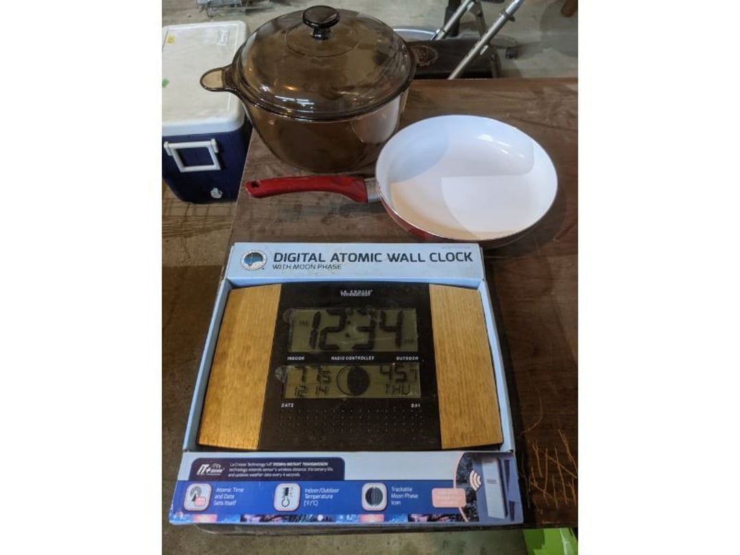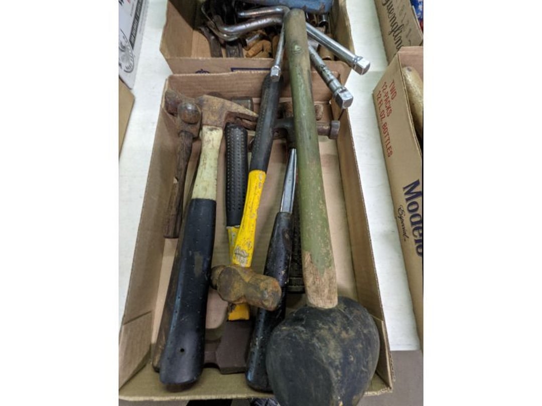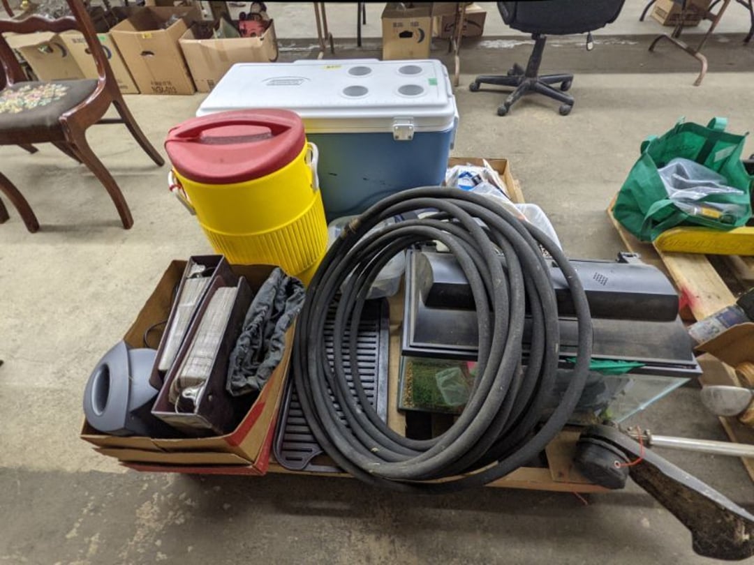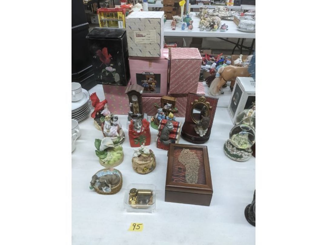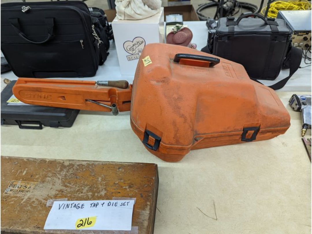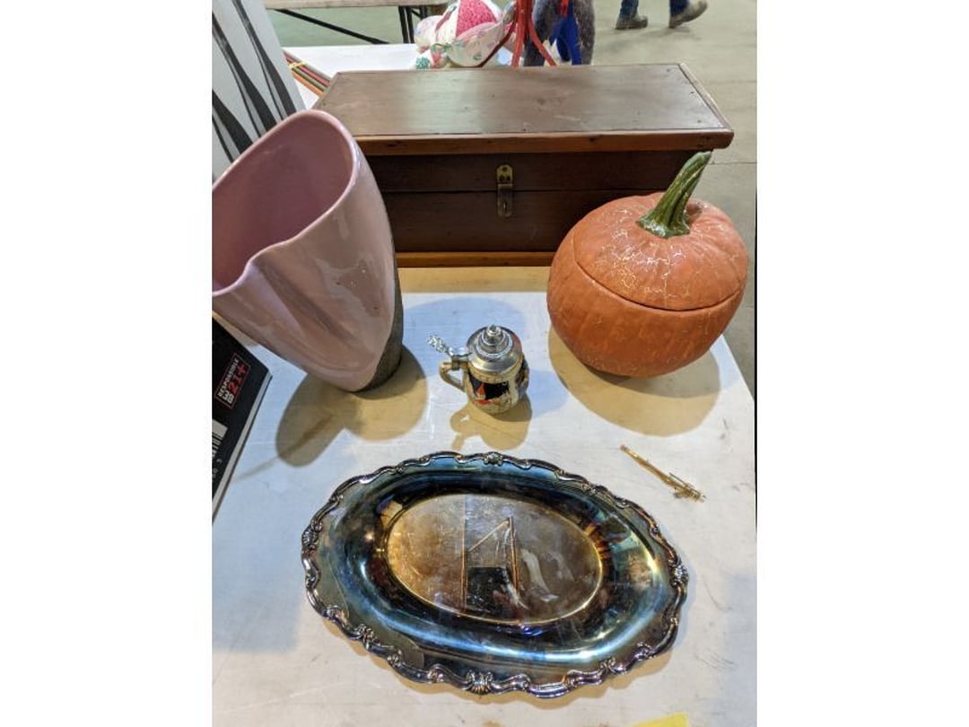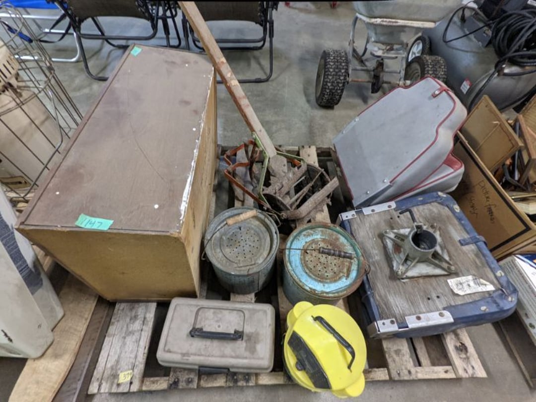 Gear pullers- Horse tie off- 2 Class rings - IU & Heritage Highschool- Pepsi Thermometer- Kissing Angels, Mickey Mouse plate, 2 Baldwin candlesticks- Oster Microwave- Ladies purses, Sm. Rival Crockpot- Hoover PortaPower Vacumn- Yamaha AV Reciever- Sony 3 way Speaker System- HP Desk Jet 1512 -Print, Scan, Copy- Bed Comforter & Signs- LG Blu-Ray Disc Player, Psyc CD Walkman- Paintbrushes, Tool balances, Misc. Tools- Air grinder stones, air tools, & Craftsman Table Saw Molding Head Insert- Vintage Mailbox & GE light switch- Hunting Gear- Tackle box, fishing gear & décor- Sidewinder Sewer Hose support- Electric Craftsman stapler, misc. tools, & organizer boxes- Haier 24" Mini Fridge- Wagner Power Painter- Little Tikes Plastic Child's slide 36"- Little Tikes Basketball Hoop- 3 pieces Leisure Luggage- 19"x24" Pet Cage- Coleman Camping Shelter & adjustable grill- 2 Northwest Territory Camping Chairs- Wolf Mattress & Boxspring - double - Handcrafted Live Edge Table/stool w/ Epoxy inlay- Handcrafted Live Edge Table/stool w/ Epoxy inlay- Handcrafted Wood w/Epoxy inlay- Handcrafted Wooden small table- Lefton China - Lily of the Valley- West Morlan Paneled Grape & Depression divided dish- 70+ pcs. Fire King Swirl dishes'- 40 pcs. Columbia Depression glass- Vernon Kilns Black Eyed Susan- 15 Tiffin glass- Royal China - Fair Oaks, serves 4- Vintage Tupperware- Aircraft wire rope & Ice tongs- Rubber Tarp straps - Indian University Memorabilia- Drawing/Ballot Box w/ tickets- M&M sm. Figurines- Kerosene Lamps w/ cast iron wall brackets- 5 pcs. Milk glass, Hersey kisses candy dish, & Apollo 11 glass - Heisey Glass - cream & sugar, & mint trays- Dunlop tire ashtray & 2 brown glass ashtrays- 2 Imperial blue glass plates- Large Imperial blue glass bowl- 3 small Imperial glass bowls- Carnival glass candy dish- Imperial Slag glass sugar bowl- 3 speakers- Akai Stero reciever - Sony Audio/Video Control Center- Pabst Blue Ribbon mirror- Jeff Gordon & Tiger Woods Pictures- Vintage Pictures- Vintage Shelf, children books, & kitchenware- Vintage Lampshade & 4 pictures- 7 pcs china bowls- Large painted glass sun catcher - 36" & sm. Picture- 3 Lamps- Depression, Corelle, & glassware- Vintage Printing Press letter block shelf- 4 Misc. Pictures- Musical Bell Suymphonium – Trombone- Up Easy lifting cushion- Lionel Trains windup Railroad Handcar- 4 Four Seasons Music box Horses & Wooden music box trolley- 3 Pocket Watches, Brighton clock, pewter bowl, pocket knives, misc.- Haviland china - serves 12- Vintage wooden box of nails- Hawthorne Thomas KinKade Village- 8 pcs. Fire King- Hall China Tavern Scene- Cookbooks- 10 pcs. Fostoria Stemware- Corelle - serves 8- Vernonware Homespun- Merlot Poppy Trail Rooster dishes w/canisters- Corelle Callawa Ivy w/ coffee mugs & glasses- Corelle cups - misc. - Pyrex bowls, casserole, Corningware bakeware- Pink Fenton- 6 red glasses & compote - Real English figurines, Goebel ornaments, & Vintage Children's book- Dishes & small knife set- Music boxes- Snow globes, & Avon perfume bottles- Rose mailing Red candle holders, misc. Christmas- Haviland china- Postcards, vintage National park booklets, vintage misc.- Vintage Erector set & misc. games- Cameras & accessories -Musical Ferris Wheel- Lighted pictures & misc. pictures- Bed is Humidifier filters, GE clock radio, Tierra glass- Yard ornaments & wall pocket- Records Albumns- DVDs - 60 CDs- Lamps- 3 Gray plastic stools- 3 White plastic stools- Vintage Scale- Venturer under cabinet DVD player- Bradford Exchange Russian Legend Set plates & 2 misc.- Electric Colormode Percolater & basket set- View Master w/ discs & misc. children's toys- Misc. Children’s Toys- 3 Metal trucks & wooden semi- Stetson & Resistol Cowboy Hats w/case- Cast Iron Ship Doorstop- 4 Fisher Price Buildings w/accessories - 2 Jack in the Pulpit vases & misc. glass- Misc. china- Florentine China - serves 12- 5 pcs. Fire King bakeware & Pyrex casserole + The Paden City Pottery Co. - serves 12- The Paden City Pottery Co. - serves 12- Temp-tations ovenware by Tara- 6 totes- RCA turntable & Pioneer Stereo Receiver - Record Albums- Mikita Maktec drill w/charger & battery- Air tools- Motorcycle SPH10 Bluetooth Headsets & Intercom + 1 Helmet- Budweiser Clock- Kirkland Professional Quality Pots & Pans- Omega Juicer & Mr. Coffee maker- Kinetic bike trainer - extension cord- Wayne Lawn Pump Utility pump - Wagner Power Roller Plus- 4 Phaltzgraft canisters & 3 glass bowls- Whirlpool over the stove microwave- Vintage Matchbooks, cigar boxes & tote bag- Kitchen appliances- Magnacox Portable DVD player, samsung phone, misc.- Kitchenware, Osterizer blender, & toastmaster waffle maker- Baseball cards - 1985, 1990, 2000- Blue glass dishes- Books- Hitachi VCR, Memorix Portable Karaoke Machine- Outers Pistol Perch- Angel picture & collage frame- Magic Chef Mini fridge- Vintage pulley & hooks- Vintage pitchers & mugs- Large Wooden Bowl- Linens, aprons, Colts tee shirts, misc.- Silver plated punch bowl & goblets- Rodgers silver plated tea pots & cream & sugar- animal figurines- Sheridan silver plated tea pot, cream & sugar, cups, misc.- Cut glass dishes- Crystal dishes- Silver plated dishes- Longenberger basket, wooden nesting pieces- 9 Precious Moments-Christmas - electric merry-go-round, misc.- Paper cutting board, 2 rag rugs- Lg. Brass deer, stone clock, 3 sm. Benches, Ty bear, etc.- Photography equipment & accessories- Magnavox tuner, amplifier, tape deck, CD player- CDs, tapes, 45s, 1 record album- 3 VHS players & Panasonic satellite receiver - Lloyd's record player, 8 track, AM-FM receiver w/2speakers- Sheller & coon traps- 2 speakers- Hallicrafters World-Wide radio- CBs, Emergency radio, etc.- Vintage Singer Sewing machine- Black & Decker 5" grinder & Olympia vice- Duracraft Bench grinder - Powr-Kraft drill, Black & Decker Jig Saw, misc.- Black & Decker mouse, Craftsman sander, Wen soldering gun, & mitering kit- Stereo Headphones, Prism binoculars, 2 Eliminator - Rockwell sander/polishe