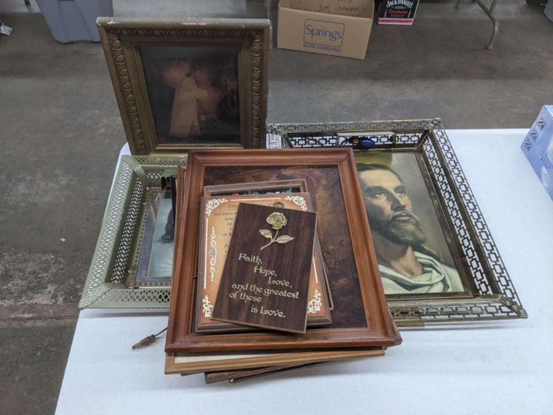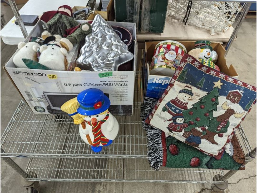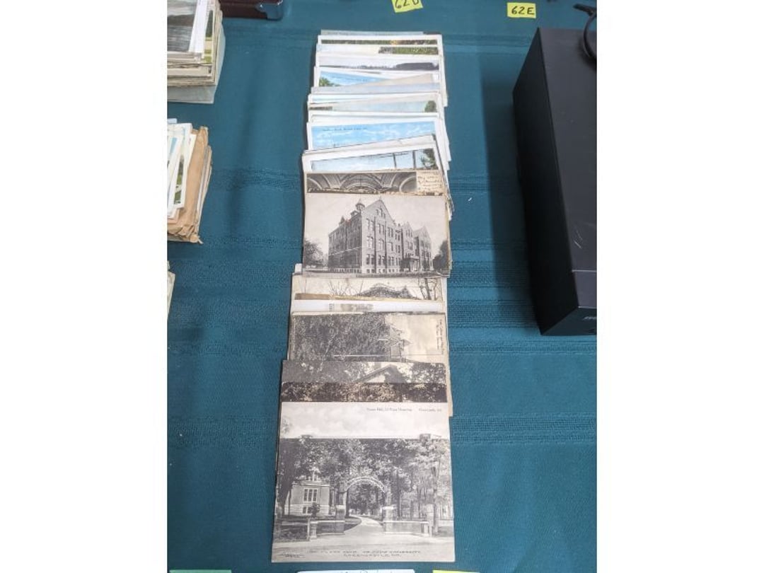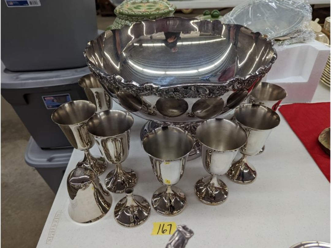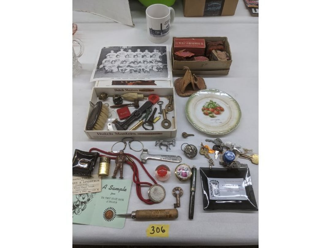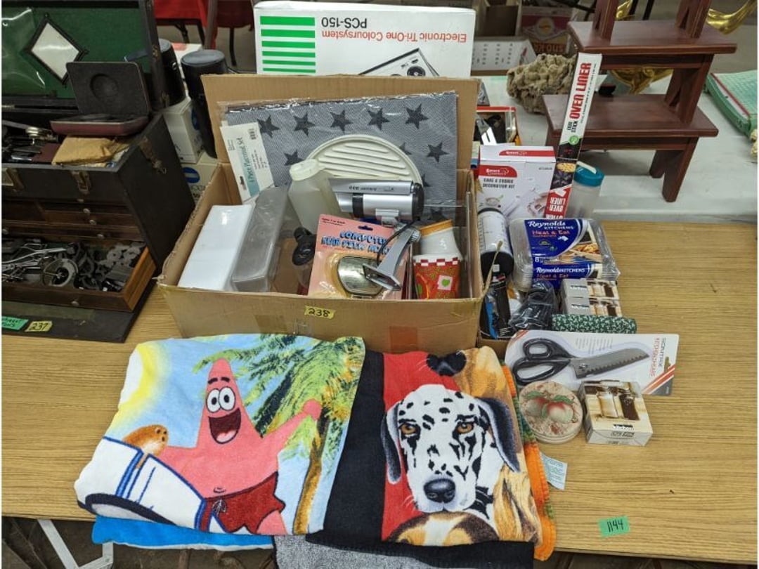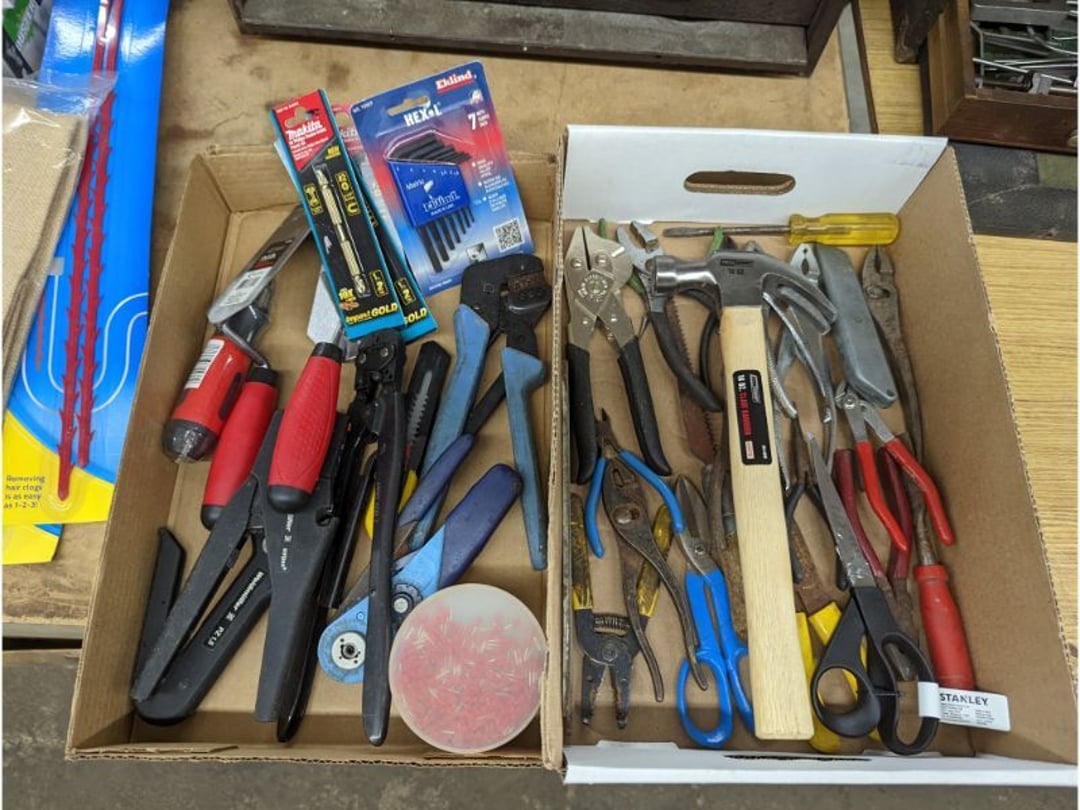 Gear pullers- Horse tie off- 2 Class rings - IU & Heritage Highschool- Pepsi Thermometer- Kissing Angels, Mickey Mouse plate, 2 Baldwin candlesticks- Oster Microwave- Ladies purses, Sm. Rival Crockpot- Hoover PortaPower Vacumn- Yamaha AV Reciever- Sony 3 way Speaker System- HP Desk Jet 1512 -Print, Scan, Copy- Bed Comforter & Signs- LG Blu-Ray Disc Player, Psyc CD Walkman- Paintbrushes, Tool balances, Misc. Tools- Air grinder stones, air tools, & Craftsman Table Saw Molding Head Insert- Vintage Mailbox & GE light switch- Hunting Gear- Tackle box, fishing gear & décor- Sidewinder Sewer Hose support- Electric Craftsman stapler, misc. tools, & organizer boxes- Haier 24" Mini Fridge- Wagner Power Painter- Little Tikes Plastic Child's slide 36"- Little Tikes Basketball Hoop- 3 pieces Leisure Luggage- 19"x24" Pet Cage- Coleman Camping Shelter & adjustable grill- 2 Northwest Territory Camping Chairs- Wolf Mattress & Boxspring - double - Handcrafted Live Edge Table/stool w/ Epoxy inlay- Handcrafted Live Edge Table/stool w/ Epoxy inlay- Handcrafted Wood w/Epoxy inlay- Handcrafted Wooden small table- Lefton China - Lily of the Valley- West Morlan Paneled Grape & Depression divided dish- 70+ pcs. Fire King Swirl dishes'- 40 pcs. Columbia Depression glass- Vernon Kilns Black Eyed Susan- 15 Tiffin glass- Royal China - Fair Oaks, serves 4- Vintage Tupperware- Aircraft wire rope & Ice tongs- Rubber Tarp straps - Indian University Memorabilia- Drawing/Ballot Box w/ tickets- M&M sm. Figurines- Kerosene Lamps w/ cast iron wall brackets- 5 pcs. Milk glass, Hersey kisses candy dish, & Apollo 11 glass - Heisey Glass - cream & sugar, & mint trays- Dunlop tire ashtray & 2 brown glass ashtrays- 2 Imperial blue glass plates- Large Imperial blue glass bowl- 3 small Imperial glass bowls- Carnival glass candy dish- Imperial Slag glass sugar bowl- 3 speakers- Akai Stero reciever - Sony Audio/Video Control Center- Pabst Blue Ribbon mirror- Jeff Gordon & Tiger Woods Pictures- Vintage Pictures- Vintage Shelf, children books, & kitchenware- Vintage Lampshade & 4 pictures- 7 pcs china bowls- Large painted glass sun catcher - 36" & sm. Picture- 3 Lamps- Depression, Corelle, & glassware- Vintage Printing Press letter block shelf- 4 Misc. Pictures- Musical Bell Suymphonium – Trombone- Up Easy lifting cushion- Lionel Trains windup Railroad Handcar- 4 Four Seasons Music box Horses & Wooden music box trolley- 3 Pocket Watches, Brighton clock, pewter bowl, pocket knives, misc.- Haviland china - serves 12- Vintage wooden box of nails- Hawthorne Thomas KinKade Village- 8 pcs. Fire King- Hall China Tavern Scene- Cookbooks- 10 pcs. Fostoria Stemware- Corelle - serves 8- Vernonware Homespun- Merlot Poppy Trail Rooster dishes w/canisters- Corelle Callawa Ivy w/ coffee mugs & glasses- Corelle cups - misc. - Pyrex bowls, casserole, Corningware bakeware- Pink Fenton- 6 red glasses & compote - Real English figurines, Goebel ornaments, & Vintage Children's book- Dishes & small knife set- Music boxes- Snow globes, & Avon perfume bottles- Rose mailing Red candle holders, misc. Christmas- Haviland china- Postcards, vintage National park booklets, vintage misc.- Vintage Erector set & misc. games- Cameras & accessories -Musical Ferris Wheel- Lighted pictures & misc. pictures- Bed is Humidifier filters, GE clock radio, Tierra glass- Yard ornaments & wall pocket- Records Albumns- DVDs - 60 CDs- Lamps- 3 Gray plastic stools- 3 White plastic stools- Vintage Scale- Venturer under cabinet DVD player- Bradford Exchange Russian Legend Set plates & 2 misc.- Electric Colormode Percolater & basket set- View Master w/ discs & misc. children's toys- Misc. Children’s Toys- 3 Metal trucks & wooden semi- Stetson & Resistol Cowboy Hats w/case- Cast Iron Ship Doorstop- 4 Fisher Price Buildings w/accessories - 2 Jack in the Pulpit vases & misc. glass- Misc. china- Florentine China - serves 12- 5 pcs. Fire King bakeware & Pyrex casserole + The Paden City Pottery Co. - serves 12- The Paden City Pottery Co. - serves 12- Temp-tations ovenware by Tara- 6 totes- RCA turntable & Pioneer Stereo Receiver - Record Albums- Mikita Maktec drill w/charger & battery- Air tools- Motorcycle SPH10 Bluetooth Headsets & Intercom + 1 Helmet- Budweiser Clock- Kirkland Professional Quality Pots & Pans- Omega Juicer & Mr. Coffee maker- Kinetic bike trainer - extension cord- Wayne Lawn Pump Utility pump - Wagner Power Roller Plus- 4 Phaltzgraft canisters & 3 glass bowls- Whirlpool over the stove microwave- Vintage Matchbooks, cigar boxes & tote bag- Kitchen appliances- Magnacox Portable DVD player, samsung phone, misc.- Kitchenware, Osterizer blender, & toastmaster waffle maker- Baseball cards - 1985, 1990, 2000- Blue glass dishes- Books- Hitachi VCR, Memorix Portable Karaoke Machine- Outers Pistol Perch- Angel picture & collage frame- Magic Chef Mini fridge- Vintage pulley & hooks- Vintage pitchers & mugs- Large Wooden Bowl- Linens, aprons, Colts tee shirts, misc.- Silver plated punch bowl & goblets- Rodgers silver plated tea pots & cream & sugar- animal figurines- Sheridan silver plated tea pot, cream & sugar, cups, misc.- Cut glass dishes- Crystal dishes- Silver plated dishes- Longenberger basket, wooden nesting pieces- 9 Precious Moments-Christmas - electric merry-go-round, misc.- Paper cutting board, 2 rag rugs- Lg. Brass deer, stone clock, 3 sm. Benches, Ty bear, etc.- Photography equipment & accessories- Magnavox tuner, amplifier, tape deck, CD player- CDs, tapes, 45s, 1 record album- 3 VHS players & Panasonic satellite receiver - Lloyd's record player, 8 track, AM-FM receiver w/2speakers- Sheller & coon traps- 2 speakers- Hallicrafters World-Wide radio- CBs, Emergency radio, etc.- Vintage Singer Sewing machine- Black & Decker 5" grinder & Olympia vice- Duracraft Bench grinder - Powr-Kraft drill, Black & Decker Jig Saw, misc.- Black & Decker mouse, Craftsman sander, Wen soldering gun, & mitering kit- Stereo Headphones, Prism binoculars, 2 Eliminator - Rockwell sander/polishe