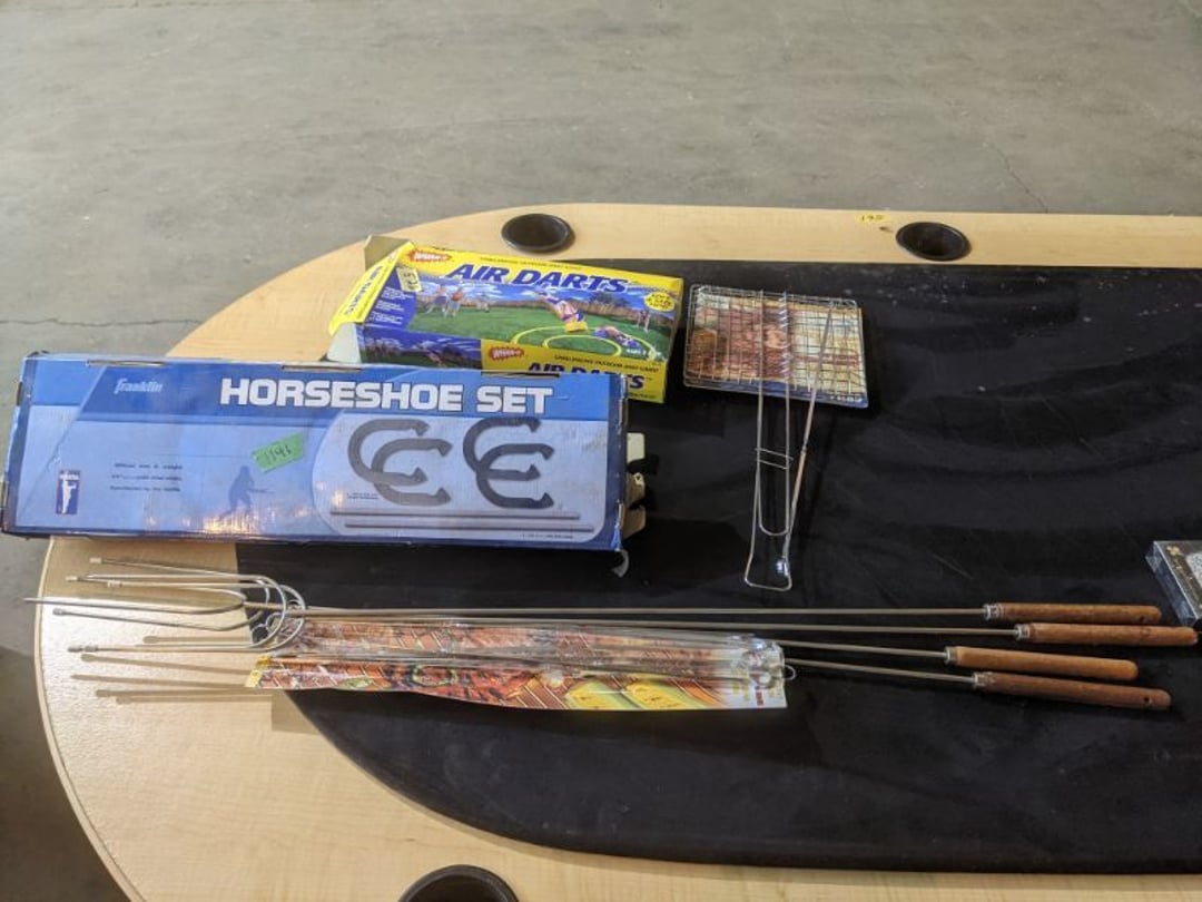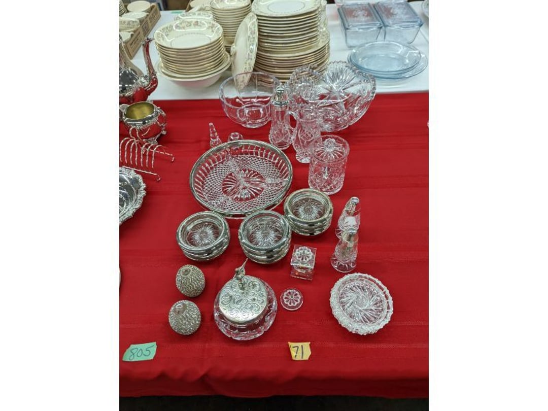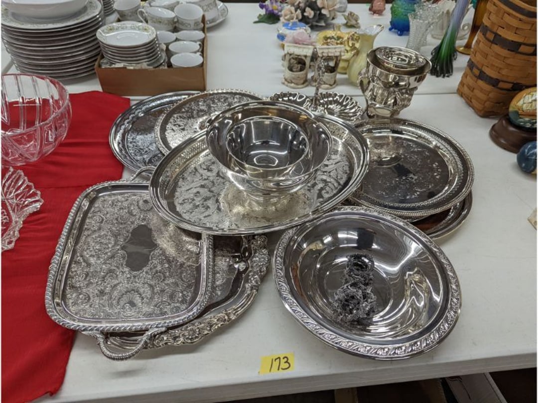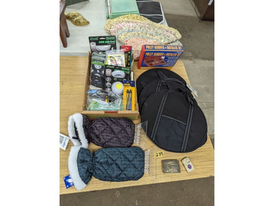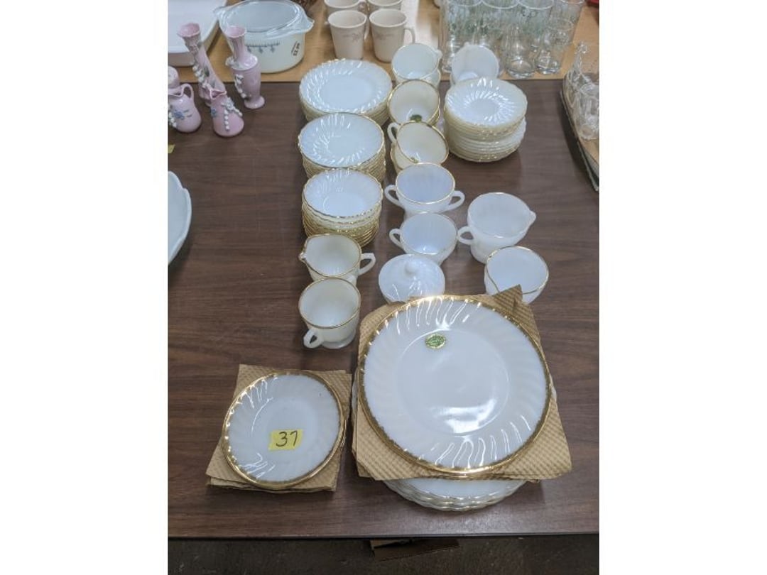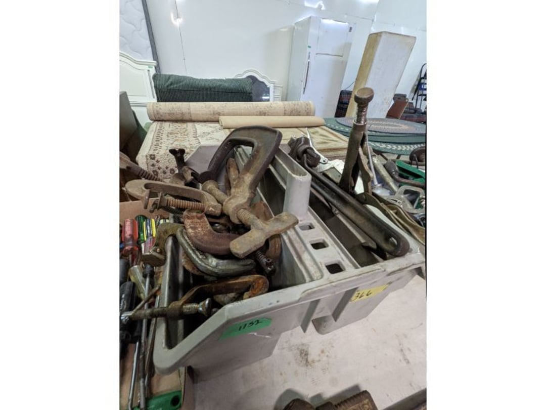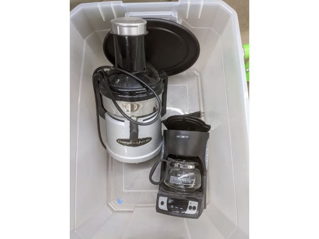 Gear pullers- Horse tie off- 2 Class rings - IU & Heritage Highschool- Pepsi Thermometer- Kissing Angels, Mickey Mouse plate, 2 Baldwin candlesticks- Oster Microwave- Ladies purses, Sm. Rival Crockpot- Hoover PortaPower Vacumn- Yamaha AV Reciever- Sony 3 way Speaker System- HP Desk Jet 1512 -Print, Scan, Copy- Bed Comforter & Signs- LG Blu-Ray Disc Player, Psyc CD Walkman- Paintbrushes, Tool balances, Misc. Tools- Air grinder stones, air tools, & Craftsman Table Saw Molding Head Insert- Vintage Mailbox & GE light switch- Hunting Gear- Tackle box, fishing gear & décor- Sidewinder Sewer Hose support- Electric Craftsman stapler, misc. tools, & organizer boxes- Haier 24" Mini Fridge- Wagner Power Painter- Little Tikes Plastic Child's slide 36"- Little Tikes Basketball Hoop- 3 pieces Leisure Luggage- 19"x24" Pet Cage- Coleman Camping Shelter & adjustable grill- 2 Northwest Territory Camping Chairs- Wolf Mattress & Boxspring - double - Handcrafted Live Edge Table/stool w/ Epoxy inlay- Handcrafted Live Edge Table/stool w/ Epoxy inlay- Handcrafted Wood w/Epoxy inlay- Handcrafted Wooden small table- Lefton China - Lily of the Valley- West Morlan Paneled Grape & Depression divided dish- 70+ pcs. Fire King Swirl dishes'- 40 pcs. Columbia Depression glass- Vernon Kilns Black Eyed Susan- 15 Tiffin glass- Royal China - Fair Oaks, serves 4- Vintage Tupperware- Aircraft wire rope & Ice tongs- Rubber Tarp straps - Indian University Memorabilia- Drawing/Ballot Box w/ tickets- M&M sm. Figurines- Kerosene Lamps w/ cast iron wall brackets- 5 pcs. Milk glass, Hersey kisses candy dish, & Apollo 11 glass - Heisey Glass - cream & sugar, & mint trays- Dunlop tire ashtray & 2 brown glass ashtrays- 2 Imperial blue glass plates- Large Imperial blue glass bowl- 3 small Imperial glass bowls- Carnival glass candy dish- Imperial Slag glass sugar bowl- 3 speakers- Akai Stero reciever - Sony Audio/Video Control Center- Pabst Blue Ribbon mirror- Jeff Gordon & Tiger Woods Pictures- Vintage Pictures- Vintage Shelf, children books, & kitchenware- Vintage Lampshade & 4 pictures- 7 pcs china bowls- Large painted glass sun catcher - 36" & sm. Picture- 3 Lamps- Depression, Corelle, & glassware- Vintage Printing Press letter block shelf- 4 Misc. Pictures- Musical Bell Suymphonium – Trombone- Up Easy lifting cushion- Lionel Trains windup Railroad Handcar- 4 Four Seasons Music box Horses & Wooden music box trolley- 3 Pocket Watches, Brighton clock, pewter bowl, pocket knives, misc.- Haviland china - serves 12- Vintage wooden box of nails- Hawthorne Thomas KinKade Village- 8 pcs. Fire King- Hall China Tavern Scene- Cookbooks- 10 pcs. Fostoria Stemware- Corelle - serves 8- Vernonware Homespun- Merlot Poppy Trail Rooster dishes w/canisters- Corelle Callawa Ivy w/ coffee mugs & glasses- Corelle cups - misc. - Pyrex bowls, casserole, Corningware bakeware- Pink Fenton- 6 red glasses & compote - Real English figurines, Goebel ornaments, & Vintage Children's book- Dishes & small knife set- Music boxes- Snow globes, & Avon perfume bottles- Rose mailing Red candle holders, misc. Christmas- Haviland china- Postcards, vintage National park booklets, vintage misc.- Vintage Erector set & misc. games- Cameras & accessories -Musical Ferris Wheel- Lighted pictures & misc. pictures- Bed is Humidifier filters, GE clock radio, Tierra glass- Yard ornaments & wall pocket- Records Albumns- DVDs - 60 CDs- Lamps- 3 Gray plastic stools- 3 White plastic stools- Vintage Scale- Venturer under cabinet DVD player- Bradford Exchange Russian Legend Set plates & 2 misc.- Electric Colormode Percolater & basket set- View Master w/ discs & misc. children's toys- Misc. Children’s Toys- 3 Metal trucks & wooden semi- Stetson & Resistol Cowboy Hats w/case- Cast Iron Ship Doorstop- 4 Fisher Price Buildings w/accessories - 2 Jack in the Pulpit vases & misc. glass- Misc. china- Florentine China - serves 12- 5 pcs. Fire King bakeware & Pyrex casserole + The Paden City Pottery Co. - serves 12- The Paden City Pottery Co. - serves 12- Temp-tations ovenware by Tara- 6 totes- RCA turntable & Pioneer Stereo Receiver - Record Albums- Mikita Maktec drill w/charger & battery- Air tools- Motorcycle SPH10 Bluetooth Headsets & Intercom + 1 Helmet- Budweiser Clock- Kirkland Professional Quality Pots & Pans- Omega Juicer & Mr. Coffee maker- Kinetic bike trainer - extension cord- Wayne Lawn Pump Utility pump - Wagner Power Roller Plus- 4 Phaltzgraft canisters & 3 glass bowls- Whirlpool over the stove microwave- Vintage Matchbooks, cigar boxes & tote bag- Kitchen appliances- Magnacox Portable DVD player, samsung phone, misc.- Kitchenware, Osterizer blender, & toastmaster waffle maker- Baseball cards - 1985, 1990, 2000- Blue glass dishes- Books- Hitachi VCR, Memorix Portable Karaoke Machine- Outers Pistol Perch- Angel picture & collage frame- Magic Chef Mini fridge- Vintage pulley & hooks- Vintage pitchers & mugs- Large Wooden Bowl- Linens, aprons, Colts tee shirts, misc.- Silver plated punch bowl & goblets- Rodgers silver plated tea pots & cream & sugar- animal figurines- Sheridan silver plated tea pot, cream & sugar, cups, misc.- Cut glass dishes- Crystal dishes- Silver plated dishes- Longenberger basket, wooden nesting pieces- 9 Precious Moments-Christmas - electric merry-go-round, misc.- Paper cutting board, 2 rag rugs- Lg. Brass deer, stone clock, 3 sm. Benches, Ty bear, etc.- Photography equipment & accessories- Magnavox tuner, amplifier, tape deck, CD player- CDs, tapes, 45s, 1 record album- 3 VHS players & Panasonic satellite receiver - Lloyd's record player, 8 track, AM-FM receiver w/2speakers- Sheller & coon traps- 2 speakers- Hallicrafters World-Wide radio- CBs, Emergency radio, etc.- Vintage Singer Sewing machine- Black & Decker 5" grinder & Olympia vice- Duracraft Bench grinder - Powr-Kraft drill, Black & Decker Jig Saw, misc.- Black & Decker mouse, Craftsman sander, Wen soldering gun, & mitering kit- Stereo Headphones, Prism binoculars, 2 Eliminator - Rockwell sander/polishe