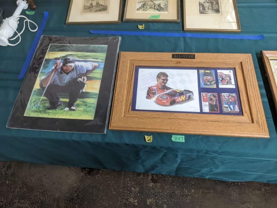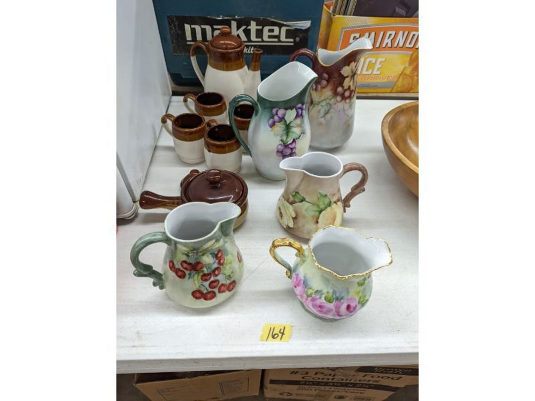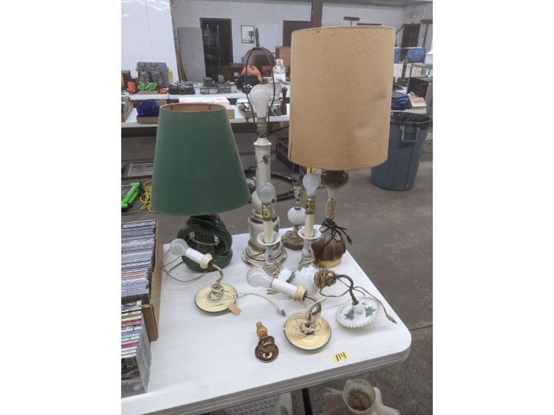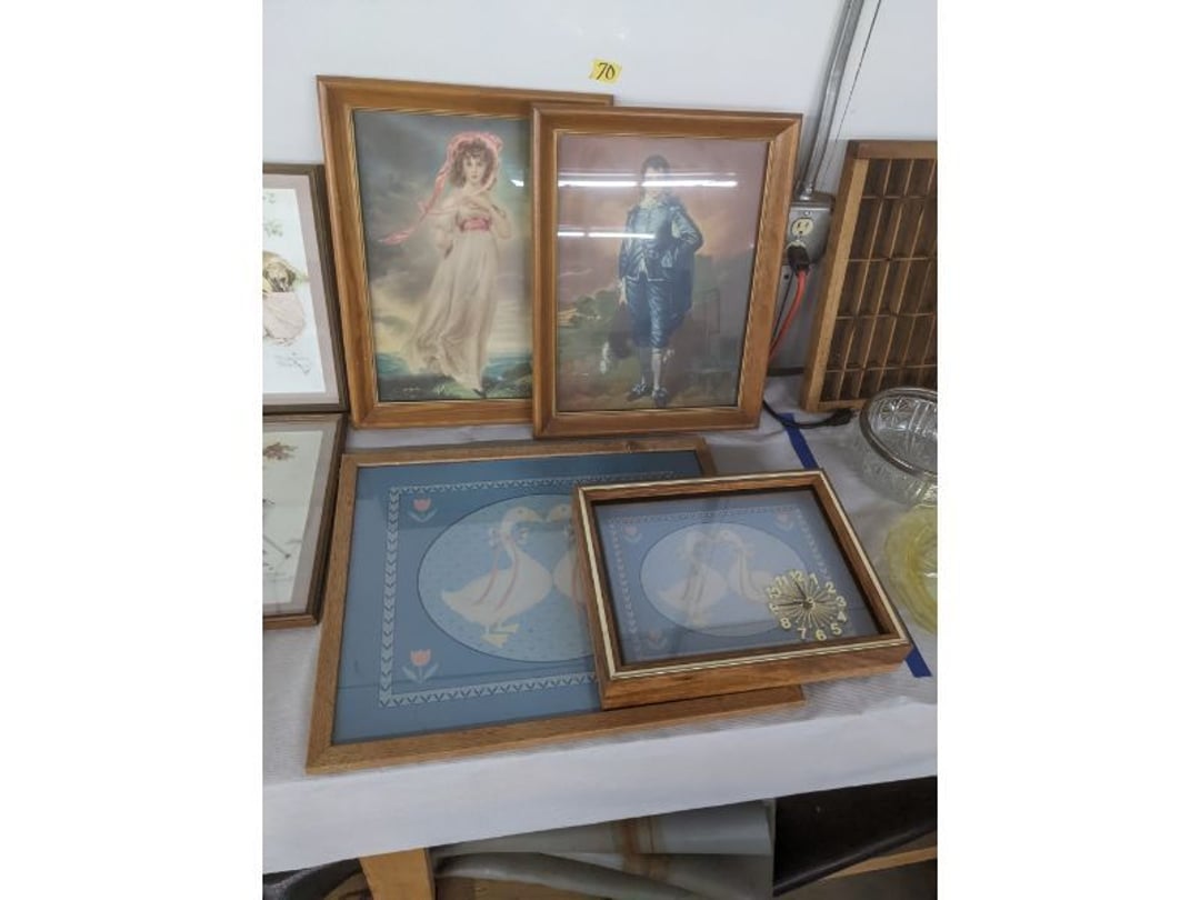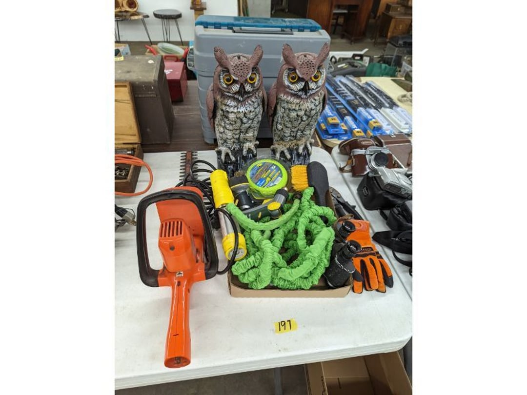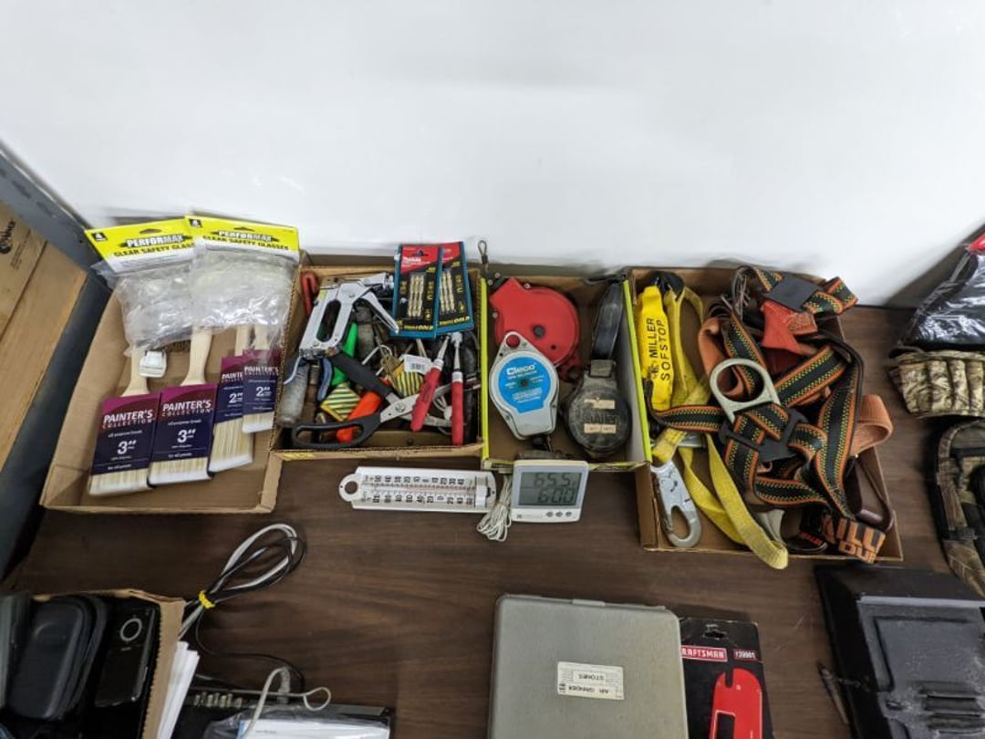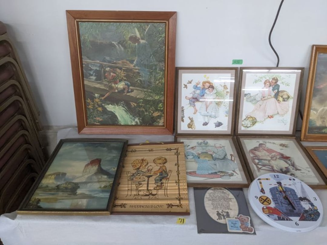 Gear pullers- Horse tie off- 2 Class rings - IU & Heritage Highschool- Pepsi Thermometer- Kissing Angels, Mickey Mouse plate, 2 Baldwin candlesticks- Oster Microwave- Ladies purses, Sm. Rival Crockpot- Hoover PortaPower Vacumn- Yamaha AV Reciever- Sony 3 way Speaker System- HP Desk Jet 1512 -Print, Scan, Copy- Bed Comforter & Signs- LG Blu-Ray Disc Player, Psyc CD Walkman- Paintbrushes, Tool balances, Misc. Tools- Air grinder stones, air tools, & Craftsman Table Saw Molding Head Insert- Vintage Mailbox & GE light switch- Hunting Gear- Tackle box, fishing gear & décor- Sidewinder Sewer Hose support- Electric Craftsman stapler, misc. tools, & organizer boxes- Haier 24" Mini Fridge- Wagner Power Painter- Little Tikes Plastic Child's slide 36"- Little Tikes Basketball Hoop- 3 pieces Leisure Luggage- 19"x24" Pet Cage- Coleman Camping Shelter & adjustable grill- 2 Northwest Territory Camping Chairs- Wolf Mattress & Boxspring - double - Handcrafted Live Edge Table/stool w/ Epoxy inlay- Handcrafted Live Edge Table/stool w/ Epoxy inlay- Handcrafted Wood w/Epoxy inlay- Handcrafted Wooden small table- Lefton China - Lily of the Valley- West Morlan Paneled Grape & Depression divided dish- 70+ pcs. Fire King Swirl dishes'- 40 pcs. Columbia Depression glass- Vernon Kilns Black Eyed Susan- 15 Tiffin glass- Royal China - Fair Oaks, serves 4- Vintage Tupperware- Aircraft wire rope & Ice tongs- Rubber Tarp straps - Indian University Memorabilia- Drawing/Ballot Box w/ tickets- M&M sm. Figurines- Kerosene Lamps w/ cast iron wall brackets- 5 pcs. Milk glass, Hersey kisses candy dish, & Apollo 11 glass - Heisey Glass - cream & sugar, & mint trays- Dunlop tire ashtray & 2 brown glass ashtrays- 2 Imperial blue glass plates- Large Imperial blue glass bowl- 3 small Imperial glass bowls- Carnival glass candy dish- Imperial Slag glass sugar bowl- 3 speakers- Akai Stero reciever - Sony Audio/Video Control Center- Pabst Blue Ribbon mirror- Jeff Gordon & Tiger Woods Pictures- Vintage Pictures- Vintage Shelf, children books, & kitchenware- Vintage Lampshade & 4 pictures- 7 pcs china bowls- Large painted glass sun catcher - 36" & sm. Picture- 3 Lamps- Depression, Corelle, & glassware- Vintage Printing Press letter block shelf- 4 Misc. Pictures- Musical Bell Suymphonium – Trombone- Up Easy lifting cushion- Lionel Trains windup Railroad Handcar- 4 Four Seasons Music box Horses & Wooden music box trolley- 3 Pocket Watches, Brighton clock, pewter bowl, pocket knives, misc.- Haviland china - serves 12- Vintage wooden box of nails- Hawthorne Thomas KinKade Village- 8 pcs. Fire King- Hall China Tavern Scene- Cookbooks- 10 pcs. Fostoria Stemware- Corelle - serves 8- Vernonware Homespun- Merlot Poppy Trail Rooster dishes w/canisters- Corelle Callawa Ivy w/ coffee mugs & glasses- Corelle cups - misc. - Pyrex bowls, casserole, Corningware bakeware- Pink Fenton- 6 red glasses & compote - Real English figurines, Goebel ornaments, & Vintage Children's book- Dishes & small knife set- Music boxes- Snow globes, & Avon perfume bottles- Rose mailing Red candle holders, misc. Christmas- Haviland china- Postcards, vintage National park booklets, vintage misc.- Vintage Erector set & misc. games- Cameras & accessories -Musical Ferris Wheel- Lighted pictures & misc. pictures- Bed is Humidifier filters, GE clock radio, Tierra glass- Yard ornaments & wall pocket- Records Albumns- DVDs - 60 CDs- Lamps- 3 Gray plastic stools- 3 White plastic stools- Vintage Scale- Venturer under cabinet DVD player- Bradford Exchange Russian Legend Set plates & 2 misc.- Electric Colormode Percolater & basket set- View Master w/ discs & misc. children's toys- Misc. Children’s Toys- 3 Metal trucks & wooden semi- Stetson & Resistol Cowboy Hats w/case- Cast Iron Ship Doorstop- 4 Fisher Price Buildings w/accessories - 2 Jack in the Pulpit vases & misc. glass- Misc. china- Florentine China - serves 12- 5 pcs. Fire King bakeware & Pyrex casserole + The Paden City Pottery Co. - serves 12- The Paden City Pottery Co. - serves 12- Temp-tations ovenware by Tara- 6 totes- RCA turntable & Pioneer Stereo Receiver - Record Albums- Mikita Maktec drill w/charger & battery- Air tools- Motorcycle SPH10 Bluetooth Headsets & Intercom + 1 Helmet- Budweiser Clock- Kirkland Professional Quality Pots & Pans- Omega Juicer & Mr. Coffee maker- Kinetic bike trainer - extension cord- Wayne Lawn Pump Utility pump - Wagner Power Roller Plus- 4 Phaltzgraft canisters & 3 glass bowls- Whirlpool over the stove microwave- Vintage Matchbooks, cigar boxes & tote bag- Kitchen appliances- Magnacox Portable DVD player, samsung phone, misc.- Kitchenware, Osterizer blender, & toastmaster waffle maker- Baseball cards - 1985, 1990, 2000- Blue glass dishes- Books- Hitachi VCR, Memorix Portable Karaoke Machine- Outers Pistol Perch- Angel picture & collage frame- Magic Chef Mini fridge- Vintage pulley & hooks- Vintage pitchers & mugs- Large Wooden Bowl- Linens, aprons, Colts tee shirts, misc.- Silver plated punch bowl & goblets- Rodgers silver plated tea pots & cream & sugar- animal figurines- Sheridan silver plated tea pot, cream & sugar, cups, misc.- Cut glass dishes- Crystal dishes- Silver plated dishes- Longenberger basket, wooden nesting pieces- 9 Precious Moments-Christmas - electric merry-go-round, misc.- Paper cutting board, 2 rag rugs- Lg. Brass deer, stone clock, 3 sm. Benches, Ty bear, etc.- Photography equipment & accessories- Magnavox tuner, amplifier, tape deck, CD player- CDs, tapes, 45s, 1 record album- 3 VHS players & Panasonic satellite receiver - Lloyd's record player, 8 track, AM-FM receiver w/2speakers- Sheller & coon traps- 2 speakers- Hallicrafters World-Wide radio- CBs, Emergency radio, etc.- Vintage Singer Sewing machine- Black & Decker 5" grinder & Olympia vice- Duracraft Bench grinder - Powr-Kraft drill, Black & Decker Jig Saw, misc.- Black & Decker mouse, Craftsman sander, Wen soldering gun, & mitering kit- Stereo Headphones, Prism binoculars, 2 Eliminator - Rockwell sander/polishe