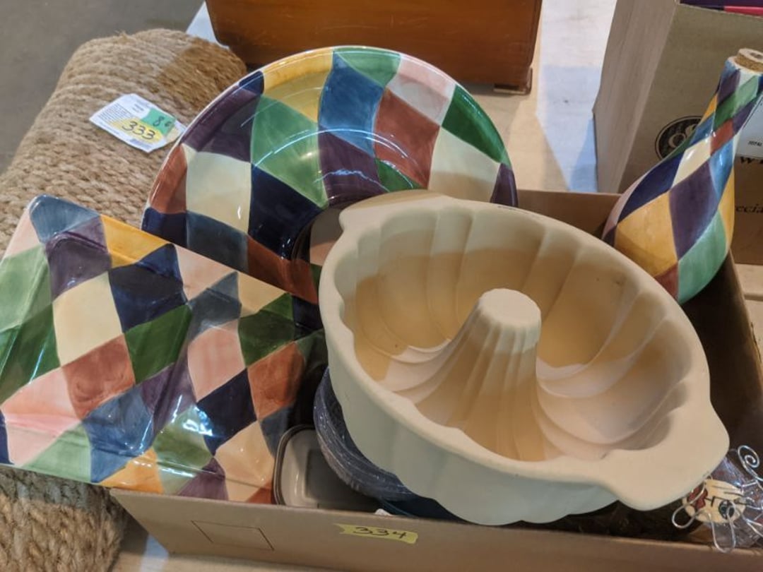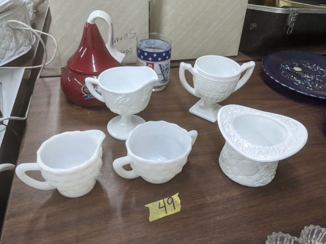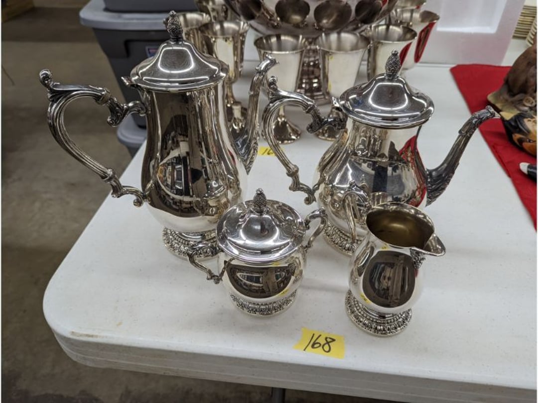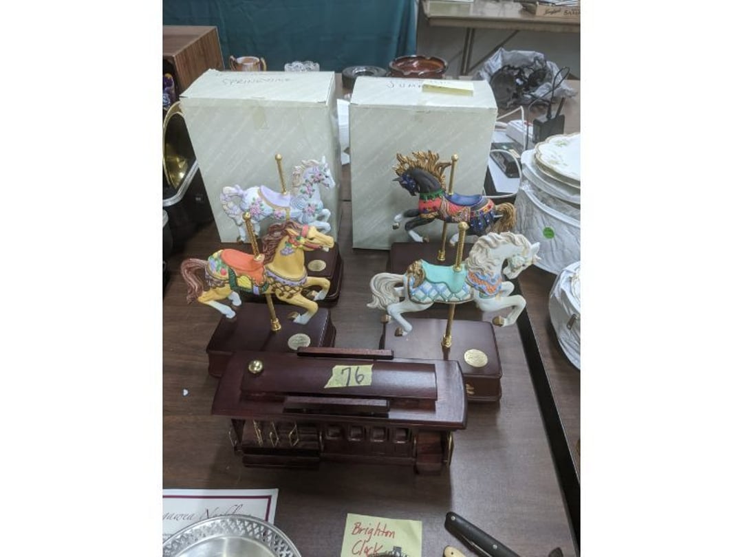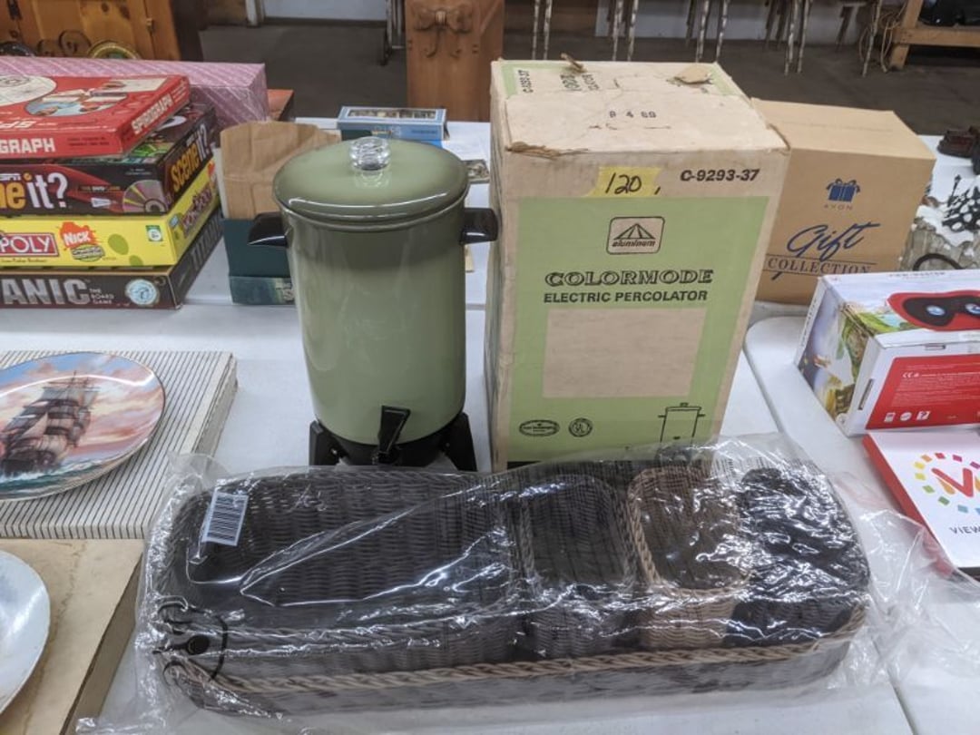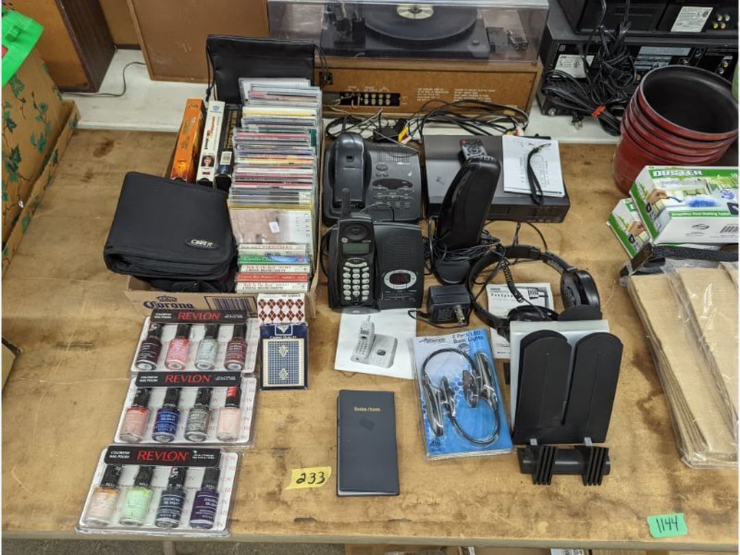 Gear pullers- Horse tie off- 2 Class rings - IU & Heritage Highschool- Pepsi Thermometer- Kissing Angels, Mickey Mouse plate, 2 Baldwin candlesticks- Oster Microwave- Ladies purses, Sm. Rival Crockpot- Hoover PortaPower Vacumn- Yamaha AV Reciever- Sony 3 way Speaker System- HP Desk Jet 1512 -Print, Scan, Copy- Bed Comforter & Signs- LG Blu-Ray Disc Player, Psyc CD Walkman- Paintbrushes, Tool balances, Misc. Tools- Air grinder stones, air tools, & Craftsman Table Saw Molding Head Insert- Vintage Mailbox & GE light switch- Hunting Gear- Tackle box, fishing gear & décor- Sidewinder Sewer Hose support- Electric Craftsman stapler, misc. tools, & organizer boxes- Haier 24" Mini Fridge- Wagner Power Painter- Little Tikes Plastic Child's slide 36"- Little Tikes Basketball Hoop- 3 pieces Leisure Luggage- 19"x24" Pet Cage- Coleman Camping Shelter & adjustable grill- 2 Northwest Territory Camping Chairs- Wolf Mattress & Boxspring - double - Handcrafted Live Edge Table/stool w/ Epoxy inlay- Handcrafted Live Edge Table/stool w/ Epoxy inlay- Handcrafted Wood w/Epoxy inlay- Handcrafted Wooden small table- Lefton China - Lily of the Valley- West Morlan Paneled Grape & Depression divided dish- 70+ pcs. Fire King Swirl dishes'- 40 pcs. Columbia Depression glass- Vernon Kilns Black Eyed Susan- 15 Tiffin glass- Royal China - Fair Oaks, serves 4- Vintage Tupperware- Aircraft wire rope & Ice tongs- Rubber Tarp straps - Indian University Memorabilia- Drawing/Ballot Box w/ tickets- M&M sm. Figurines- Kerosene Lamps w/ cast iron wall brackets- 5 pcs. Milk glass, Hersey kisses candy dish, & Apollo 11 glass - Heisey Glass - cream & sugar, & mint trays- Dunlop tire ashtray & 2 brown glass ashtrays- 2 Imperial blue glass plates- Large Imperial blue glass bowl- 3 small Imperial glass bowls- Carnival glass candy dish- Imperial Slag glass sugar bowl- 3 speakers- Akai Stero reciever - Sony Audio/Video Control Center- Pabst Blue Ribbon mirror- Jeff Gordon & Tiger Woods Pictures- Vintage Pictures- Vintage Shelf, children books, & kitchenware- Vintage Lampshade & 4 pictures- 7 pcs china bowls- Large painted glass sun catcher - 36" & sm. Picture- 3 Lamps- Depression, Corelle, & glassware- Vintage Printing Press letter block shelf- 4 Misc. Pictures- Musical Bell Suymphonium – Trombone- Up Easy lifting cushion- Lionel Trains windup Railroad Handcar- 4 Four Seasons Music box Horses & Wooden music box trolley- 3 Pocket Watches, Brighton clock, pewter bowl, pocket knives, misc.- Haviland china - serves 12- Vintage wooden box of nails- Hawthorne Thomas KinKade Village- 8 pcs. Fire King- Hall China Tavern Scene- Cookbooks- 10 pcs. Fostoria Stemware- Corelle - serves 8- Vernonware Homespun- Merlot Poppy Trail Rooster dishes w/canisters- Corelle Callawa Ivy w/ coffee mugs & glasses- Corelle cups - misc. - Pyrex bowls, casserole, Corningware bakeware- Pink Fenton- 6 red glasses & compote - Real English figurines, Goebel ornaments, & Vintage Children's book- Dishes & small knife set- Music boxes- Snow globes, & Avon perfume bottles- Rose mailing Red candle holders, misc. Christmas- Haviland china- Postcards, vintage National park booklets, vintage misc.- Vintage Erector set & misc. games- Cameras & accessories -Musical Ferris Wheel- Lighted pictures & misc. pictures- Bed is Humidifier filters, GE clock radio, Tierra glass- Yard ornaments & wall pocket- Records Albumns- DVDs - 60 CDs- Lamps- 3 Gray plastic stools- 3 White plastic stools- Vintage Scale- Venturer under cabinet DVD player- Bradford Exchange Russian Legend Set plates & 2 misc.- Electric Colormode Percolater & basket set- View Master w/ discs & misc. children's toys- Misc. Children’s Toys- 3 Metal trucks & wooden semi- Stetson & Resistol Cowboy Hats w/case- Cast Iron Ship Doorstop- 4 Fisher Price Buildings w/accessories - 2 Jack in the Pulpit vases & misc. glass- Misc. china- Florentine China - serves 12- 5 pcs. Fire King bakeware & Pyrex casserole + The Paden City Pottery Co. - serves 12- The Paden City Pottery Co. - serves 12- Temp-tations ovenware by Tara- 6 totes- RCA turntable & Pioneer Stereo Receiver - Record Albums- Mikita Maktec drill w/charger & battery- Air tools- Motorcycle SPH10 Bluetooth Headsets & Intercom + 1 Helmet- Budweiser Clock- Kirkland Professional Quality Pots & Pans- Omega Juicer & Mr. Coffee maker- Kinetic bike trainer - extension cord- Wayne Lawn Pump Utility pump - Wagner Power Roller Plus- 4 Phaltzgraft canisters & 3 glass bowls- Whirlpool over the stove microwave- Vintage Matchbooks, cigar boxes & tote bag- Kitchen appliances- Magnacox Portable DVD player, samsung phone, misc.- Kitchenware, Osterizer blender, & toastmaster waffle maker- Baseball cards - 1985, 1990, 2000- Blue glass dishes- Books- Hitachi VCR, Memorix Portable Karaoke Machine- Outers Pistol Perch- Angel picture & collage frame- Magic Chef Mini fridge- Vintage pulley & hooks- Vintage pitchers & mugs- Large Wooden Bowl- Linens, aprons, Colts tee shirts, misc.- Silver plated punch bowl & goblets- Rodgers silver plated tea pots & cream & sugar- animal figurines- Sheridan silver plated tea pot, cream & sugar, cups, misc.- Cut glass dishes- Crystal dishes- Silver plated dishes- Longenberger basket, wooden nesting pieces- 9 Precious Moments-Christmas - electric merry-go-round, misc.- Paper cutting board, 2 rag rugs- Lg. Brass deer, stone clock, 3 sm. Benches, Ty bear, etc.- Photography equipment & accessories- Magnavox tuner, amplifier, tape deck, CD player- CDs, tapes, 45s, 1 record album- 3 VHS players & Panasonic satellite receiver - Lloyd's record player, 8 track, AM-FM receiver w/2speakers- Sheller & coon traps- 2 speakers- Hallicrafters World-Wide radio- CBs, Emergency radio, etc.- Vintage Singer Sewing machine- Black & Decker 5" grinder & Olympia vice- Duracraft Bench grinder - Powr-Kraft drill, Black & Decker Jig Saw, misc.- Black & Decker mouse, Craftsman sander, Wen soldering gun, & mitering kit- Stereo Headphones, Prism binoculars, 2 Eliminator - Rockwell sander/polishe
