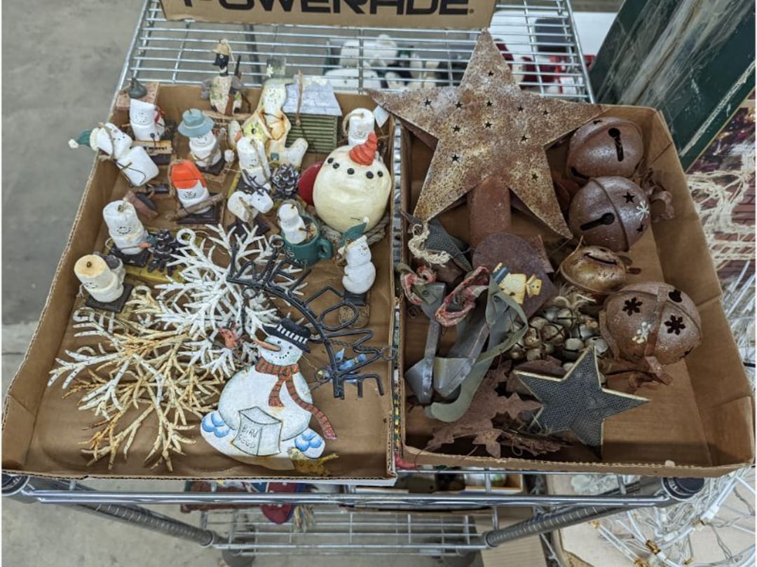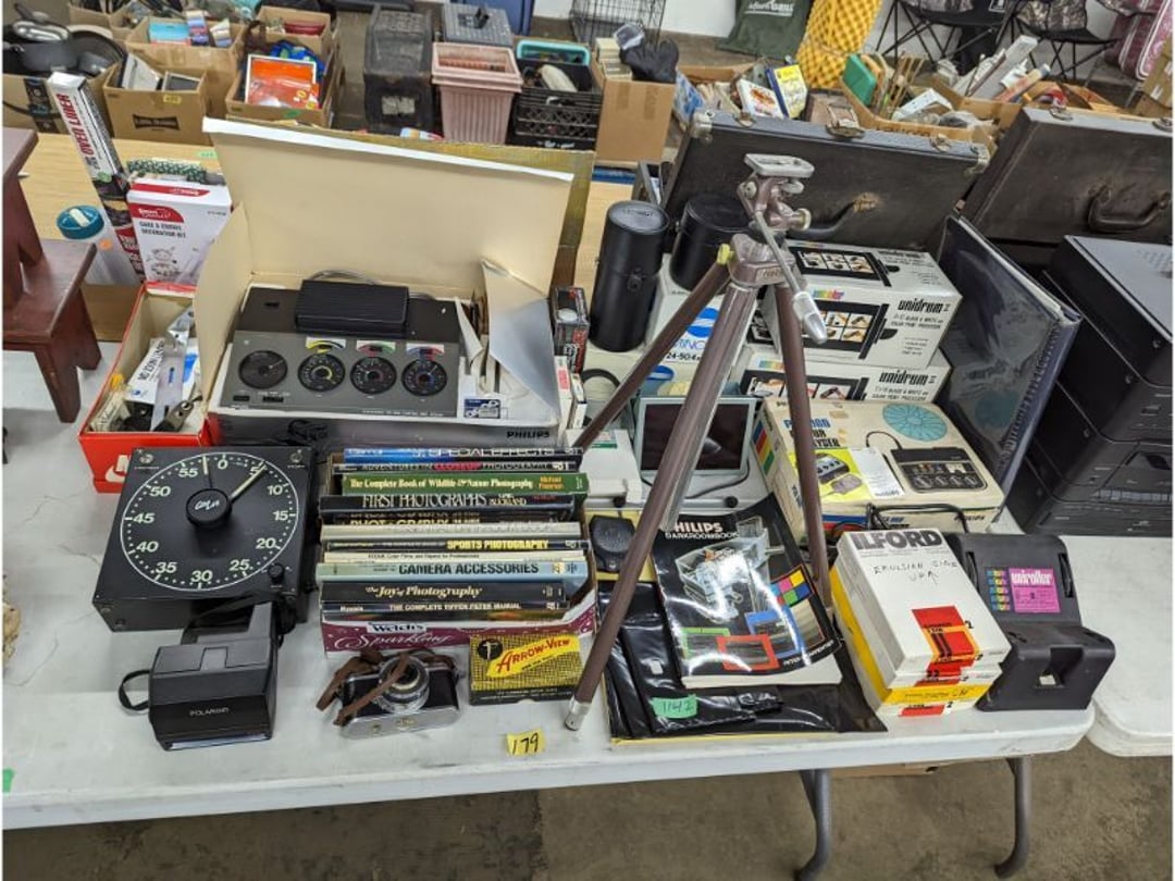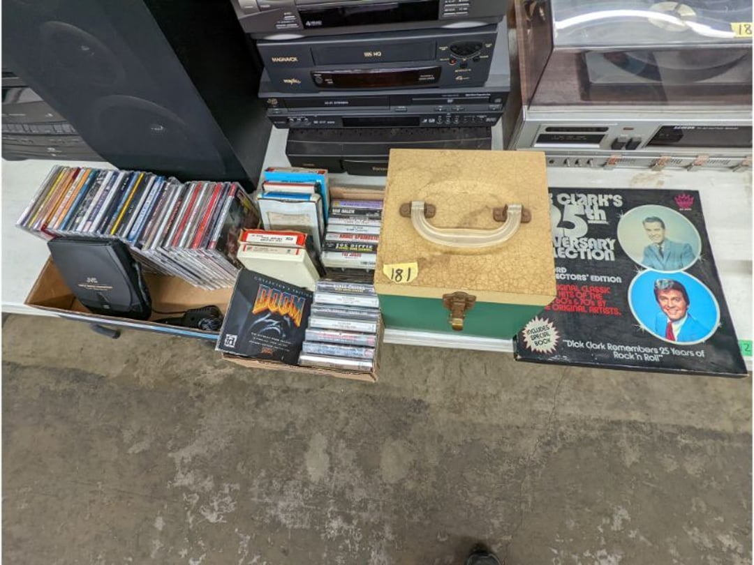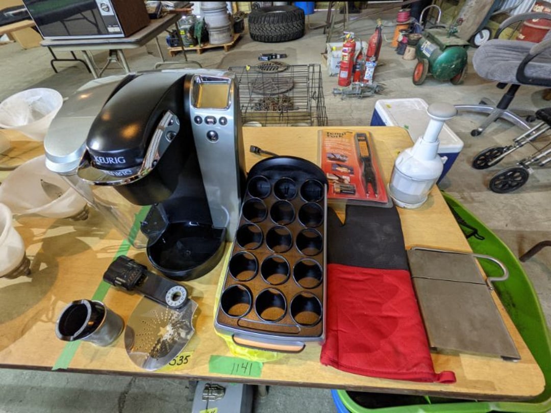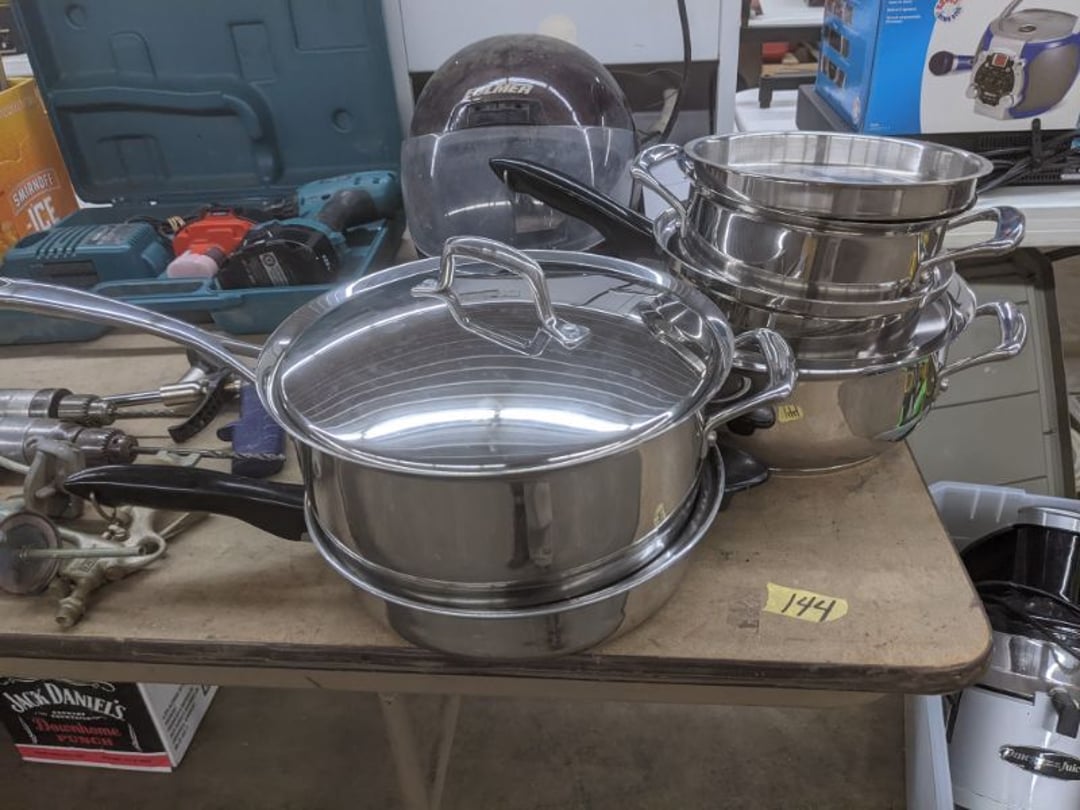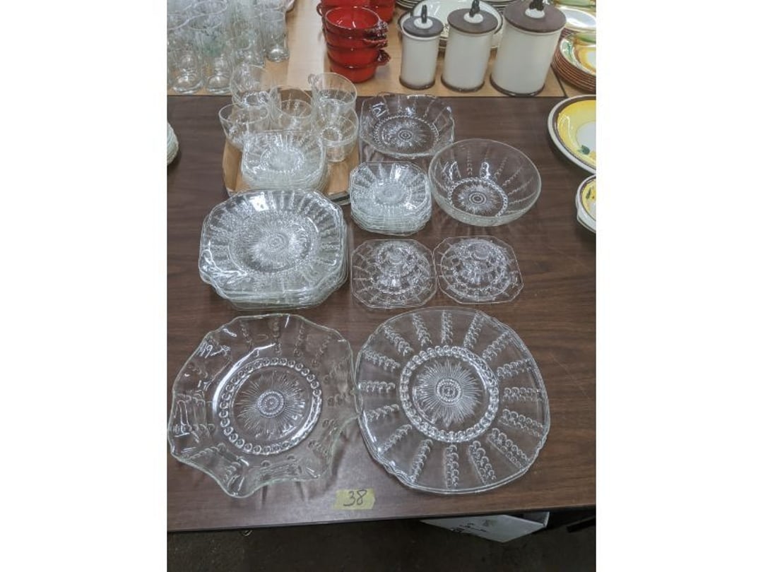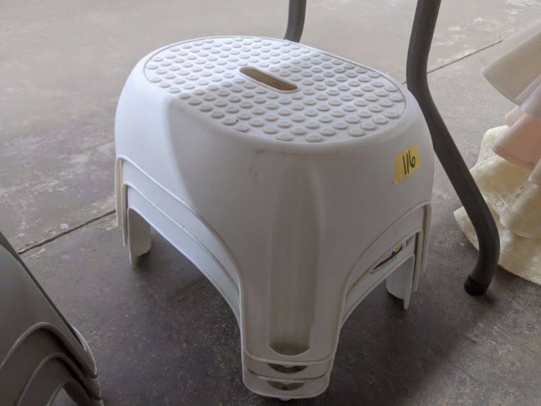 Gear pullers- Horse tie off- 2 Class rings - IU & Heritage Highschool- Pepsi Thermometer- Kissing Angels, Mickey Mouse plate, 2 Baldwin candlesticks- Oster Microwave- Ladies purses, Sm. Rival Crockpot- Hoover PortaPower Vacumn- Yamaha AV Reciever- Sony 3 way Speaker System- HP Desk Jet 1512 -Print, Scan, Copy- Bed Comforter & Signs- LG Blu-Ray Disc Player, Psyc CD Walkman- Paintbrushes, Tool balances, Misc. Tools- Air grinder stones, air tools, & Craftsman Table Saw Molding Head Insert- Vintage Mailbox & GE light switch- Hunting Gear- Tackle box, fishing gear & décor- Sidewinder Sewer Hose support- Electric Craftsman stapler, misc. tools, & organizer boxes- Haier 24" Mini Fridge- Wagner Power Painter- Little Tikes Plastic Child's slide 36"- Little Tikes Basketball Hoop- 3 pieces Leisure Luggage- 19"x24" Pet Cage- Coleman Camping Shelter & adjustable grill- 2 Northwest Territory Camping Chairs- Wolf Mattress & Boxspring - double - Handcrafted Live Edge Table/stool w/ Epoxy inlay- Handcrafted Live Edge Table/stool w/ Epoxy inlay- Handcrafted Wood w/Epoxy inlay- Handcrafted Wooden small table- Lefton China - Lily of the Valley- West Morlan Paneled Grape & Depression divided dish- 70+ pcs. Fire King Swirl dishes'- 40 pcs. Columbia Depression glass- Vernon Kilns Black Eyed Susan- 15 Tiffin glass- Royal China - Fair Oaks, serves 4- Vintage Tupperware- Aircraft wire rope & Ice tongs- Rubber Tarp straps - Indian University Memorabilia- Drawing/Ballot Box w/ tickets- M&M sm. Figurines- Kerosene Lamps w/ cast iron wall brackets- 5 pcs. Milk glass, Hersey kisses candy dish, & Apollo 11 glass - Heisey Glass - cream & sugar, & mint trays- Dunlop tire ashtray & 2 brown glass ashtrays- 2 Imperial blue glass plates- Large Imperial blue glass bowl- 3 small Imperial glass bowls- Carnival glass candy dish- Imperial Slag glass sugar bowl- 3 speakers- Akai Stero reciever - Sony Audio/Video Control Center- Pabst Blue Ribbon mirror- Jeff Gordon & Tiger Woods Pictures- Vintage Pictures- Vintage Shelf, children books, & kitchenware- Vintage Lampshade & 4 pictures- 7 pcs china bowls- Large painted glass sun catcher - 36" & sm. Picture- 3 Lamps- Depression, Corelle, & glassware- Vintage Printing Press letter block shelf- 4 Misc. Pictures- Musical Bell Suymphonium – Trombone- Up Easy lifting cushion- Lionel Trains windup Railroad Handcar- 4 Four Seasons Music box Horses & Wooden music box trolley- 3 Pocket Watches, Brighton clock, pewter bowl, pocket knives, misc.- Haviland china - serves 12- Vintage wooden box of nails- Hawthorne Thomas KinKade Village- 8 pcs. Fire King- Hall China Tavern Scene- Cookbooks- 10 pcs. Fostoria Stemware- Corelle - serves 8- Vernonware Homespun- Merlot Poppy Trail Rooster dishes w/canisters- Corelle Callawa Ivy w/ coffee mugs & glasses- Corelle cups - misc. - Pyrex bowls, casserole, Corningware bakeware- Pink Fenton- 6 red glasses & compote - Real English figurines, Goebel ornaments, & Vintage Children's book- Dishes & small knife set- Music boxes- Snow globes, & Avon perfume bottles- Rose mailing Red candle holders, misc. Christmas- Haviland china- Postcards, vintage National park booklets, vintage misc.- Vintage Erector set & misc. games- Cameras & accessories -Musical Ferris Wheel- Lighted pictures & misc. pictures- Bed is Humidifier filters, GE clock radio, Tierra glass- Yard ornaments & wall pocket- Records Albumns- DVDs - 60 CDs- Lamps- 3 Gray plastic stools- 3 White plastic stools- Vintage Scale- Venturer under cabinet DVD player- Bradford Exchange Russian Legend Set plates & 2 misc.- Electric Colormode Percolater & basket set- View Master w/ discs & misc. children's toys- Misc. Children’s Toys- 3 Metal trucks & wooden semi- Stetson & Resistol Cowboy Hats w/case- Cast Iron Ship Doorstop- 4 Fisher Price Buildings w/accessories - 2 Jack in the Pulpit vases & misc. glass- Misc. china- Florentine China - serves 12- 5 pcs. Fire King bakeware & Pyrex casserole + The Paden City Pottery Co. - serves 12- The Paden City Pottery Co. - serves 12- Temp-tations ovenware by Tara- 6 totes- RCA turntable & Pioneer Stereo Receiver - Record Albums- Mikita Maktec drill w/charger & battery- Air tools- Motorcycle SPH10 Bluetooth Headsets & Intercom + 1 Helmet- Budweiser Clock- Kirkland Professional Quality Pots & Pans- Omega Juicer & Mr. Coffee maker- Kinetic bike trainer - extension cord- Wayne Lawn Pump Utility pump - Wagner Power Roller Plus- 4 Phaltzgraft canisters & 3 glass bowls- Whirlpool over the stove microwave- Vintage Matchbooks, cigar boxes & tote bag- Kitchen appliances- Magnacox Portable DVD player, samsung phone, misc.- Kitchenware, Osterizer blender, & toastmaster waffle maker- Baseball cards - 1985, 1990, 2000- Blue glass dishes- Books- Hitachi VCR, Memorix Portable Karaoke Machine- Outers Pistol Perch- Angel picture & collage frame- Magic Chef Mini fridge- Vintage pulley & hooks- Vintage pitchers & mugs- Large Wooden Bowl- Linens, aprons, Colts tee shirts, misc.- Silver plated punch bowl & goblets- Rodgers silver plated tea pots & cream & sugar- animal figurines- Sheridan silver plated tea pot, cream & sugar, cups, misc.- Cut glass dishes- Crystal dishes- Silver plated dishes- Longenberger basket, wooden nesting pieces- 9 Precious Moments-Christmas - electric merry-go-round, misc.- Paper cutting board, 2 rag rugs- Lg. Brass deer, stone clock, 3 sm. Benches, Ty bear, etc.- Photography equipment & accessories- Magnavox tuner, amplifier, tape deck, CD player- CDs, tapes, 45s, 1 record album- 3 VHS players & Panasonic satellite receiver - Lloyd's record player, 8 track, AM-FM receiver w/2speakers- Sheller & coon traps- 2 speakers- Hallicrafters World-Wide radio- CBs, Emergency radio, etc.- Vintage Singer Sewing machine- Black & Decker 5" grinder & Olympia vice- Duracraft Bench grinder - Powr-Kraft drill, Black & Decker Jig Saw, misc.- Black & Decker mouse, Craftsman sander, Wen soldering gun, & mitering kit- Stereo Headphones, Prism binoculars, 2 Eliminator - Rockwell sander/polishe