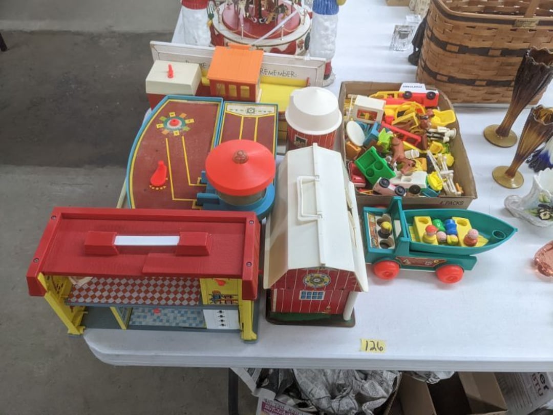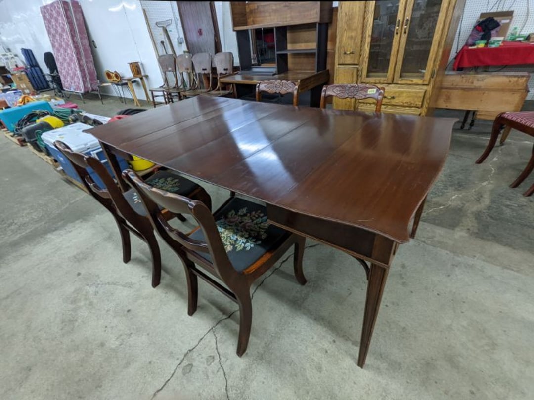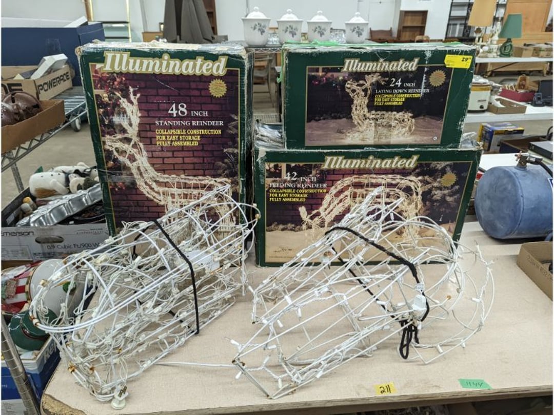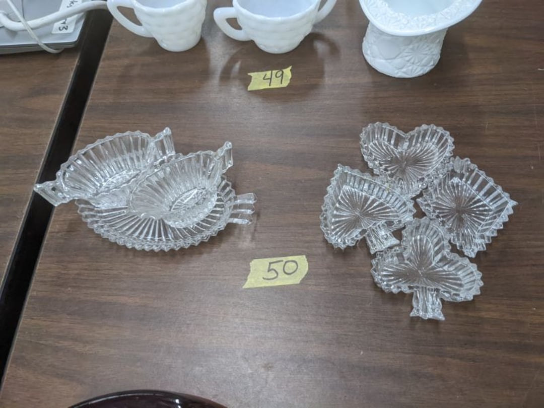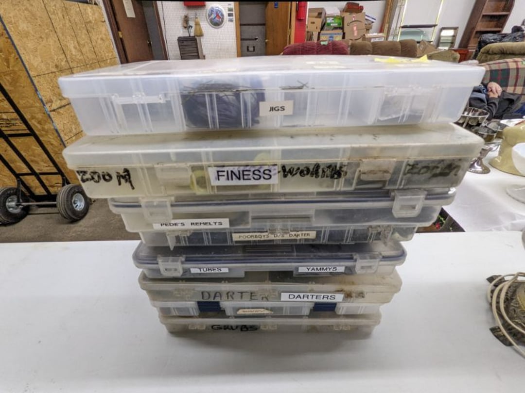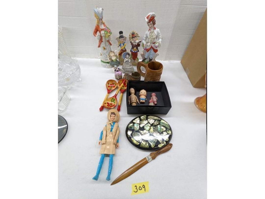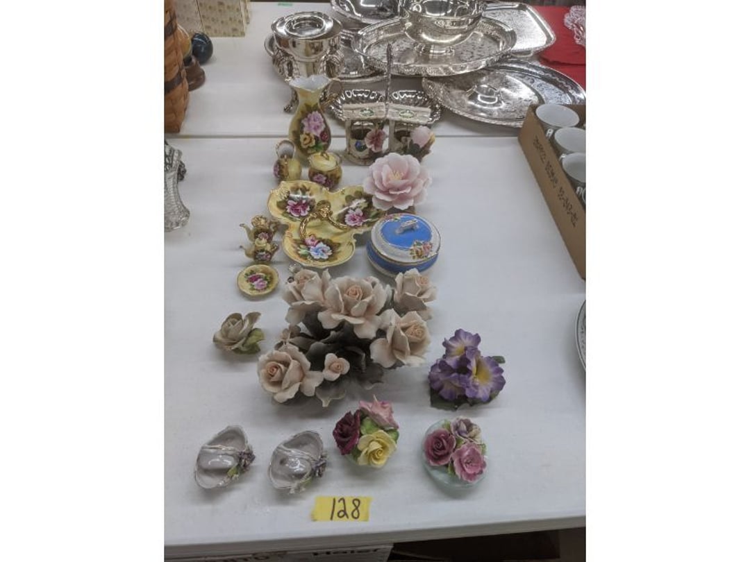 Gear pullers- Horse tie off- 2 Class rings - IU & Heritage Highschool- Pepsi Thermometer- Kissing Angels, Mickey Mouse plate, 2 Baldwin candlesticks- Oster Microwave- Ladies purses, Sm. Rival Crockpot- Hoover PortaPower Vacumn- Yamaha AV Reciever- Sony 3 way Speaker System- HP Desk Jet 1512 -Print, Scan, Copy- Bed Comforter & Signs- LG Blu-Ray Disc Player, Psyc CD Walkman- Paintbrushes, Tool balances, Misc. Tools- Air grinder stones, air tools, & Craftsman Table Saw Molding Head Insert- Vintage Mailbox & GE light switch- Hunting Gear- Tackle box, fishing gear & décor- Sidewinder Sewer Hose support- Electric Craftsman stapler, misc. tools, & organizer boxes- Haier 24" Mini Fridge- Wagner Power Painter- Little Tikes Plastic Child's slide 36"- Little Tikes Basketball Hoop- 3 pieces Leisure Luggage- 19"x24" Pet Cage- Coleman Camping Shelter & adjustable grill- 2 Northwest Territory Camping Chairs- Wolf Mattress & Boxspring - double - Handcrafted Live Edge Table/stool w/ Epoxy inlay- Handcrafted Live Edge Table/stool w/ Epoxy inlay- Handcrafted Wood w/Epoxy inlay- Handcrafted Wooden small table- Lefton China - Lily of the Valley- West Morlan Paneled Grape & Depression divided dish- 70+ pcs. Fire King Swirl dishes'- 40 pcs. Columbia Depression glass- Vernon Kilns Black Eyed Susan- 15 Tiffin glass- Royal China - Fair Oaks, serves 4- Vintage Tupperware- Aircraft wire rope & Ice tongs- Rubber Tarp straps - Indian University Memorabilia- Drawing/Ballot Box w/ tickets- M&M sm. Figurines- Kerosene Lamps w/ cast iron wall brackets- 5 pcs. Milk glass, Hersey kisses candy dish, & Apollo 11 glass - Heisey Glass - cream & sugar, & mint trays- Dunlop tire ashtray & 2 brown glass ashtrays- 2 Imperial blue glass plates- Large Imperial blue glass bowl- 3 small Imperial glass bowls- Carnival glass candy dish- Imperial Slag glass sugar bowl- 3 speakers- Akai Stero reciever - Sony Audio/Video Control Center- Pabst Blue Ribbon mirror- Jeff Gordon & Tiger Woods Pictures- Vintage Pictures- Vintage Shelf, children books, & kitchenware- Vintage Lampshade & 4 pictures- 7 pcs china bowls- Large painted glass sun catcher - 36" & sm. Picture- 3 Lamps- Depression, Corelle, & glassware- Vintage Printing Press letter block shelf- 4 Misc. Pictures- Musical Bell Suymphonium – Trombone- Up Easy lifting cushion- Lionel Trains windup Railroad Handcar- 4 Four Seasons Music box Horses & Wooden music box trolley- 3 Pocket Watches, Brighton clock, pewter bowl, pocket knives, misc.- Haviland china - serves 12- Vintage wooden box of nails- Hawthorne Thomas KinKade Village- 8 pcs. Fire King- Hall China Tavern Scene- Cookbooks- 10 pcs. Fostoria Stemware- Corelle - serves 8- Vernonware Homespun- Merlot Poppy Trail Rooster dishes w/canisters- Corelle Callawa Ivy w/ coffee mugs & glasses- Corelle cups - misc. - Pyrex bowls, casserole, Corningware bakeware- Pink Fenton- 6 red glasses & compote - Real English figurines, Goebel ornaments, & Vintage Children's book- Dishes & small knife set- Music boxes- Snow globes, & Avon perfume bottles- Rose mailing Red candle holders, misc. Christmas- Haviland china- Postcards, vintage National park booklets, vintage misc.- Vintage Erector set & misc. games- Cameras & accessories -Musical Ferris Wheel- Lighted pictures & misc. pictures- Bed is Humidifier filters, GE clock radio, Tierra glass- Yard ornaments & wall pocket- Records Albumns- DVDs - 60 CDs- Lamps- 3 Gray plastic stools- 3 White plastic stools- Vintage Scale- Venturer under cabinet DVD player- Bradford Exchange Russian Legend Set plates & 2 misc.- Electric Colormode Percolater & basket set- View Master w/ discs & misc. children's toys- Misc. Children’s Toys- 3 Metal trucks & wooden semi- Stetson & Resistol Cowboy Hats w/case- Cast Iron Ship Doorstop- 4 Fisher Price Buildings w/accessories - 2 Jack in the Pulpit vases & misc. glass- Misc. china- Florentine China - serves 12- 5 pcs. Fire King bakeware & Pyrex casserole + The Paden City Pottery Co. - serves 12- The Paden City Pottery Co. - serves 12- Temp-tations ovenware by Tara- 6 totes- RCA turntable & Pioneer Stereo Receiver - Record Albums- Mikita Maktec drill w/charger & battery- Air tools- Motorcycle SPH10 Bluetooth Headsets & Intercom + 1 Helmet- Budweiser Clock- Kirkland Professional Quality Pots & Pans- Omega Juicer & Mr. Coffee maker- Kinetic bike trainer - extension cord- Wayne Lawn Pump Utility pump - Wagner Power Roller Plus- 4 Phaltzgraft canisters & 3 glass bowls- Whirlpool over the stove microwave- Vintage Matchbooks, cigar boxes & tote bag- Kitchen appliances- Magnacox Portable DVD player, samsung phone, misc.- Kitchenware, Osterizer blender, & toastmaster waffle maker- Baseball cards - 1985, 1990, 2000- Blue glass dishes- Books- Hitachi VCR, Memorix Portable Karaoke Machine- Outers Pistol Perch- Angel picture & collage frame- Magic Chef Mini fridge- Vintage pulley & hooks- Vintage pitchers & mugs- Large Wooden Bowl- Linens, aprons, Colts tee shirts, misc.- Silver plated punch bowl & goblets- Rodgers silver plated tea pots & cream & sugar- animal figurines- Sheridan silver plated tea pot, cream & sugar, cups, misc.- Cut glass dishes- Crystal dishes- Silver plated dishes- Longenberger basket, wooden nesting pieces- 9 Precious Moments-Christmas - electric merry-go-round, misc.- Paper cutting board, 2 rag rugs- Lg. Brass deer, stone clock, 3 sm. Benches, Ty bear, etc.- Photography equipment & accessories- Magnavox tuner, amplifier, tape deck, CD player- CDs, tapes, 45s, 1 record album- 3 VHS players & Panasonic satellite receiver - Lloyd's record player, 8 track, AM-FM receiver w/2speakers- Sheller & coon traps- 2 speakers- Hallicrafters World-Wide radio- CBs, Emergency radio, etc.- Vintage Singer Sewing machine- Black & Decker 5" grinder & Olympia vice- Duracraft Bench grinder - Powr-Kraft drill, Black & Decker Jig Saw, misc.- Black & Decker mouse, Craftsman sander, Wen soldering gun, & mitering kit- Stereo Headphones, Prism binoculars, 2 Eliminator - Rockwell sander/polishe