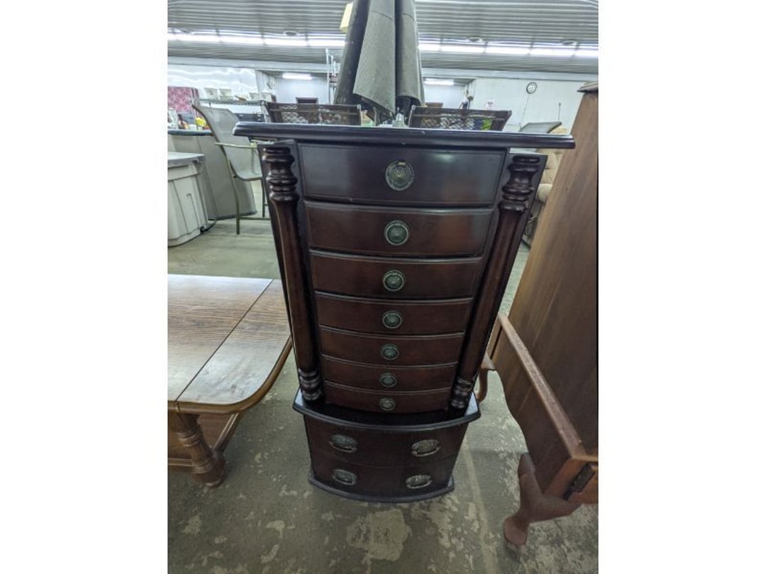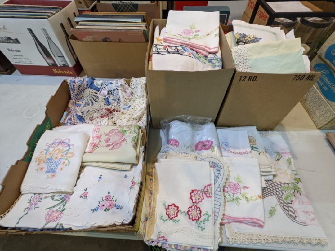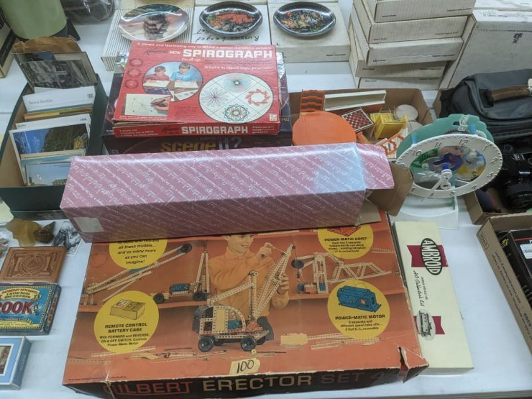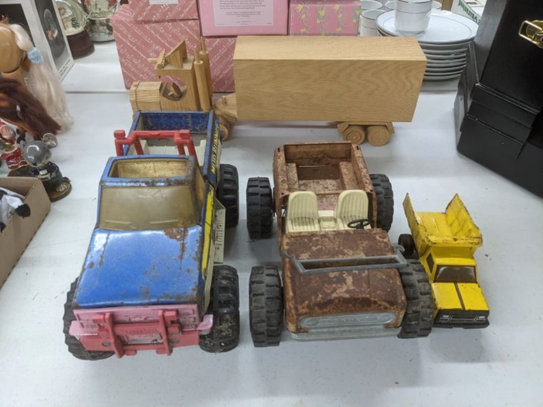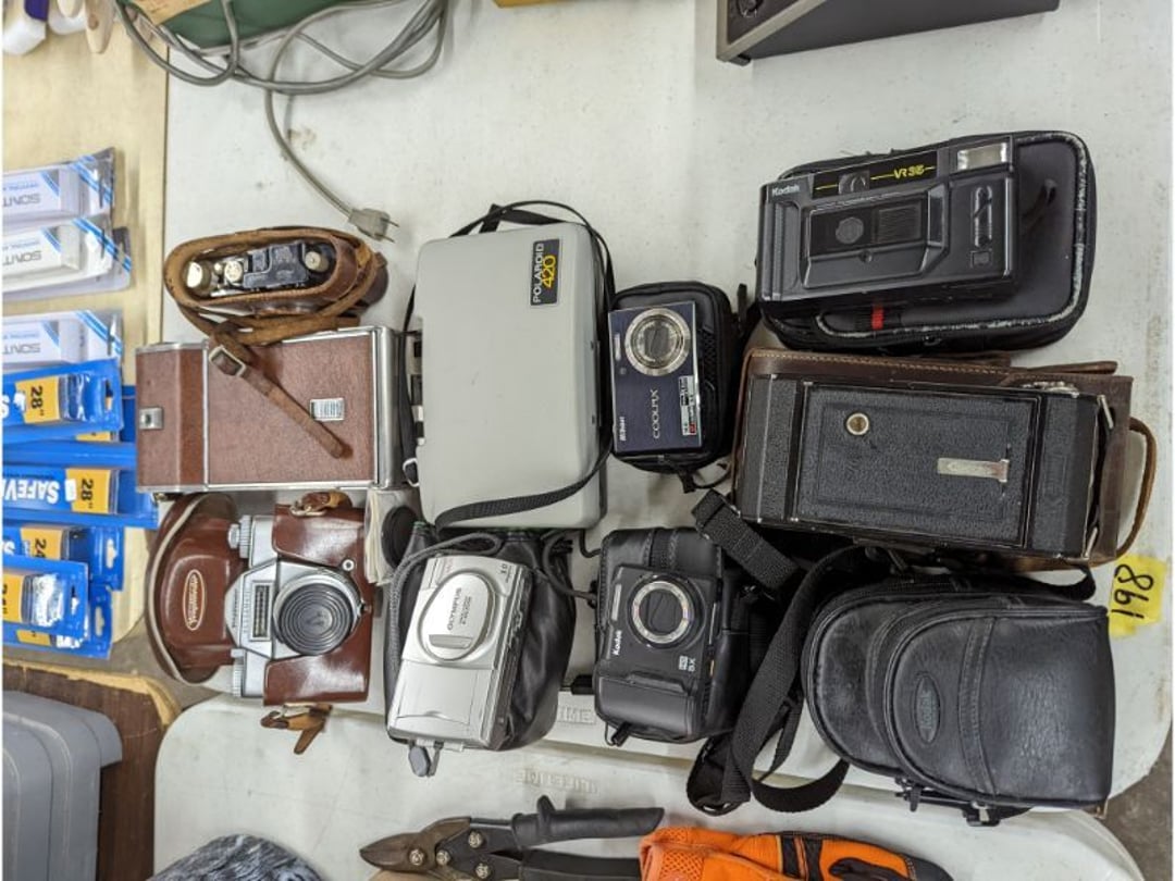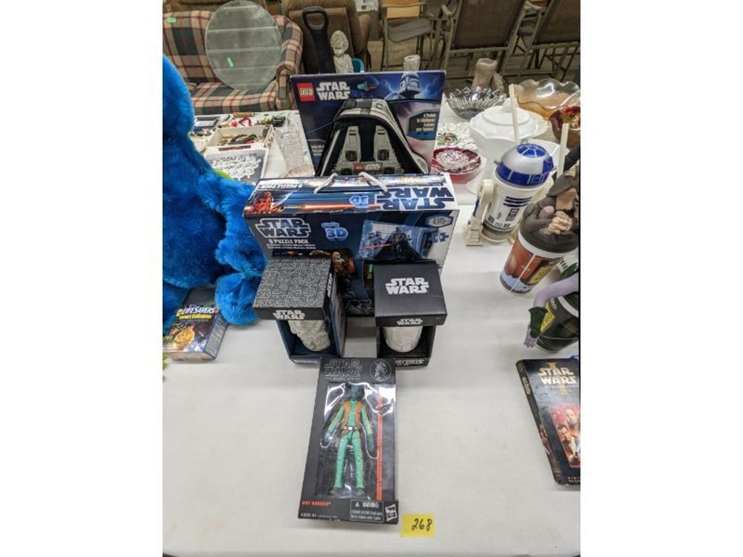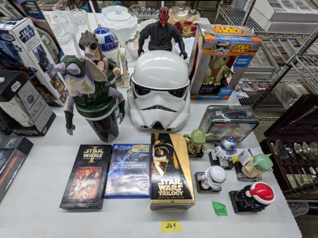 Gear pullers- Horse tie off- 2 Class rings - IU & Heritage Highschool- Pepsi Thermometer- Kissing Angels, Mickey Mouse plate, 2 Baldwin candlesticks- Oster Microwave- Ladies purses, Sm. Rival Crockpot- Hoover PortaPower Vacumn- Yamaha AV Reciever- Sony 3 way Speaker System- HP Desk Jet 1512 -Print, Scan, Copy- Bed Comforter & Signs- LG Blu-Ray Disc Player, Psyc CD Walkman- Paintbrushes, Tool balances, Misc. Tools- Air grinder stones, air tools, & Craftsman Table Saw Molding Head Insert- Vintage Mailbox & GE light switch- Hunting Gear- Tackle box, fishing gear & décor- Sidewinder Sewer Hose support- Electric Craftsman stapler, misc. tools, & organizer boxes- Haier 24" Mini Fridge- Wagner Power Painter- Little Tikes Plastic Child's slide 36"- Little Tikes Basketball Hoop- 3 pieces Leisure Luggage- 19"x24" Pet Cage- Coleman Camping Shelter & adjustable grill- 2 Northwest Territory Camping Chairs- Wolf Mattress & Boxspring - double - Handcrafted Live Edge Table/stool w/ Epoxy inlay- Handcrafted Live Edge Table/stool w/ Epoxy inlay- Handcrafted Wood w/Epoxy inlay- Handcrafted Wooden small table- Lefton China - Lily of the Valley- West Morlan Paneled Grape & Depression divided dish- 70+ pcs. Fire King Swirl dishes'- 40 pcs. Columbia Depression glass- Vernon Kilns Black Eyed Susan- 15 Tiffin glass- Royal China - Fair Oaks, serves 4- Vintage Tupperware- Aircraft wire rope & Ice tongs- Rubber Tarp straps - Indian University Memorabilia- Drawing/Ballot Box w/ tickets- M&M sm. Figurines- Kerosene Lamps w/ cast iron wall brackets- 5 pcs. Milk glass, Hersey kisses candy dish, & Apollo 11 glass - Heisey Glass - cream & sugar, & mint trays- Dunlop tire ashtray & 2 brown glass ashtrays- 2 Imperial blue glass plates- Large Imperial blue glass bowl- 3 small Imperial glass bowls- Carnival glass candy dish- Imperial Slag glass sugar bowl- 3 speakers- Akai Stero reciever - Sony Audio/Video Control Center- Pabst Blue Ribbon mirror- Jeff Gordon & Tiger Woods Pictures- Vintage Pictures- Vintage Shelf, children books, & kitchenware- Vintage Lampshade & 4 pictures- 7 pcs china bowls- Large painted glass sun catcher - 36" & sm. Picture- 3 Lamps- Depression, Corelle, & glassware- Vintage Printing Press letter block shelf- 4 Misc. Pictures- Musical Bell Suymphonium – Trombone- Up Easy lifting cushion- Lionel Trains windup Railroad Handcar- 4 Four Seasons Music box Horses & Wooden music box trolley- 3 Pocket Watches, Brighton clock, pewter bowl, pocket knives, misc.- Haviland china - serves 12- Vintage wooden box of nails- Hawthorne Thomas KinKade Village- 8 pcs. Fire King- Hall China Tavern Scene- Cookbooks- 10 pcs. Fostoria Stemware- Corelle - serves 8- Vernonware Homespun- Merlot Poppy Trail Rooster dishes w/canisters- Corelle Callawa Ivy w/ coffee mugs & glasses- Corelle cups - misc. - Pyrex bowls, casserole, Corningware bakeware- Pink Fenton- 6 red glasses & compote - Real English figurines, Goebel ornaments, & Vintage Children's book- Dishes & small knife set- Music boxes- Snow globes, & Avon perfume bottles- Rose mailing Red candle holders, misc. Christmas- Haviland china- Postcards, vintage National park booklets, vintage misc.- Vintage Erector set & misc. games- Cameras & accessories -Musical Ferris Wheel- Lighted pictures & misc. pictures- Bed is Humidifier filters, GE clock radio, Tierra glass- Yard ornaments & wall pocket- Records Albumns- DVDs - 60 CDs- Lamps- 3 Gray plastic stools- 3 White plastic stools- Vintage Scale- Venturer under cabinet DVD player- Bradford Exchange Russian Legend Set plates & 2 misc.- Electric Colormode Percolater & basket set- View Master w/ discs & misc. children's toys- Misc. Children’s Toys- 3 Metal trucks & wooden semi- Stetson & Resistol Cowboy Hats w/case- Cast Iron Ship Doorstop- 4 Fisher Price Buildings w/accessories - 2 Jack in the Pulpit vases & misc. glass- Misc. china- Florentine China - serves 12- 5 pcs. Fire King bakeware & Pyrex casserole + The Paden City Pottery Co. - serves 12- The Paden City Pottery Co. - serves 12- Temp-tations ovenware by Tara- 6 totes- RCA turntable & Pioneer Stereo Receiver - Record Albums- Mikita Maktec drill w/charger & battery- Air tools- Motorcycle SPH10 Bluetooth Headsets & Intercom + 1 Helmet- Budweiser Clock- Kirkland Professional Quality Pots & Pans- Omega Juicer & Mr. Coffee maker- Kinetic bike trainer - extension cord- Wayne Lawn Pump Utility pump - Wagner Power Roller Plus- 4 Phaltzgraft canisters & 3 glass bowls- Whirlpool over the stove microwave- Vintage Matchbooks, cigar boxes & tote bag- Kitchen appliances- Magnacox Portable DVD player, samsung phone, misc.- Kitchenware, Osterizer blender, & toastmaster waffle maker- Baseball cards - 1985, 1990, 2000- Blue glass dishes- Books- Hitachi VCR, Memorix Portable Karaoke Machine- Outers Pistol Perch- Angel picture & collage frame- Magic Chef Mini fridge- Vintage pulley & hooks- Vintage pitchers & mugs- Large Wooden Bowl- Linens, aprons, Colts tee shirts, misc.- Silver plated punch bowl & goblets- Rodgers silver plated tea pots & cream & sugar- animal figurines- Sheridan silver plated tea pot, cream & sugar, cups, misc.- Cut glass dishes- Crystal dishes- Silver plated dishes- Longenberger basket, wooden nesting pieces- 9 Precious Moments-Christmas - electric merry-go-round, misc.- Paper cutting board, 2 rag rugs- Lg. Brass deer, stone clock, 3 sm. Benches, Ty bear, etc.- Photography equipment & accessories- Magnavox tuner, amplifier, tape deck, CD player- CDs, tapes, 45s, 1 record album- 3 VHS players & Panasonic satellite receiver - Lloyd's record player, 8 track, AM-FM receiver w/2speakers- Sheller & coon traps- 2 speakers- Hallicrafters World-Wide radio- CBs, Emergency radio, etc.- Vintage Singer Sewing machine- Black & Decker 5" grinder & Olympia vice- Duracraft Bench grinder - Powr-Kraft drill, Black & Decker Jig Saw, misc.- Black & Decker mouse, Craftsman sander, Wen soldering gun, & mitering kit- Stereo Headphones, Prism binoculars, 2 Eliminator - Rockwell sander/polishe