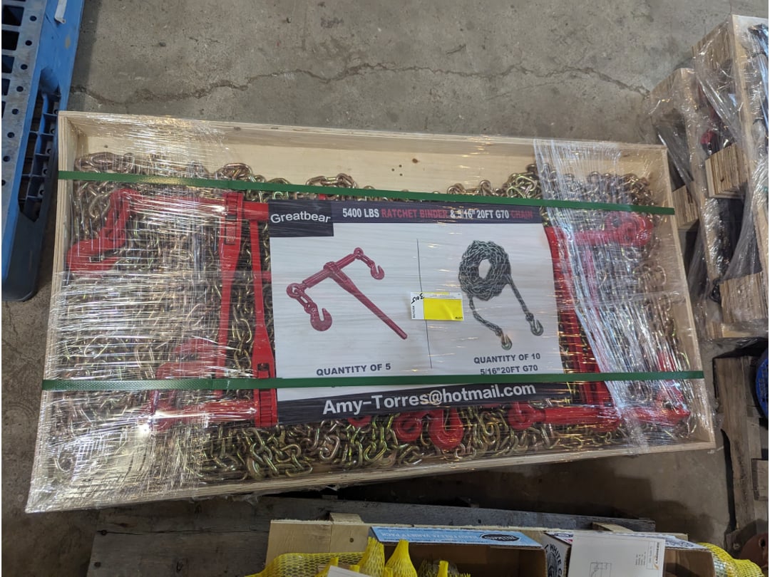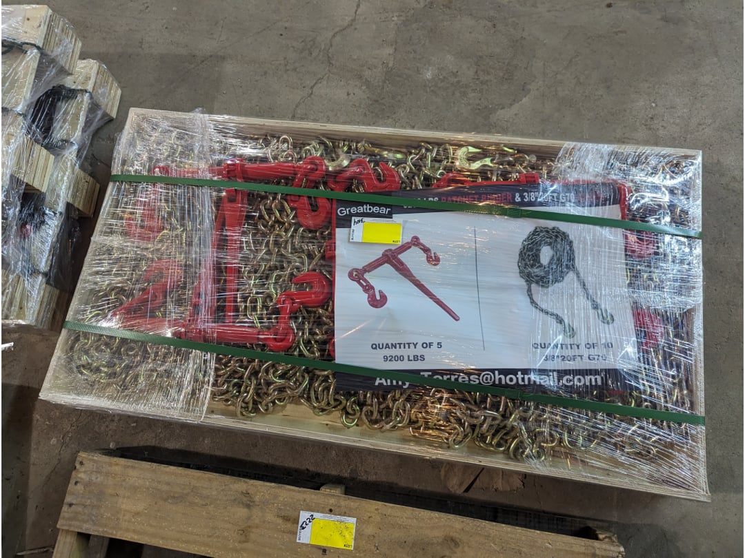 •(5) 9200LBS Ratchet binder and Qty of (10) 3/8" 20FT G70 chain