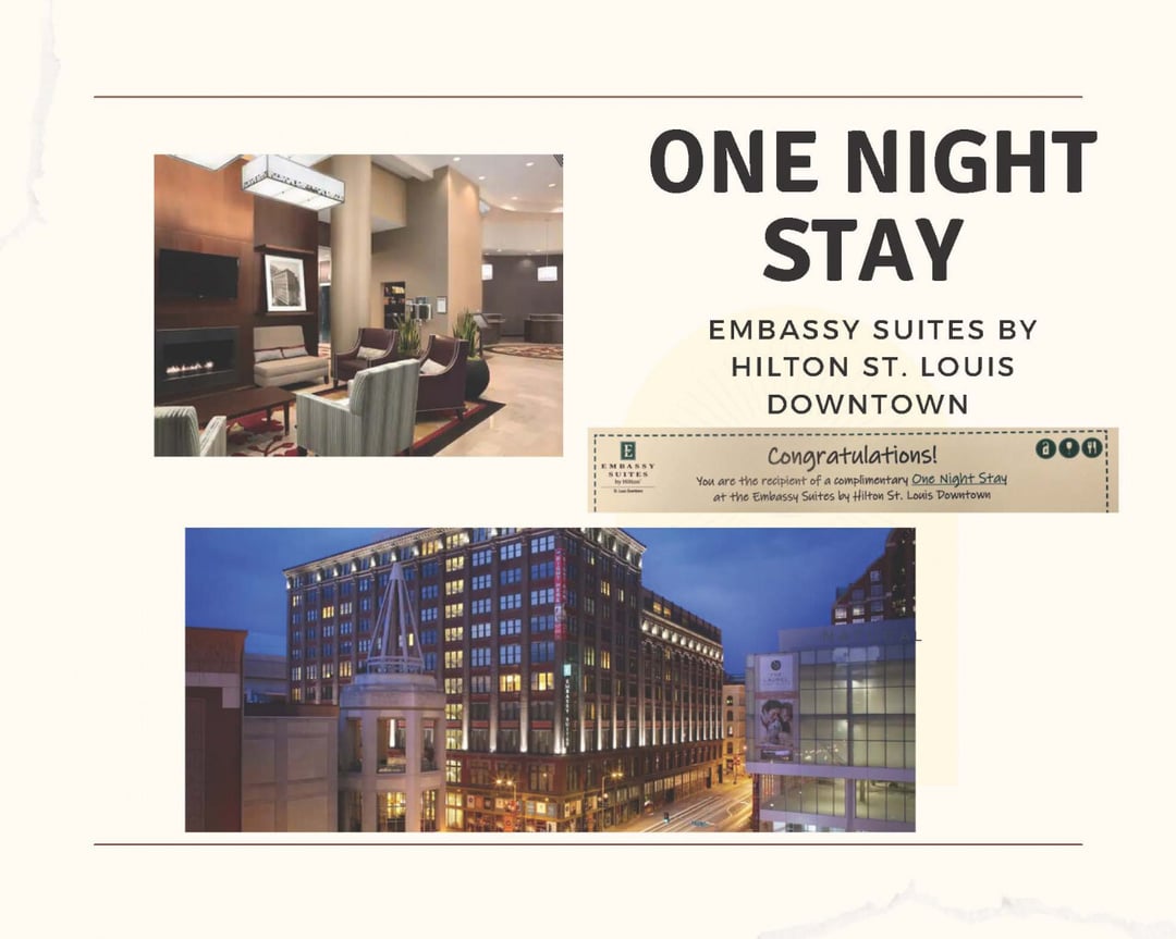 One night stay at Embassy Suites by Hilton St. Louis Downtown