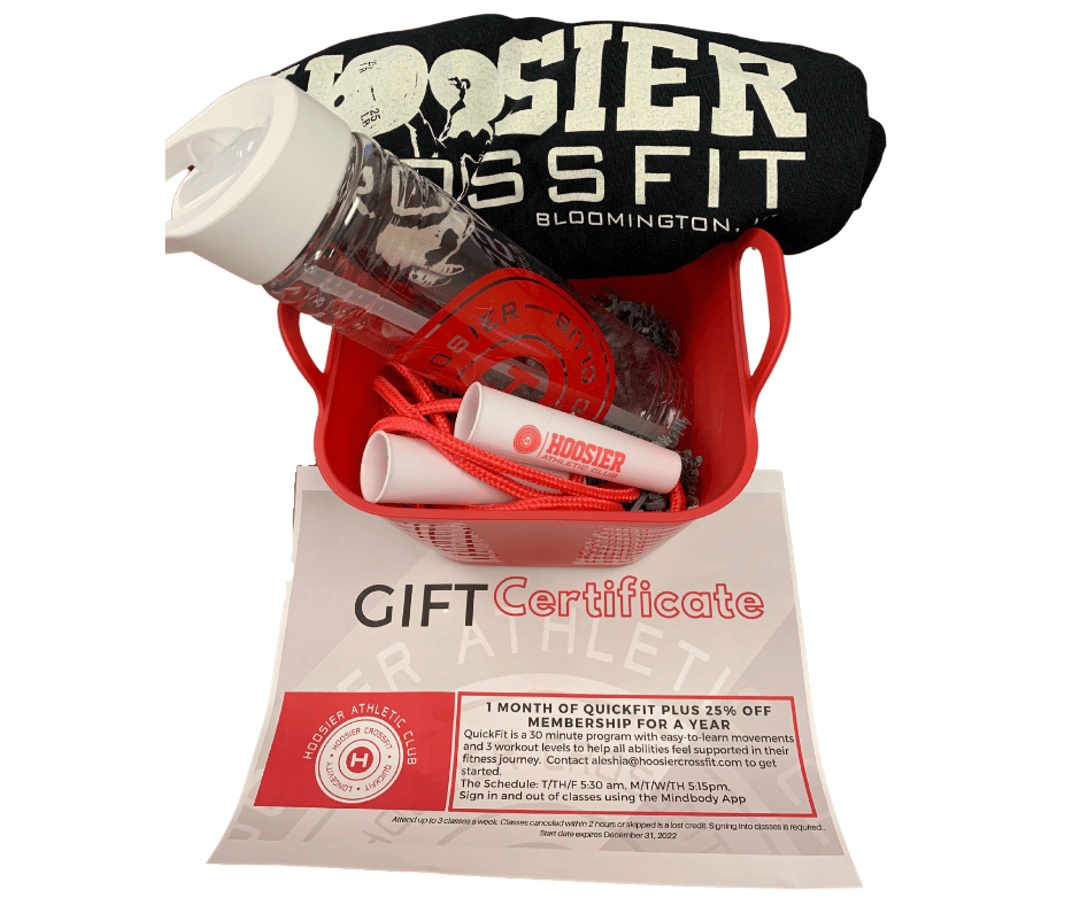 Muscle Maker PackageBasket containing (1) water bottle, (1) jump rope, (1) t-shirt, (1) gift certificate