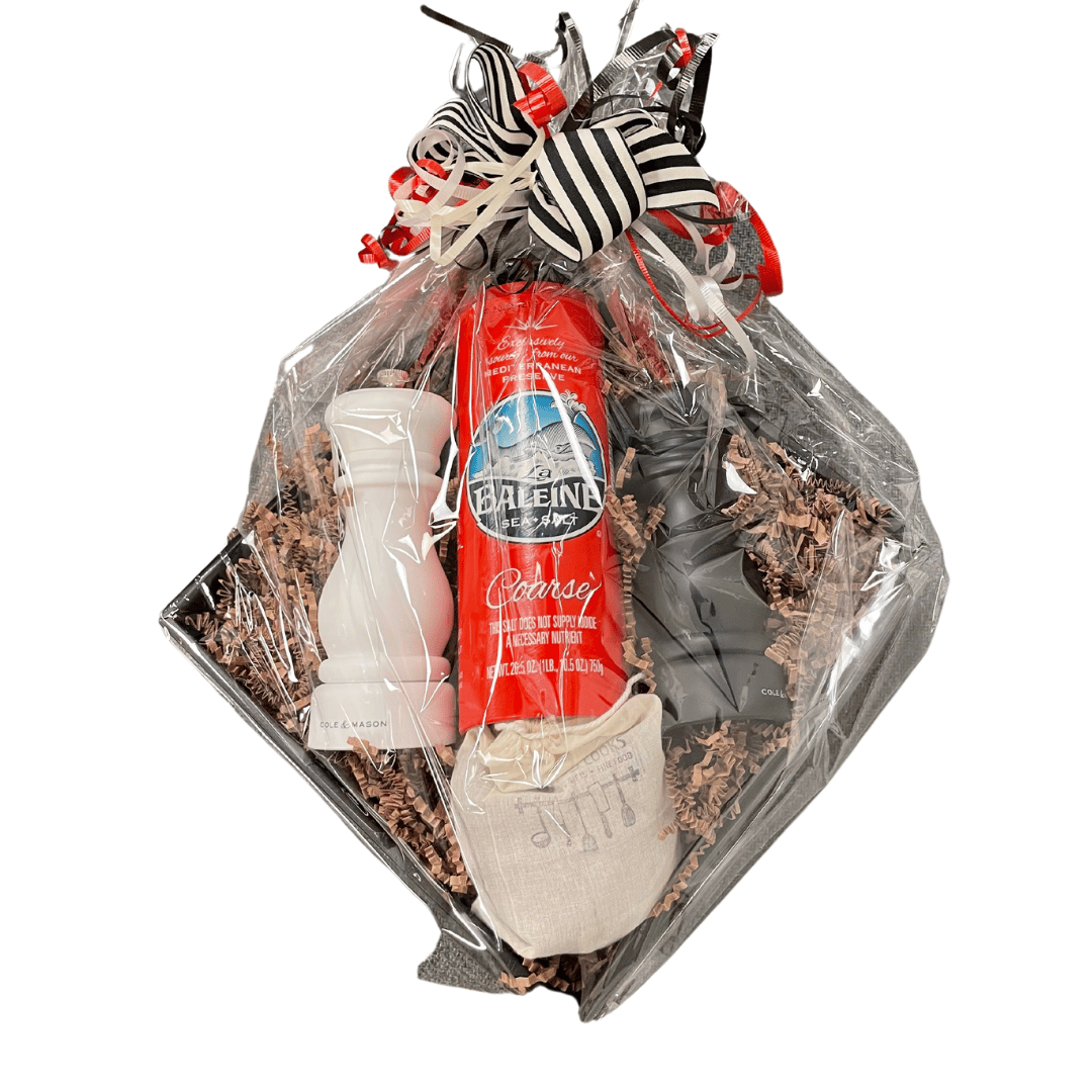 Salt Sisters Steakhouse Seasoning, Bread Dipping Ceramic, House Blend Bread Dipping Olive Oil, 4 Piece Truffle Box, Limestone White Chocolate Bars, Garlic Dill Pretzel Sticks, Tea Tree Mint Bar Soap