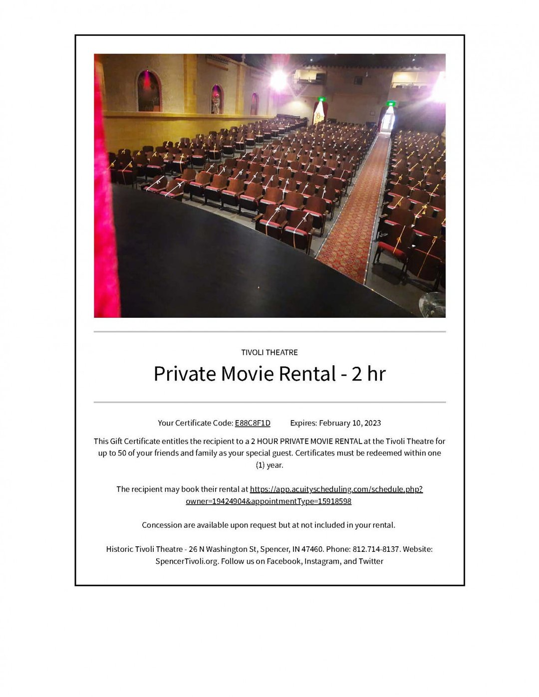 2-Hour Private Showing for up to 50 people at the Tivoli Theatre