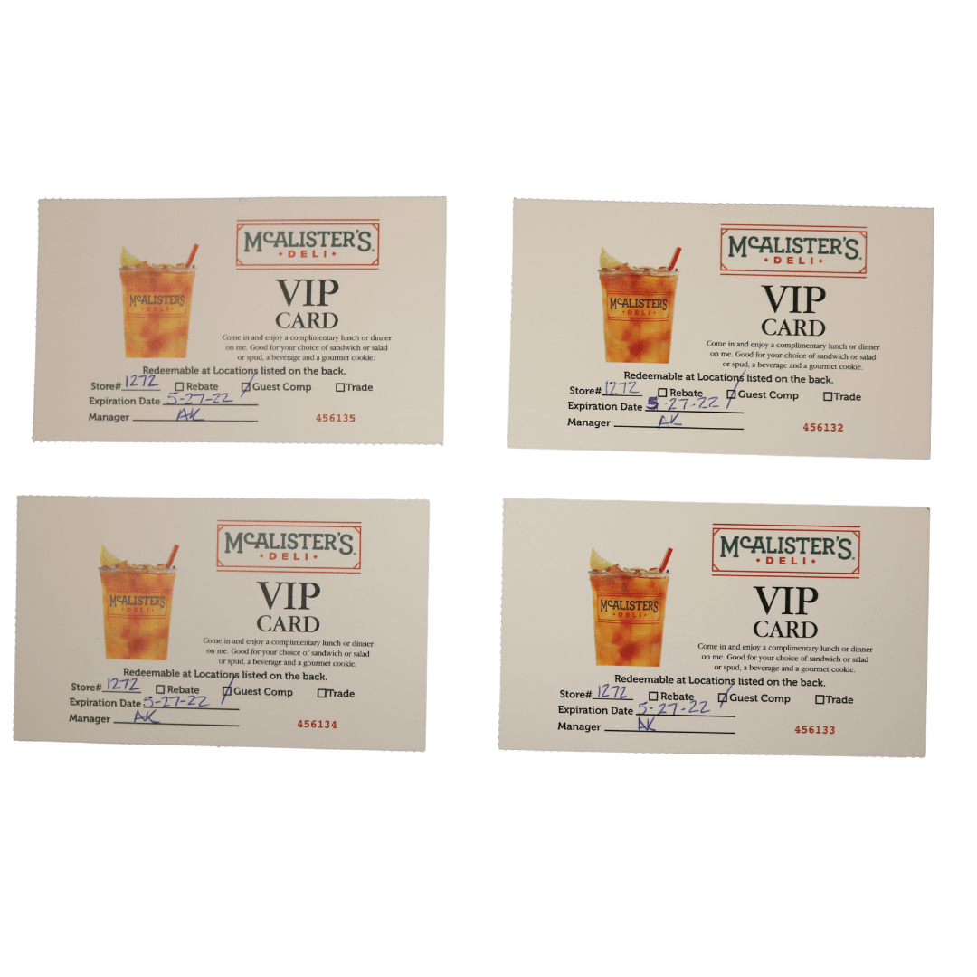 4 VIP Meal Cards