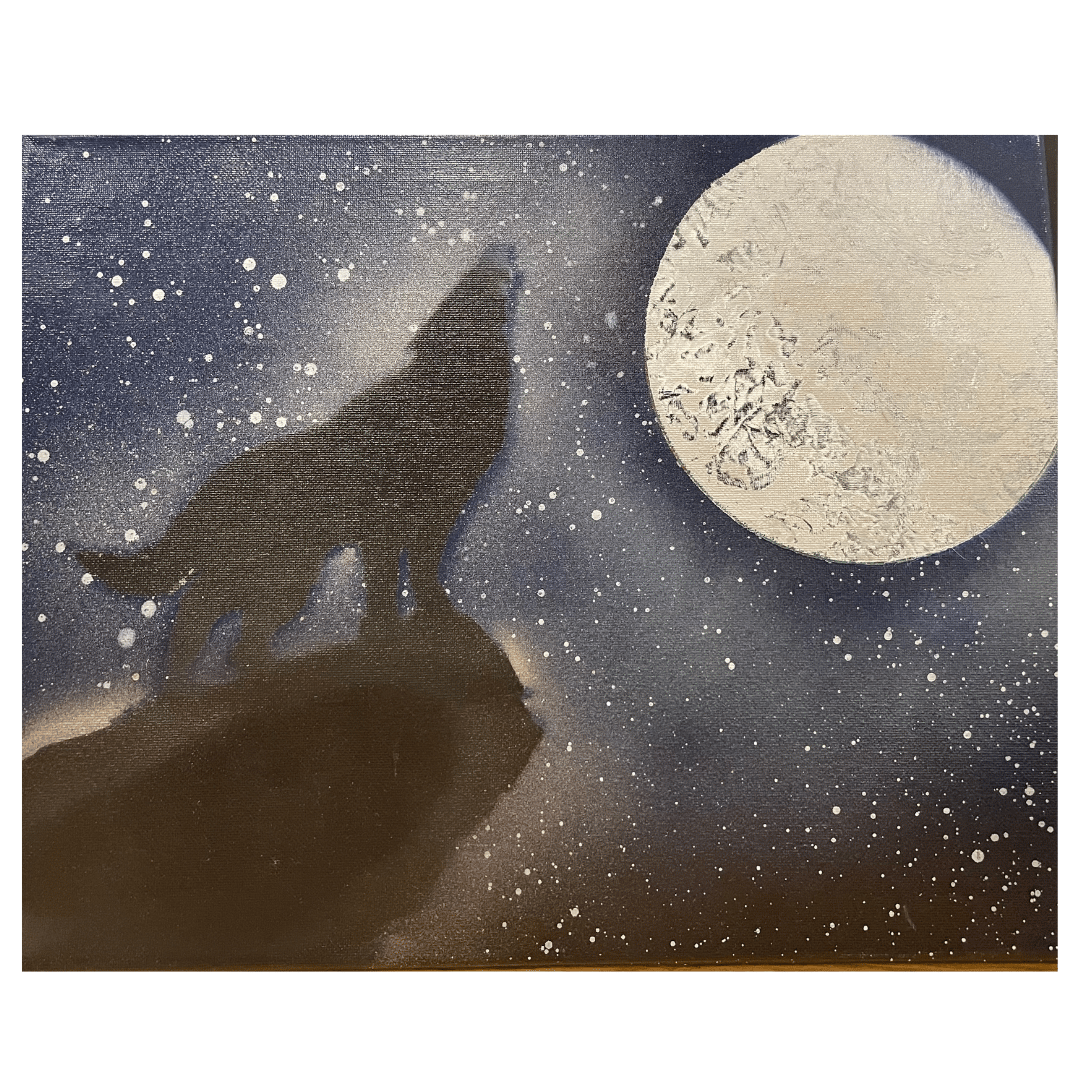 Little Artist - Howling at the Moon Painting by Little Brother SethPainting by Little Brother program participant Seth (12'x16" on canvas)