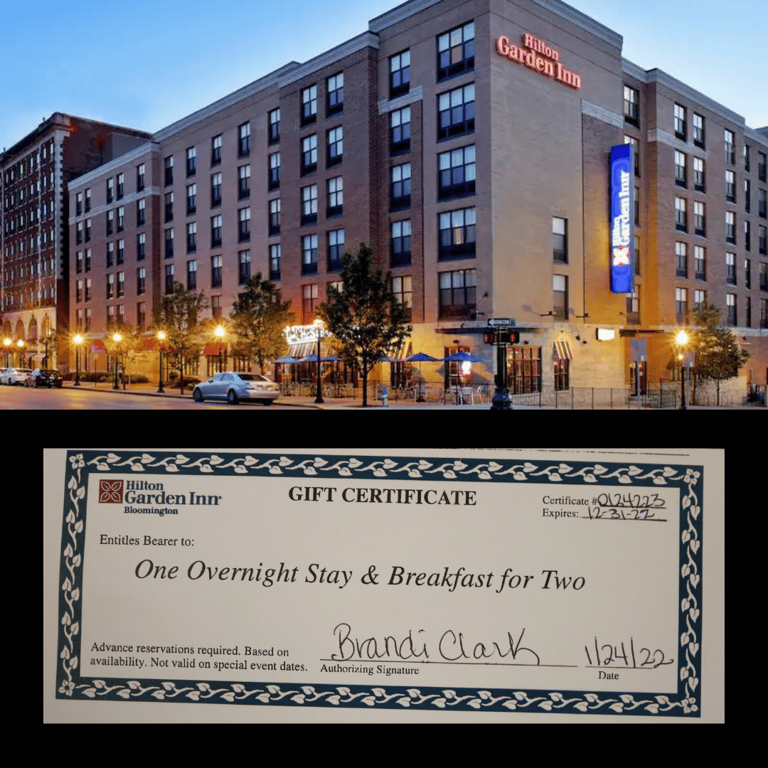 Bloomington Bluebird Night OutConcert Tickets at the Bloomington Bluebird Night Club; One Overnight stay and Breakfast for Two at the Bloomington Hilton Garden Inn Donated By: Bloomington Hilton Garden Inn