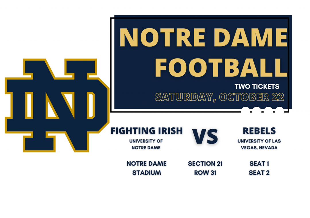 Fighting Irish!2 Tickets to Notre Dame Football Game vs. University of Las Vegas, Nevada Rebels (Section 21, Row 31, Seats 1-2)