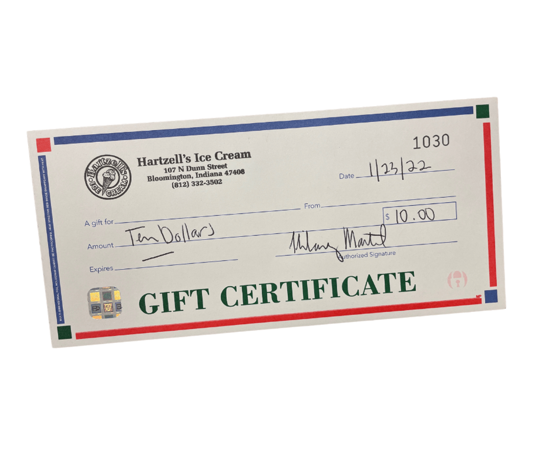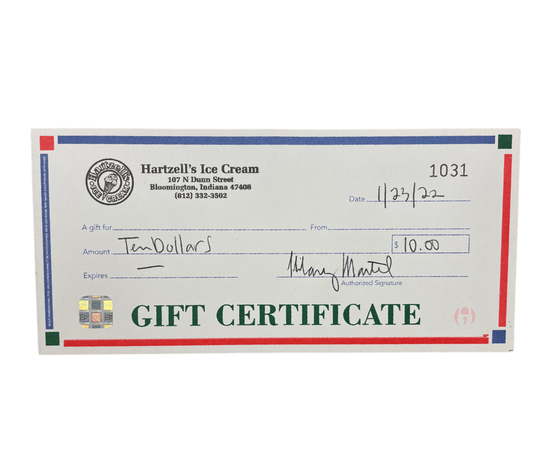 A Taste of Bloomington #11 $10 gift card to Hartzell's Ice Cream