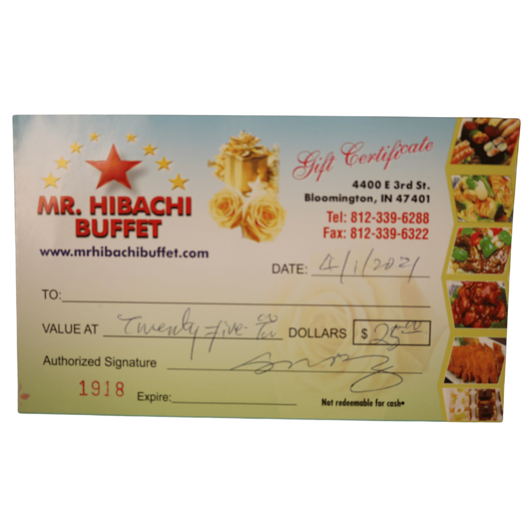 A Taste of Bloomington #11 $25 gift card to Mr. Hibachi Buffet