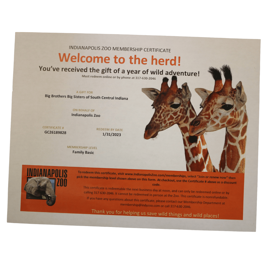Indy Zoo1 One year membership to Indianapolis Zoo